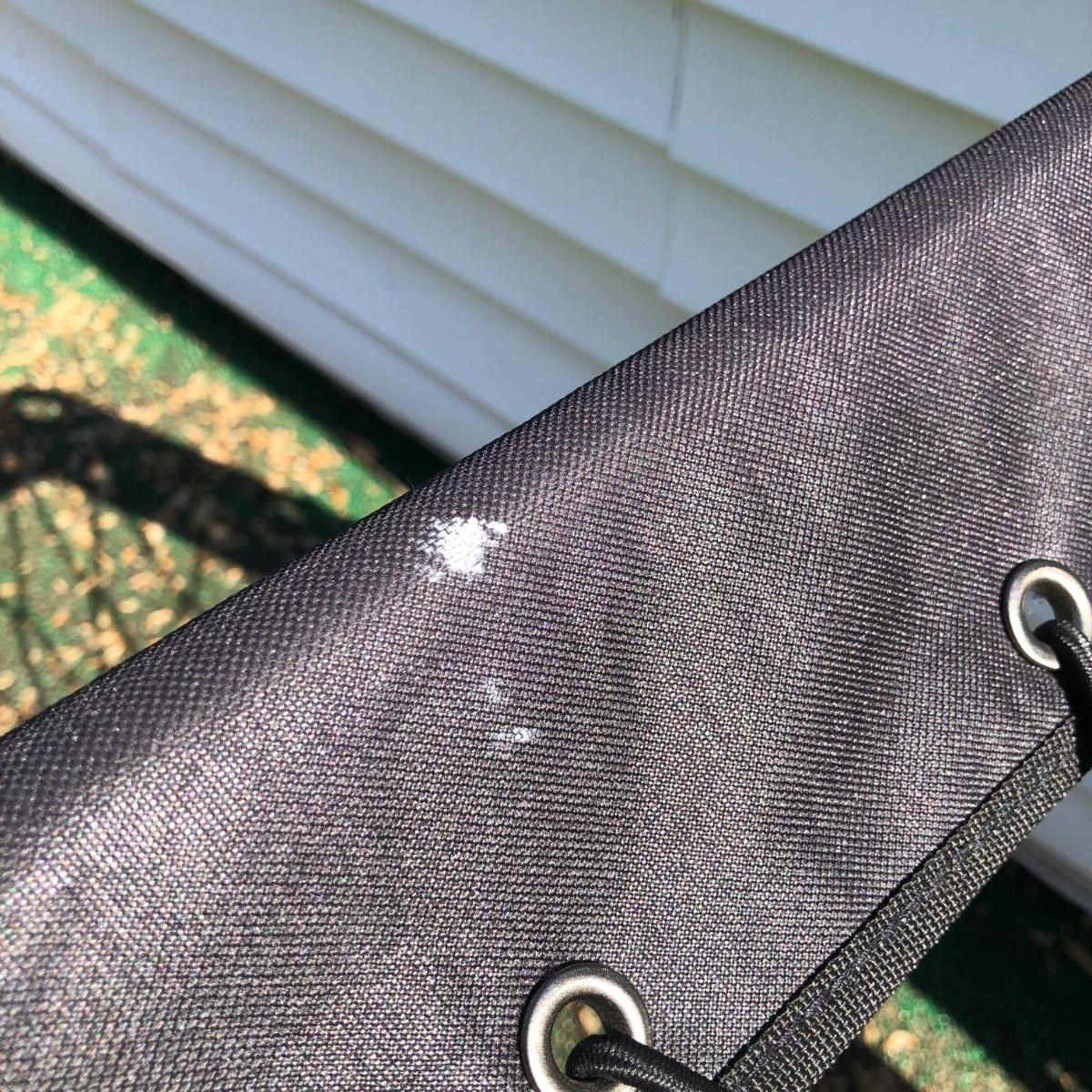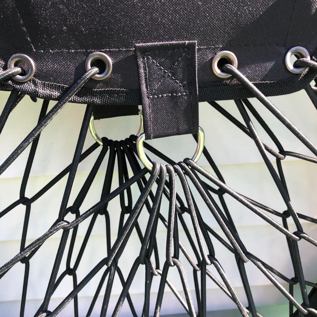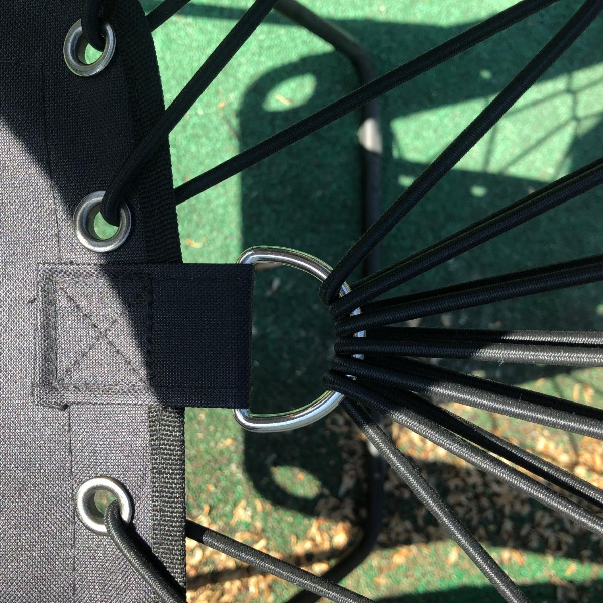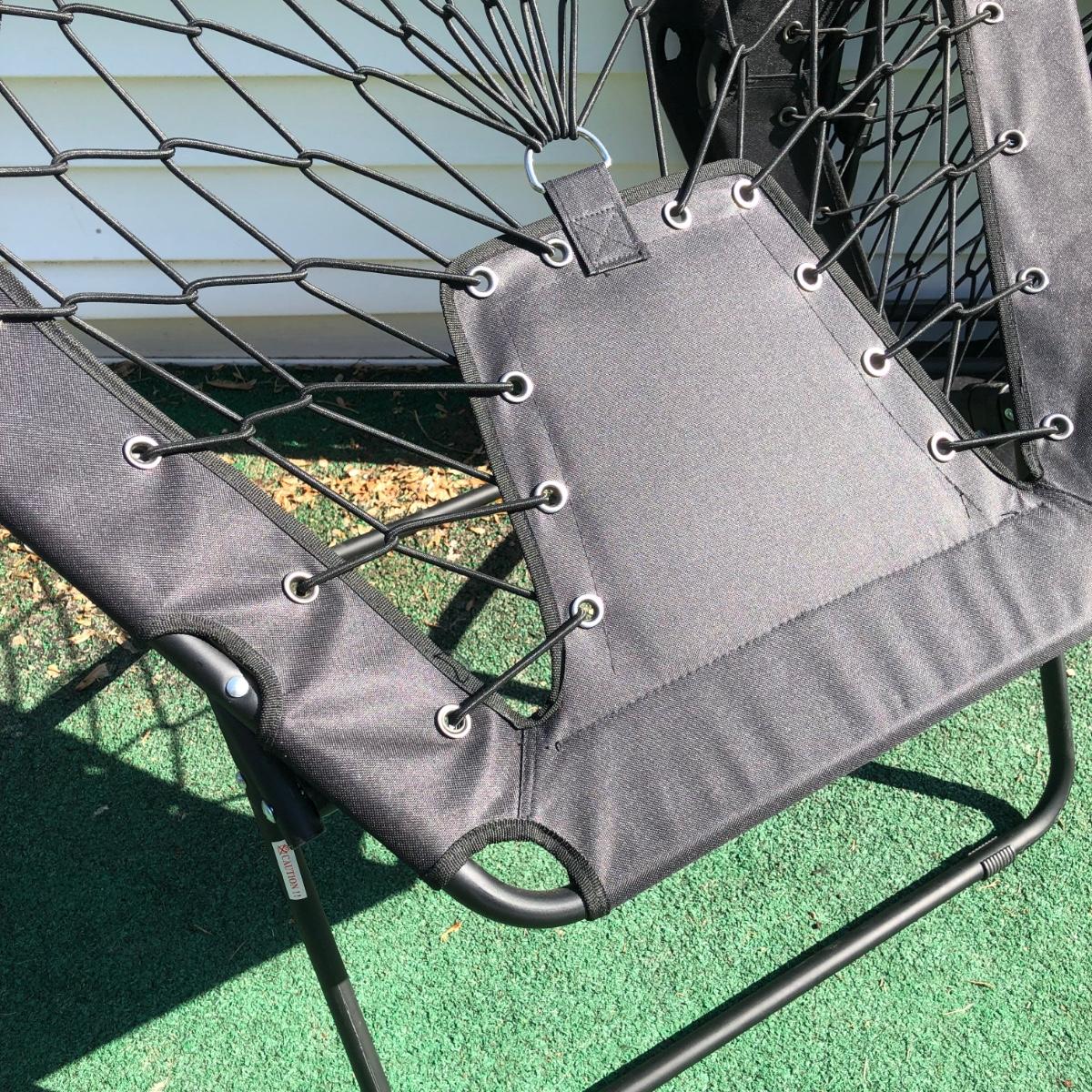 The chairs are foldable and great for a patio or rec room. They are made of a bungee like material and have padding on the seat of the chair. Three included in the set.
