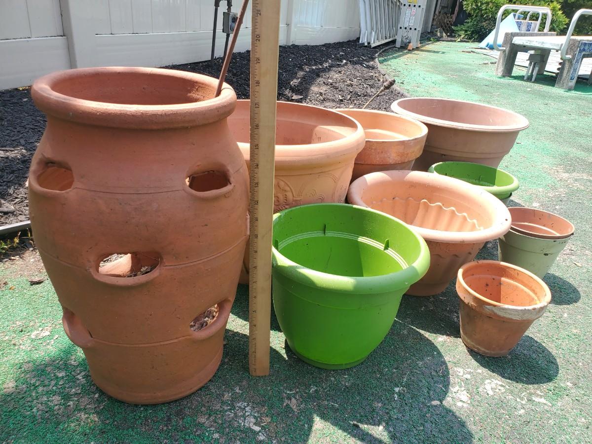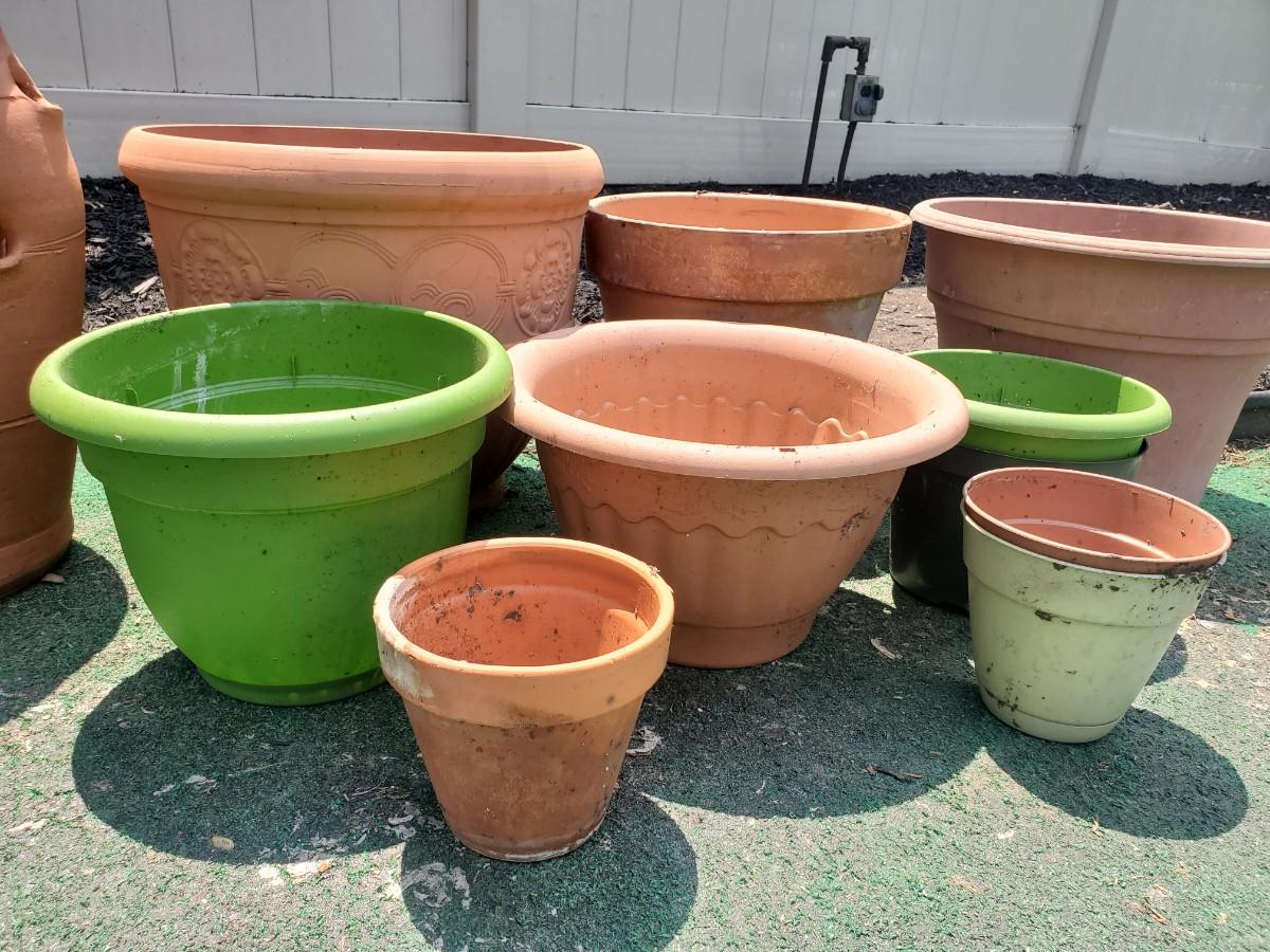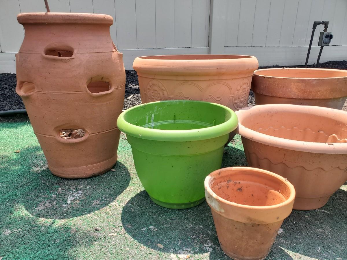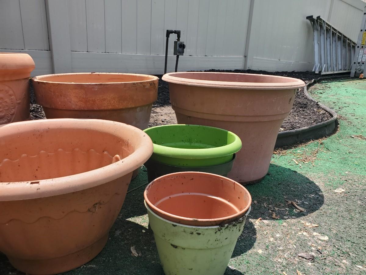 LOT 232G: Large Terracota Pot & Variety of Plastic Flower Pots