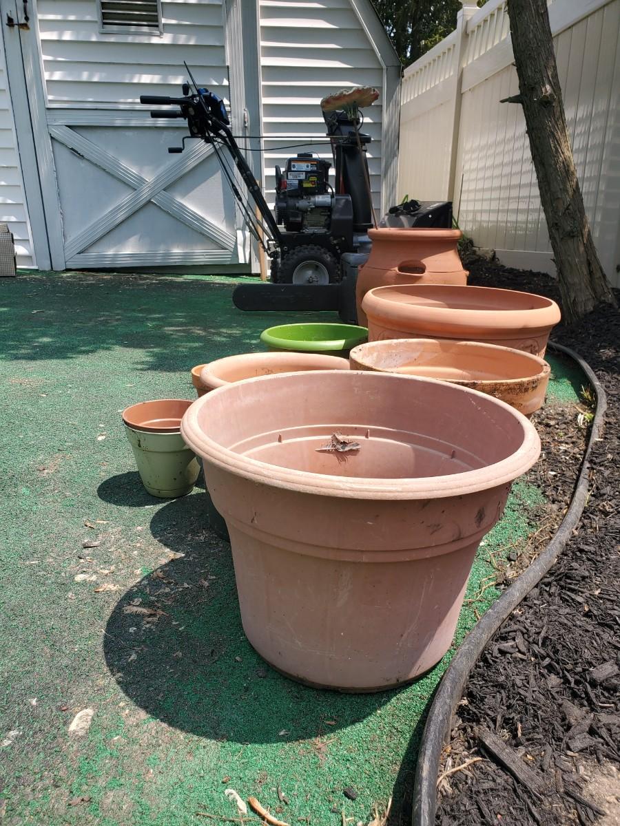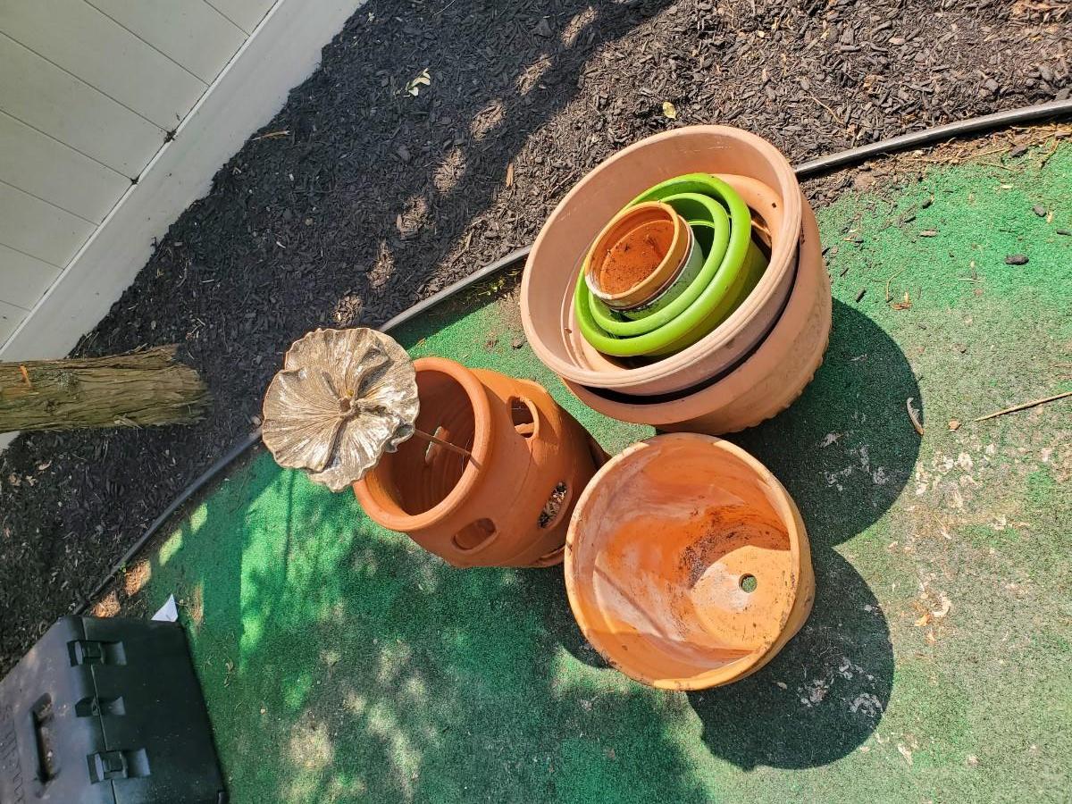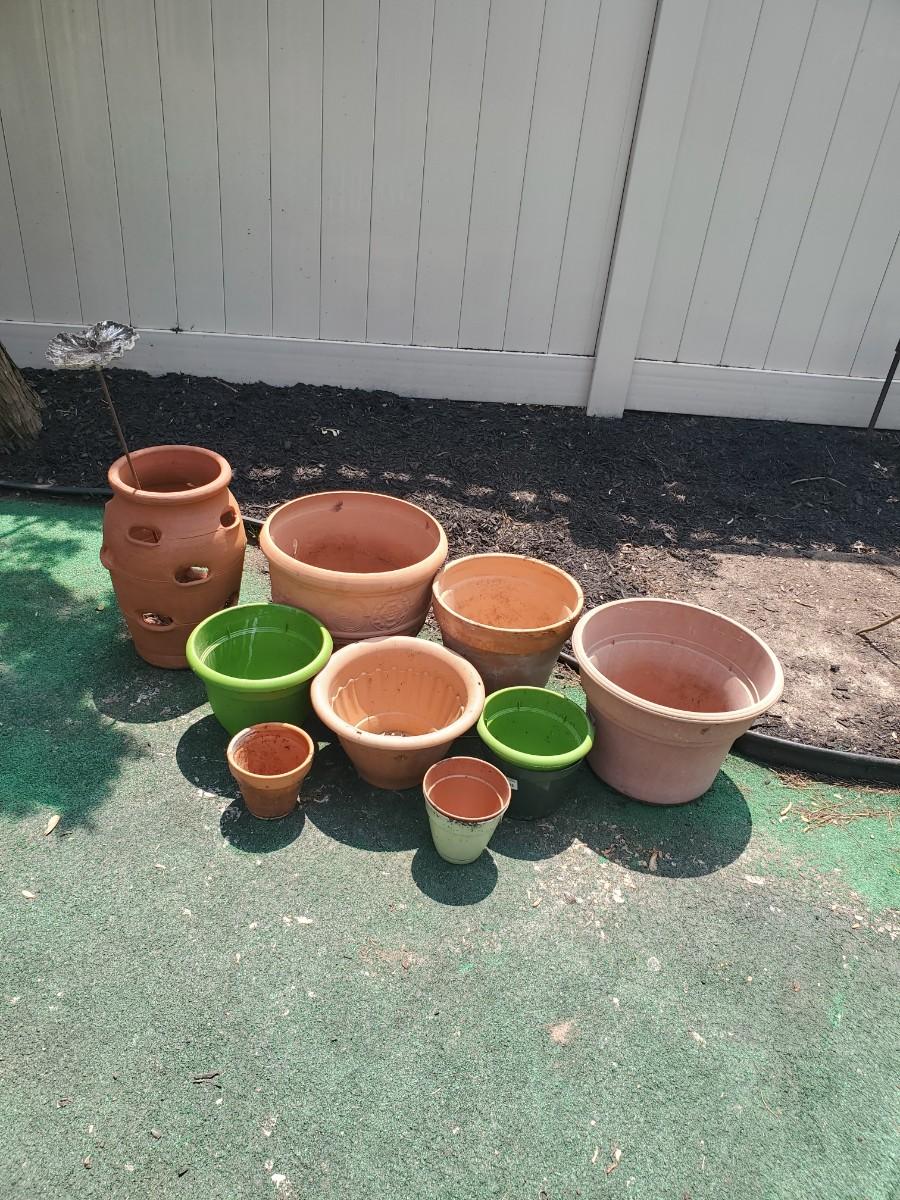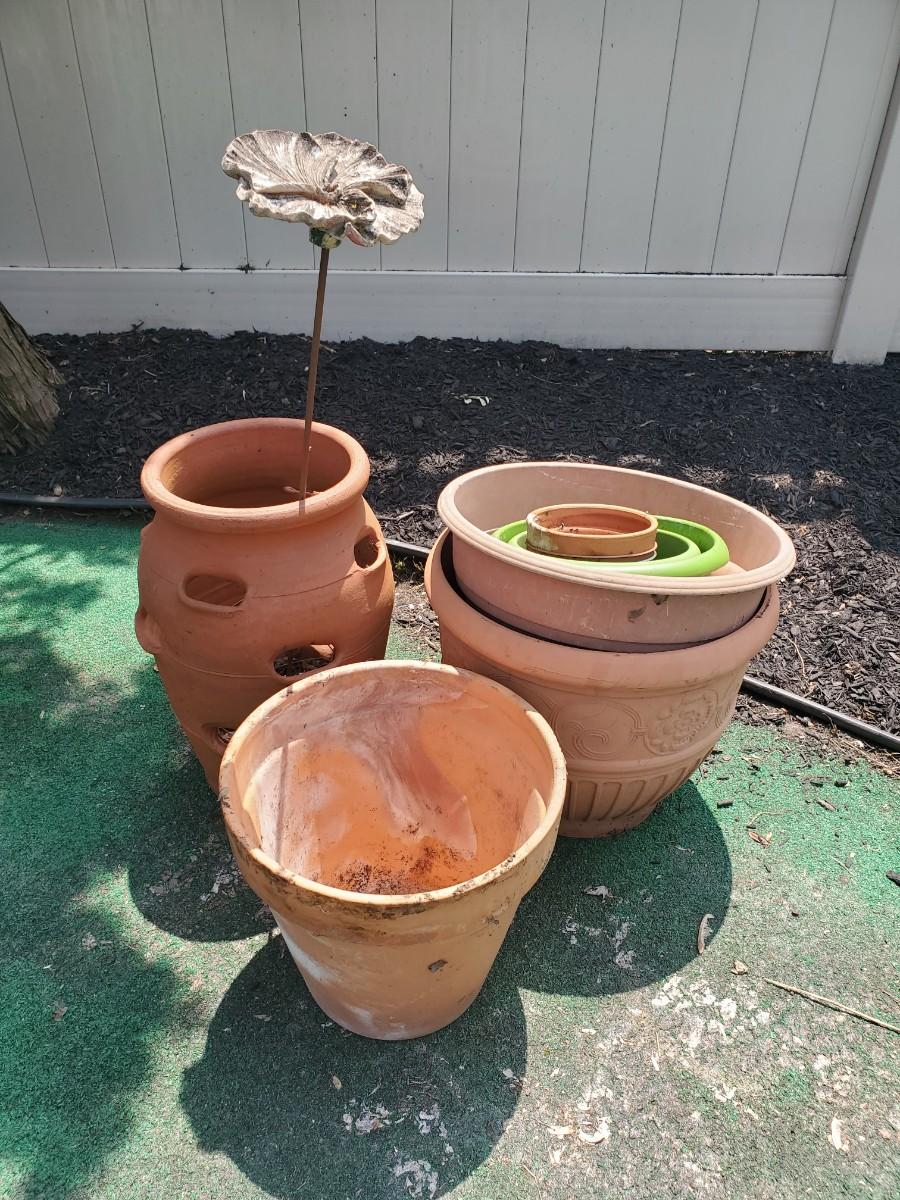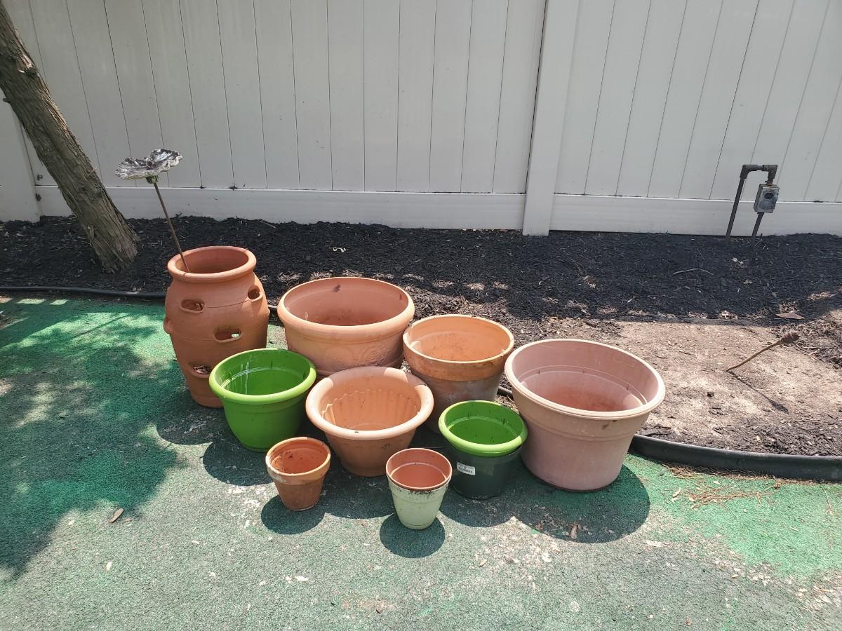 LOT 232G: Large Terracota Pot & Variety of Plastic Flower Pots