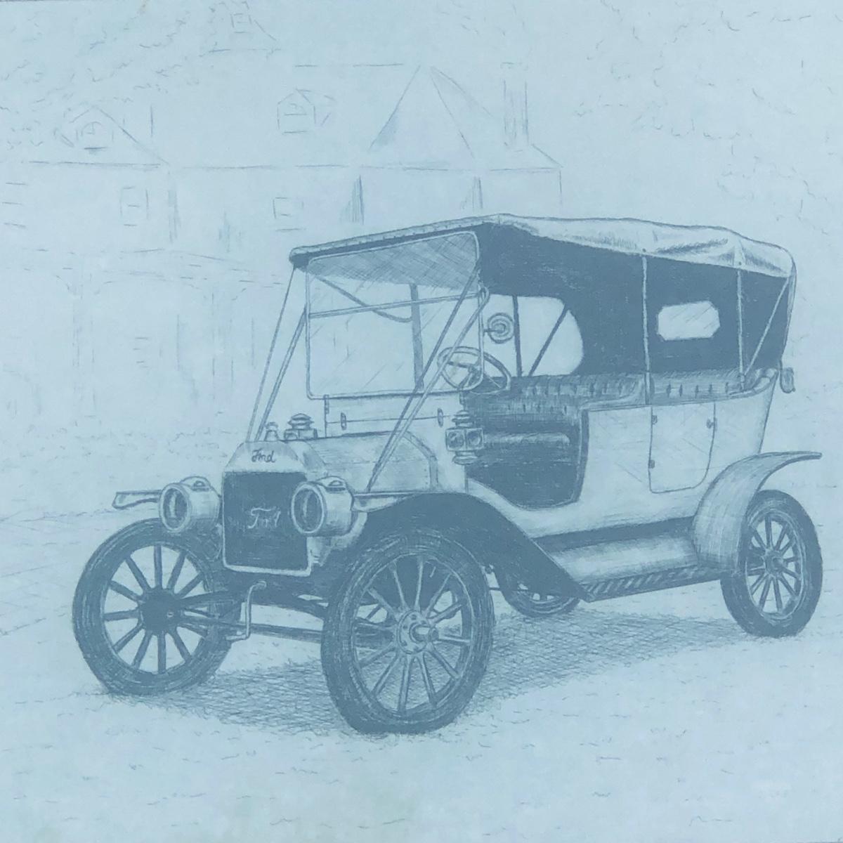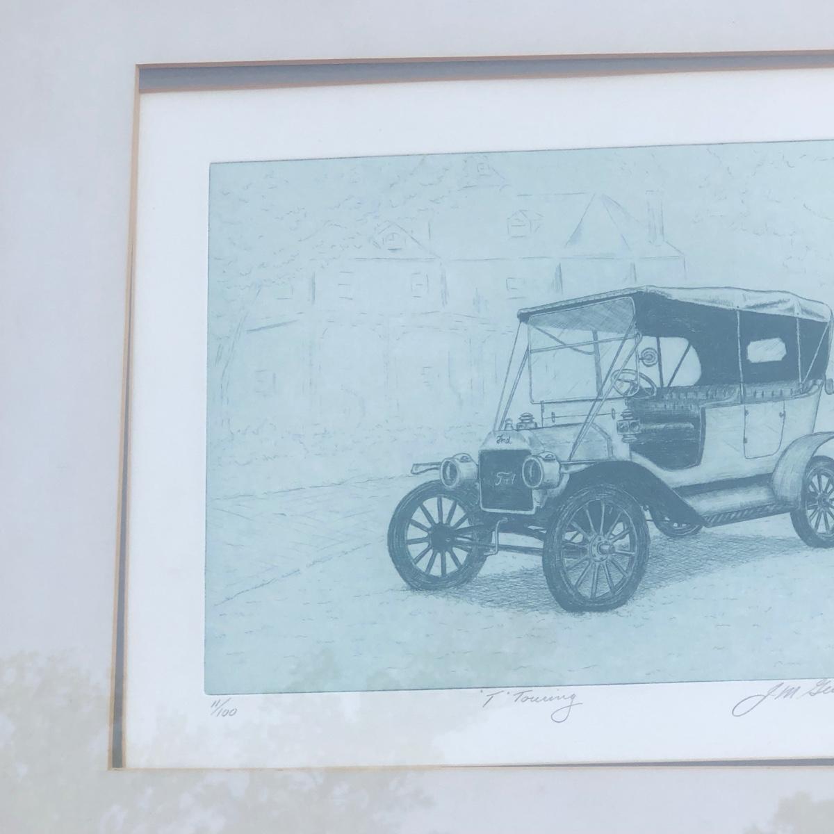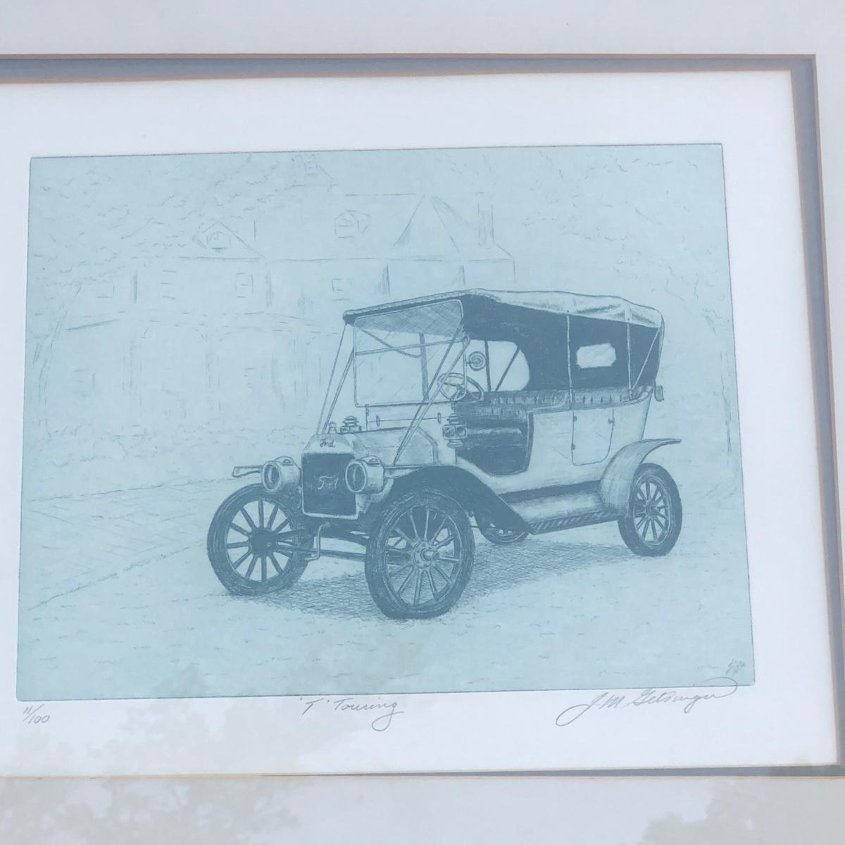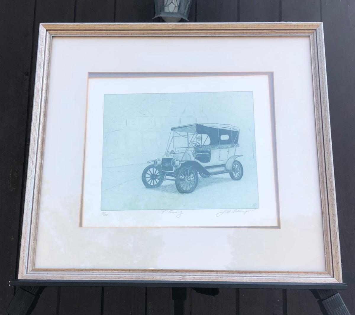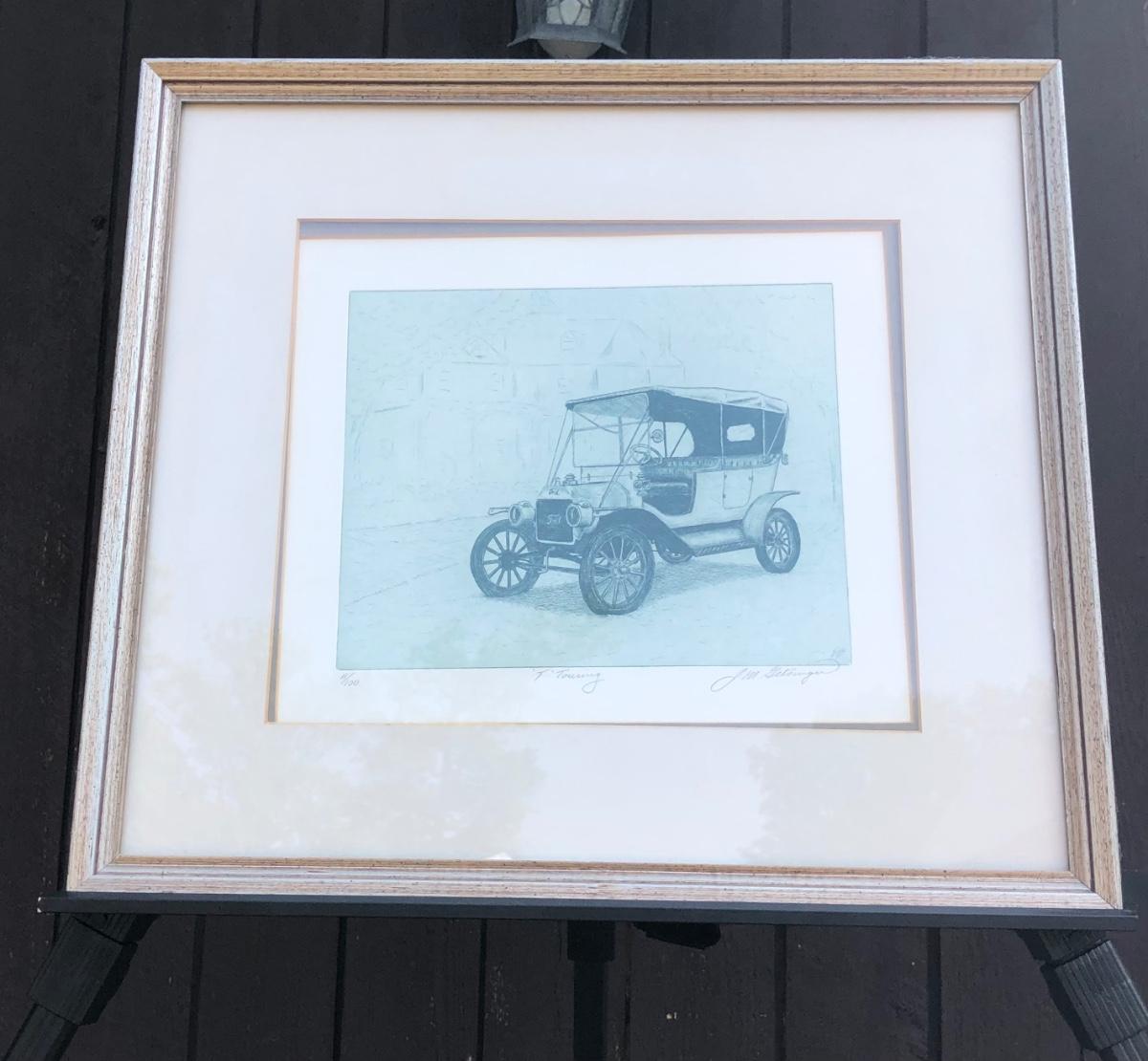 Artwork is numbered 11 of 100. Features a Ford Model T and the artist's signature. Measures 19 x 17 inches.