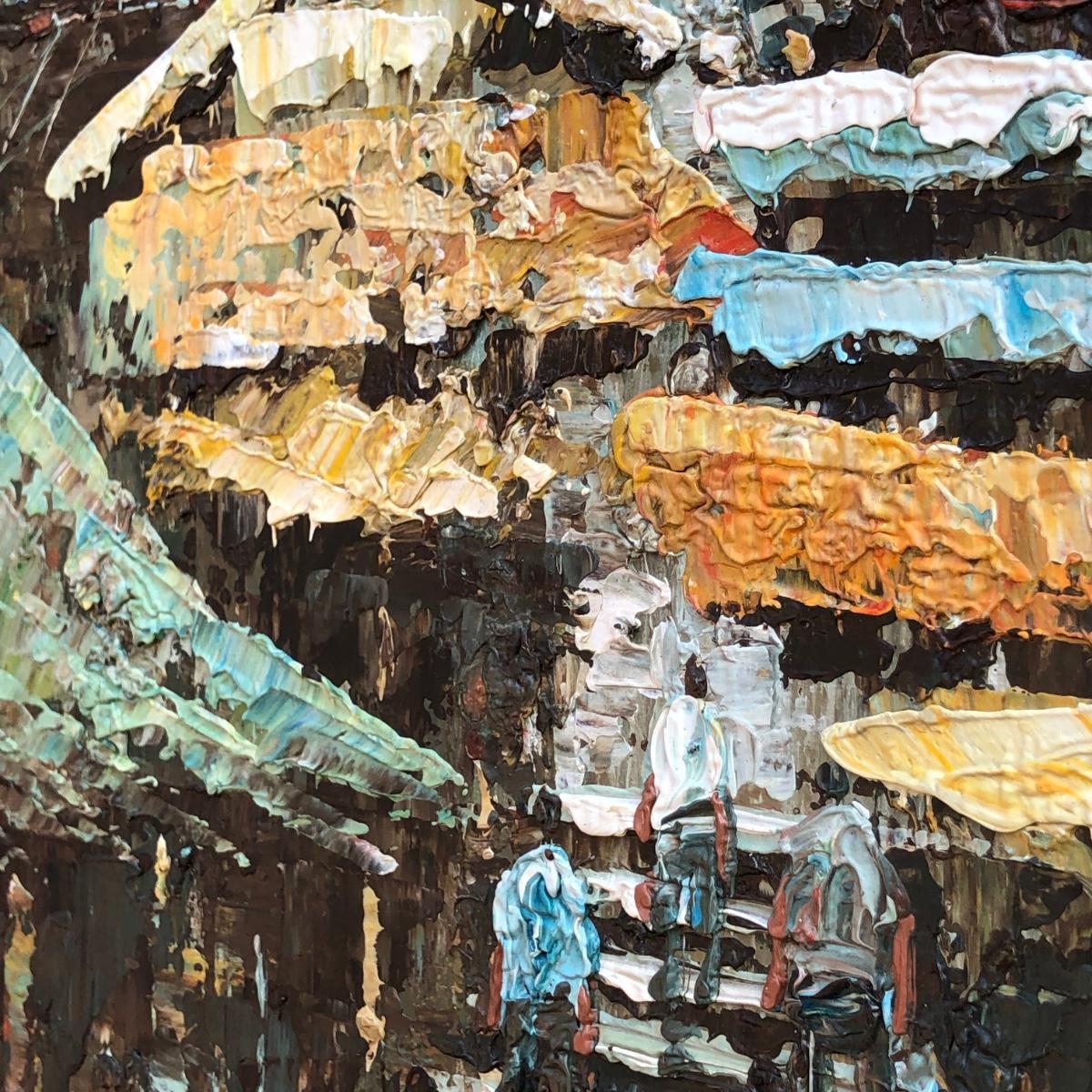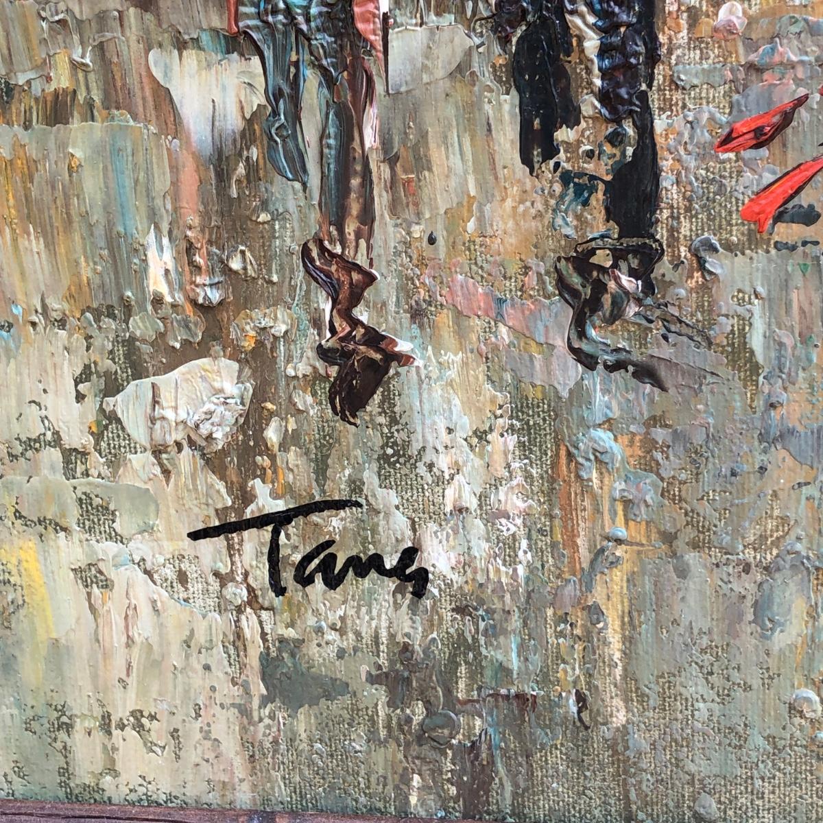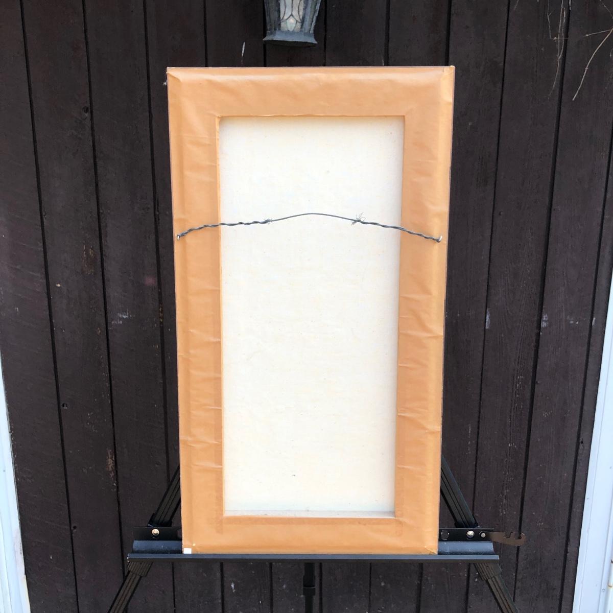 Painting is hand done with beautiful texture and stylized technique. Features the artists name signed at the bottom. Framed artwork measures 14 x 25 inches.