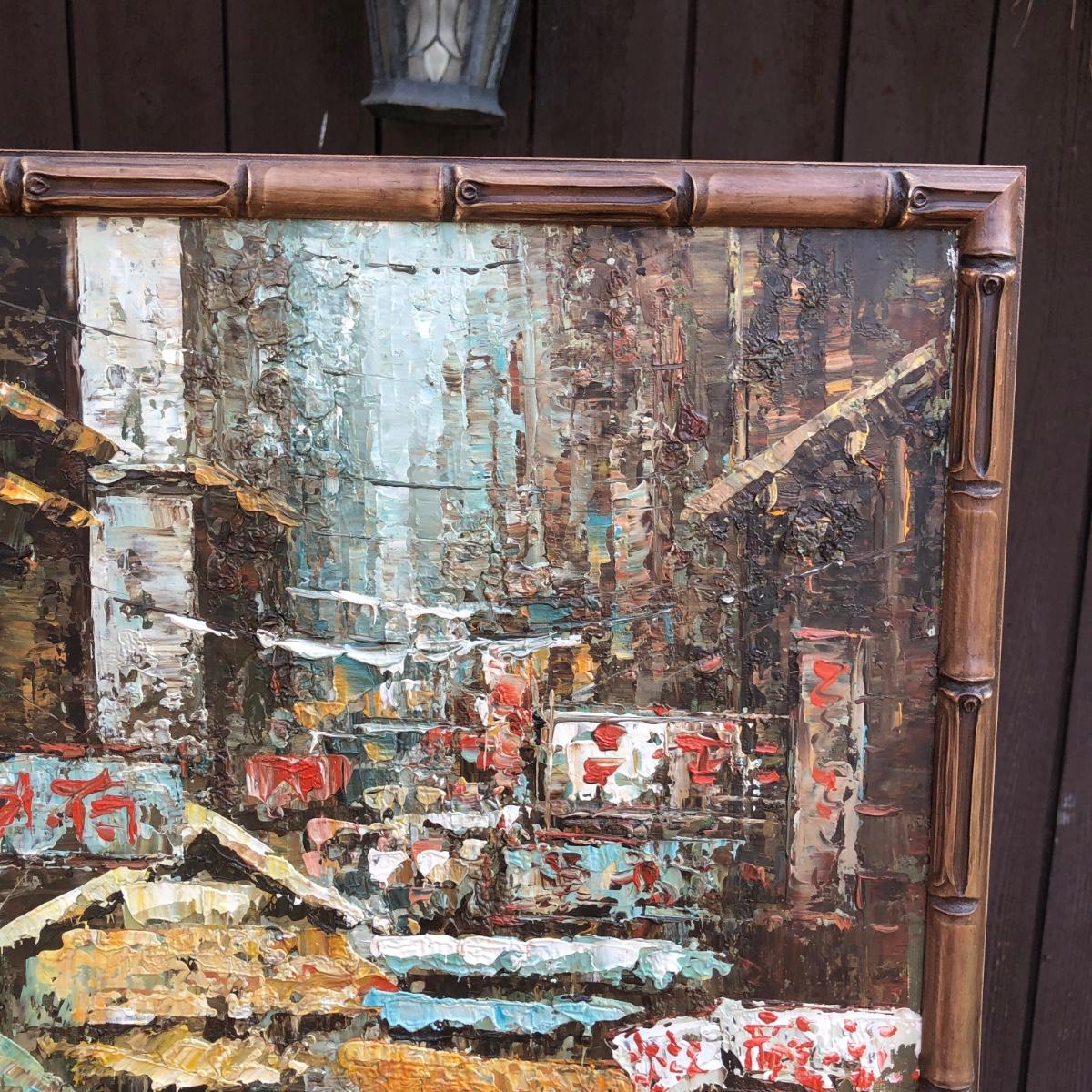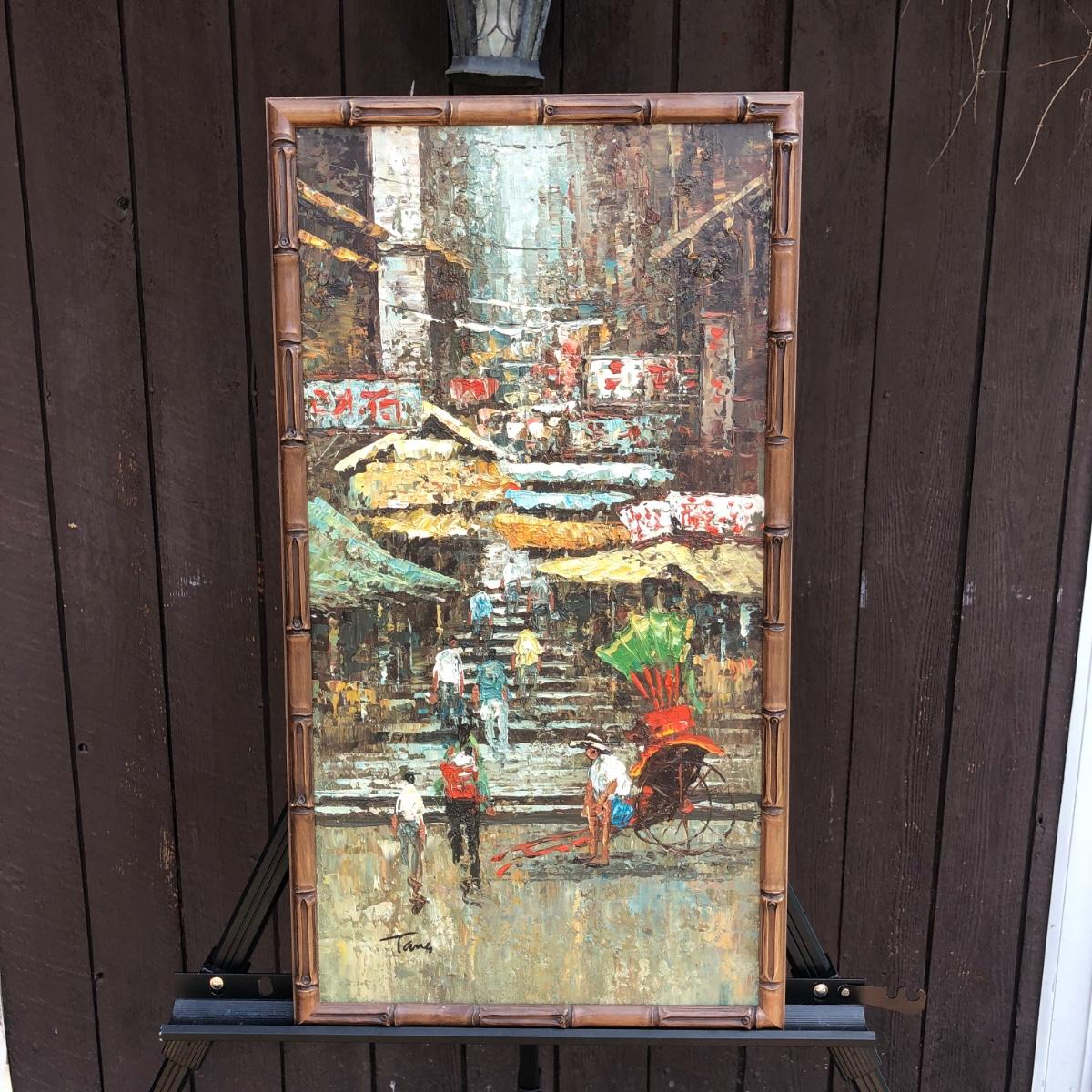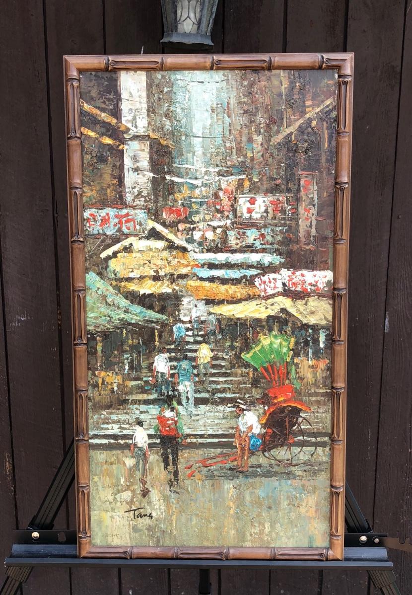 LOT 256M: Signed City Street Painting w/ Bamboo Frame