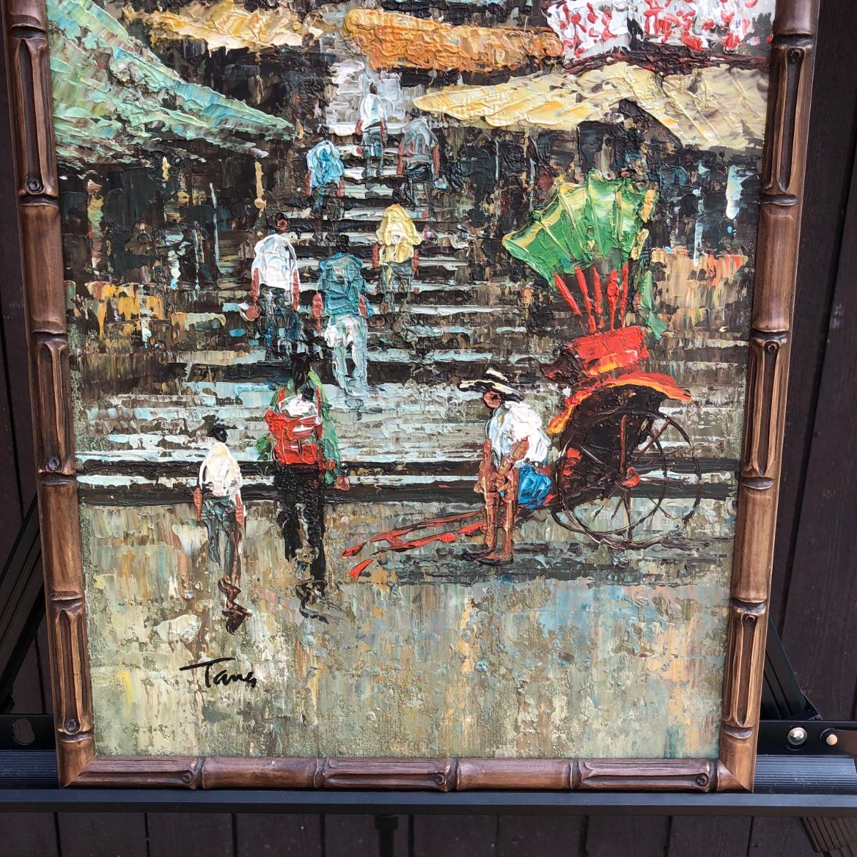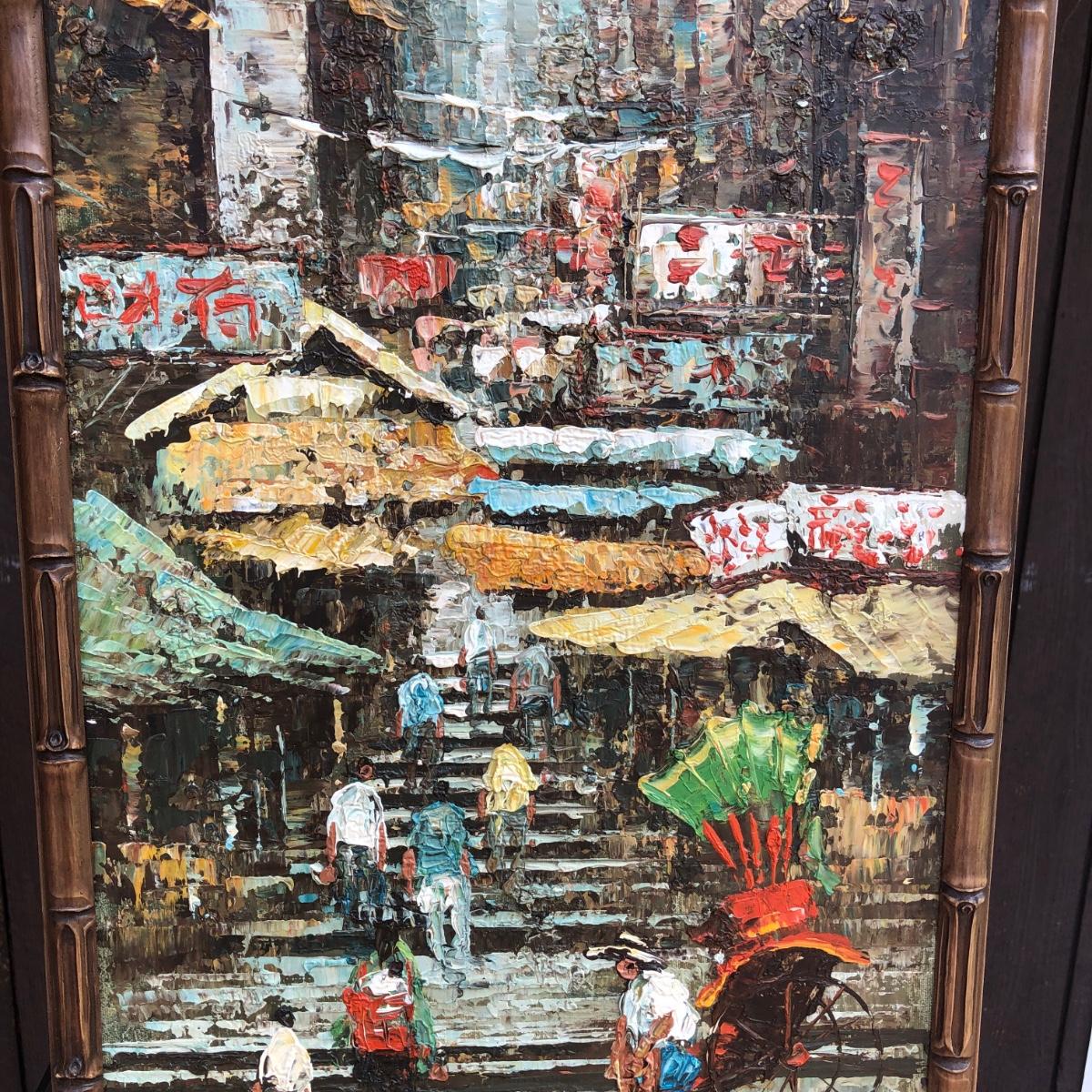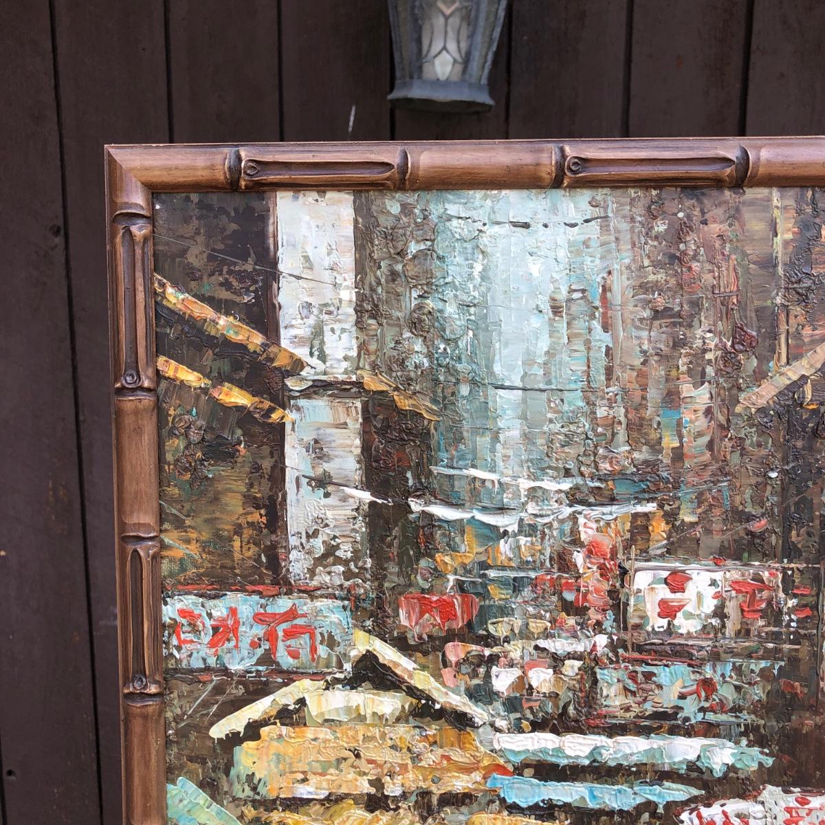 LOT 256M: Signed City Street Painting w/ Bamboo Frame