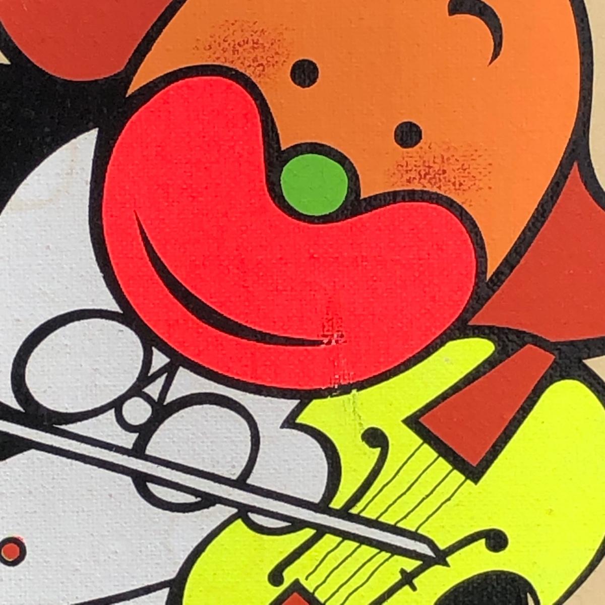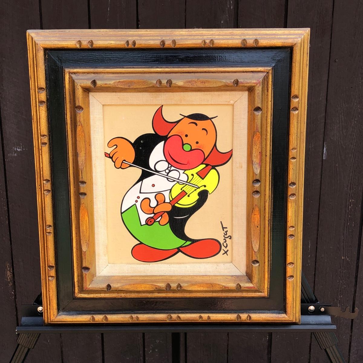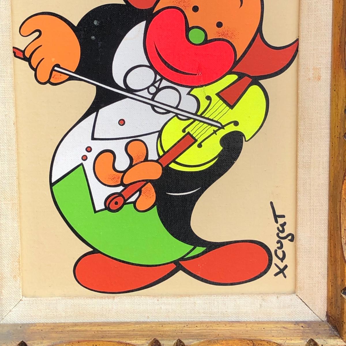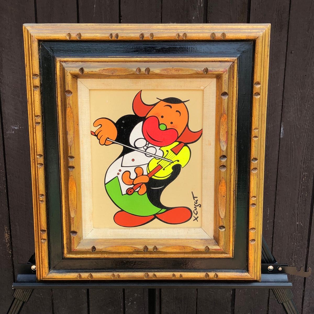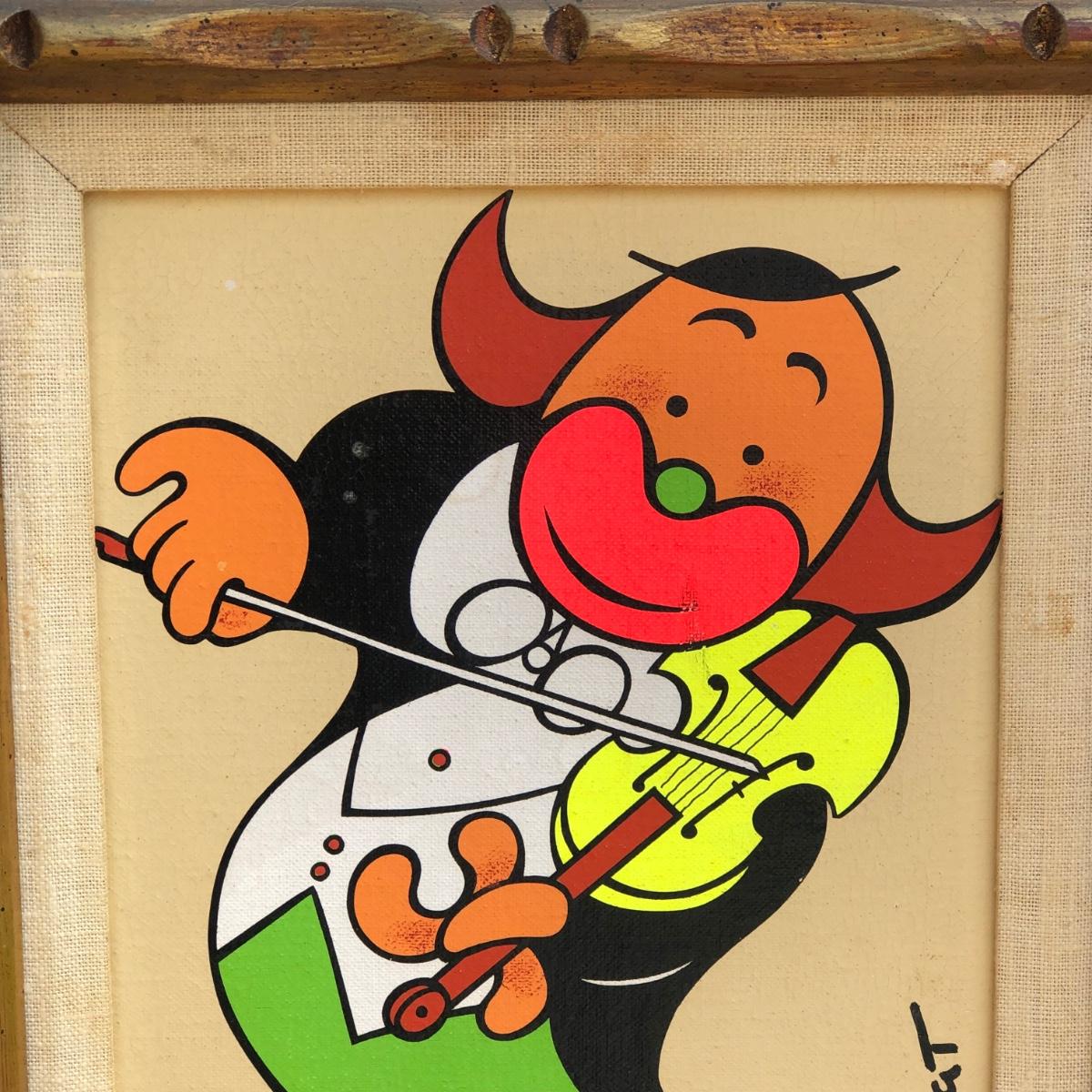 Artwork depicting a clown playing the violin. Signed by the artist. Framed artwork measures 16 x 18 inches.