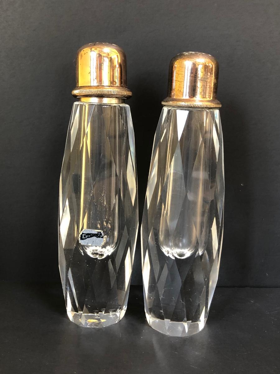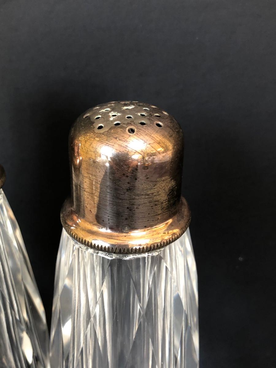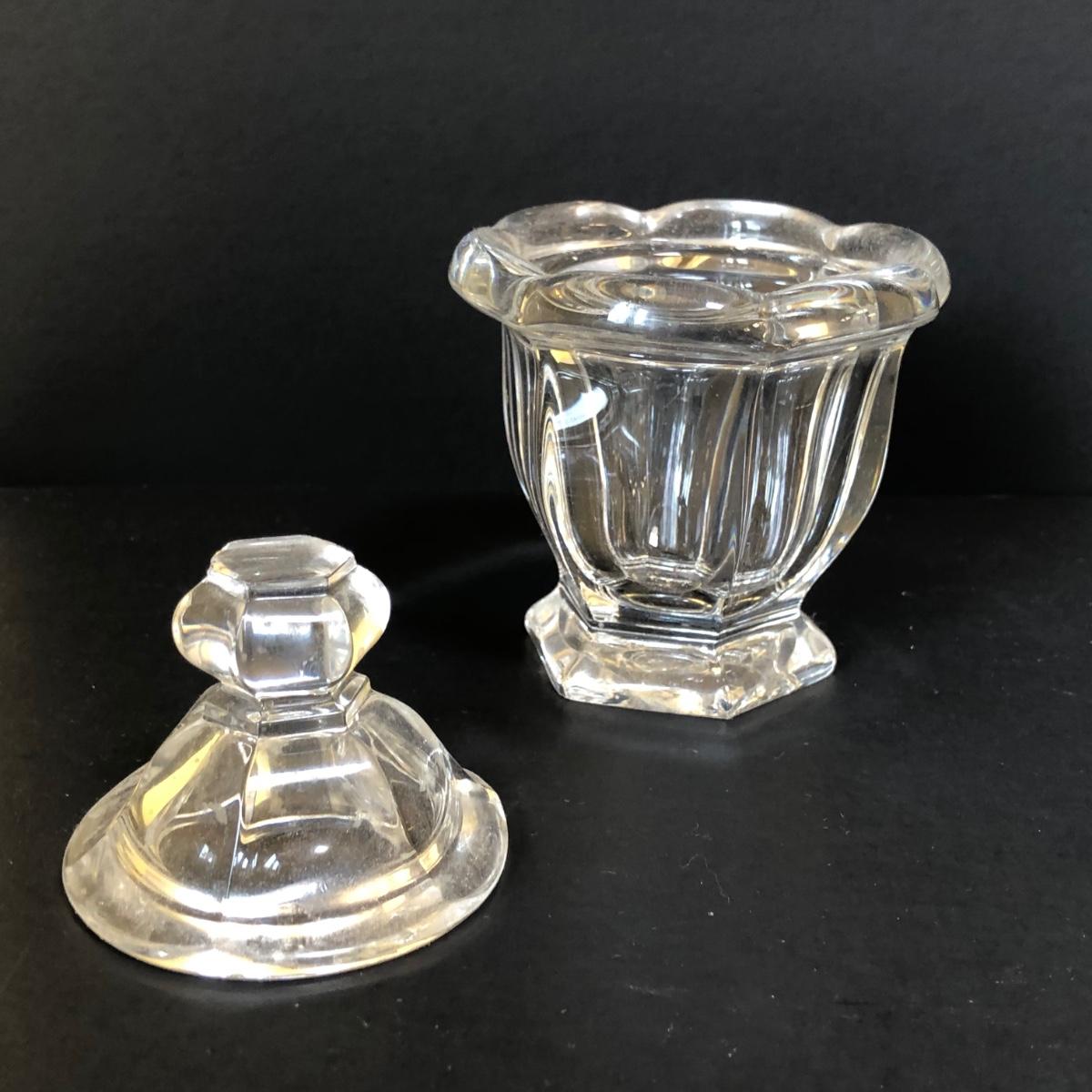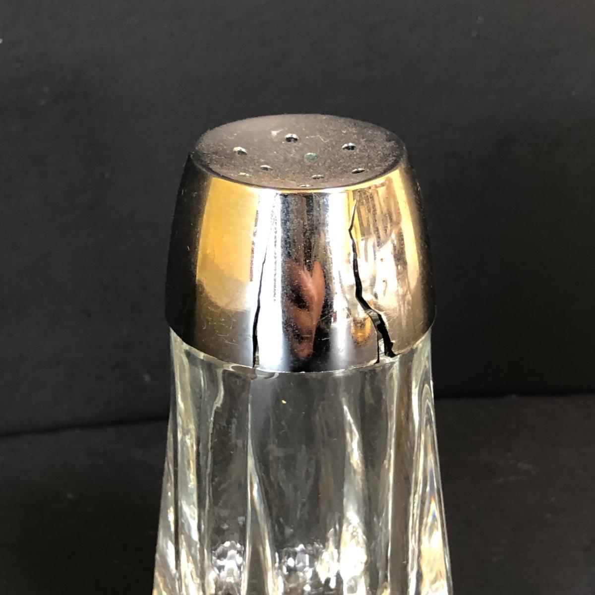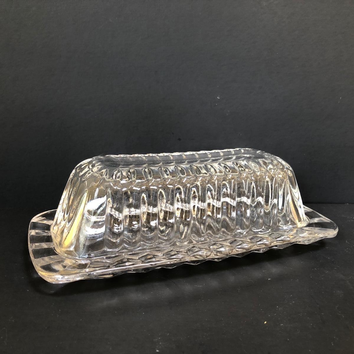 Also includes a glass bowl with gold tone accents, crystal salt and pepper shakers, a blue tone crystal bowl, a small candy dish with a lid, a butter dish.