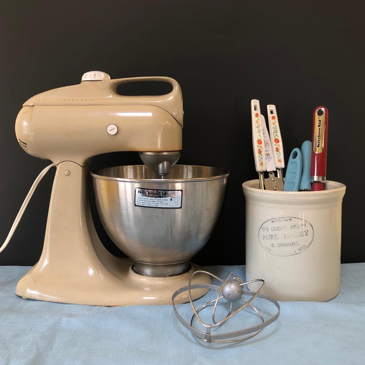 LOT 270M: Vintage KitchenAid Stand Mixer Model 4-C w/ Stainless Steel Bowl & More
