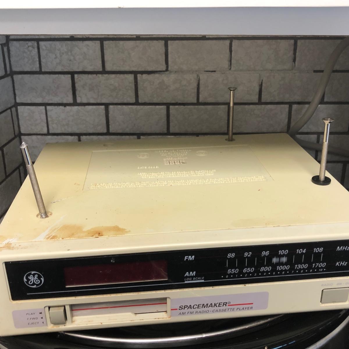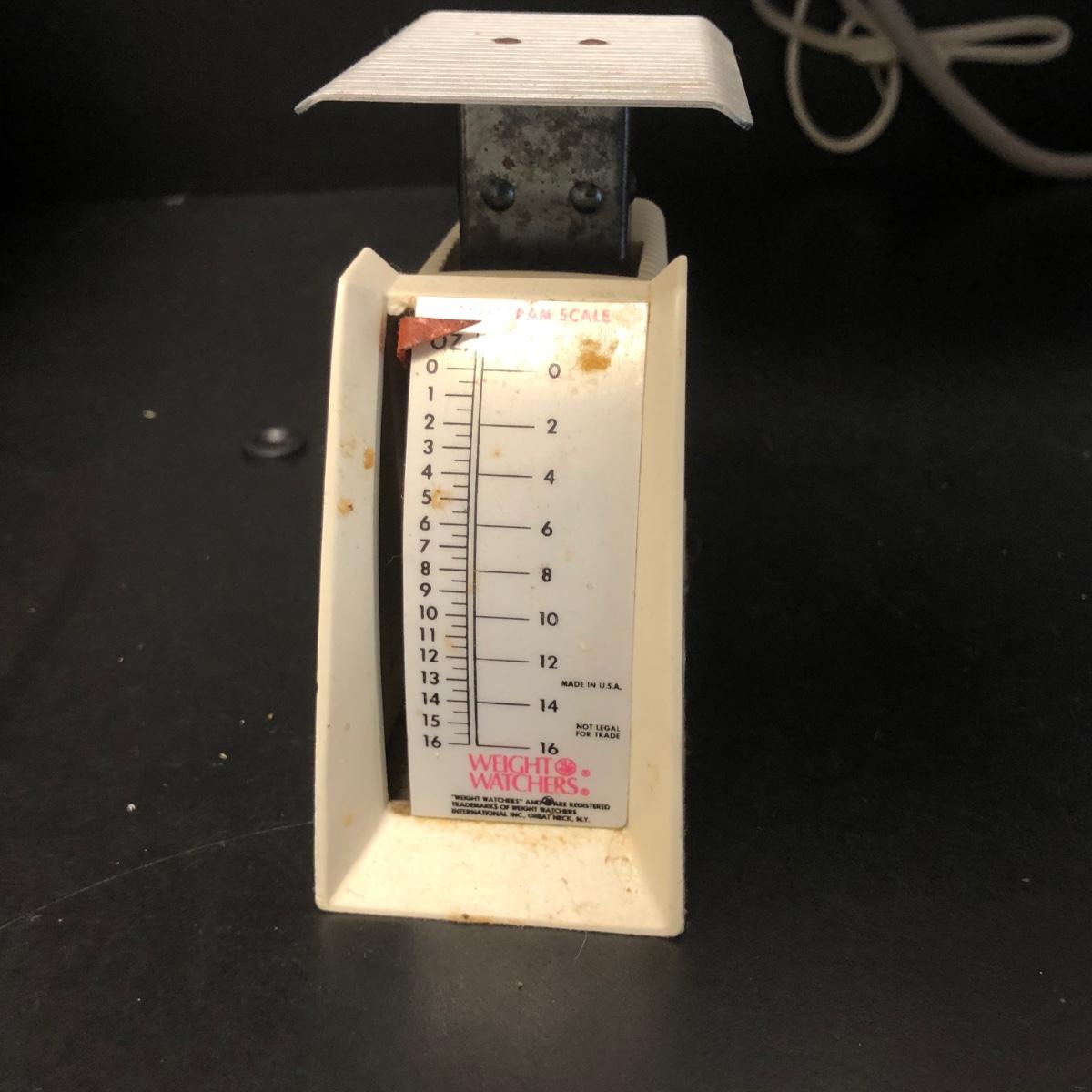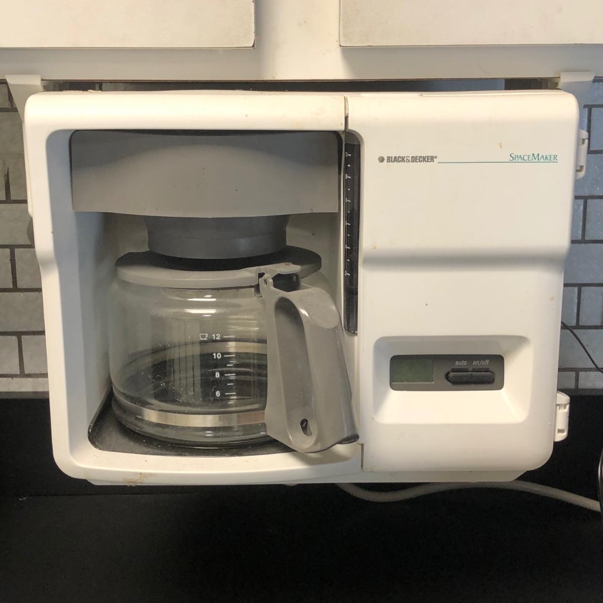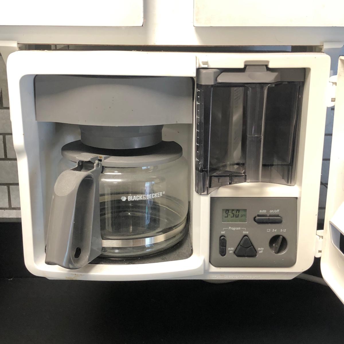 Also includes small Weight Watchers Scale, Krups Type 208 Household Coffee Mill, and Cuisinart Can opener. Coffee maker is still attached to the cabinet. Radio works.