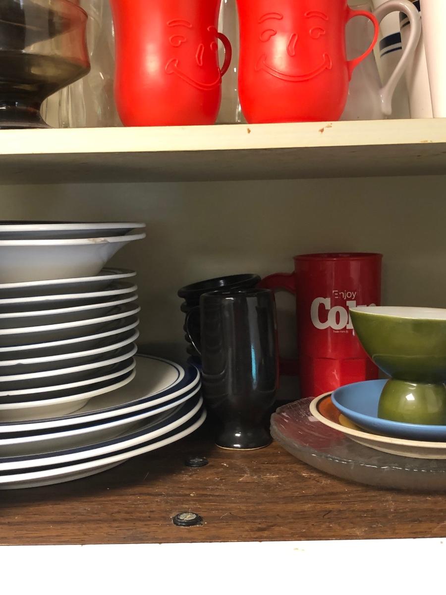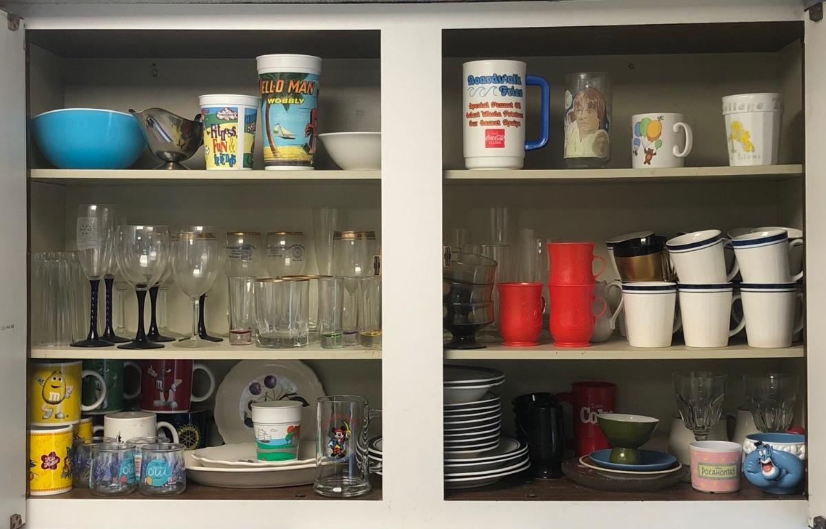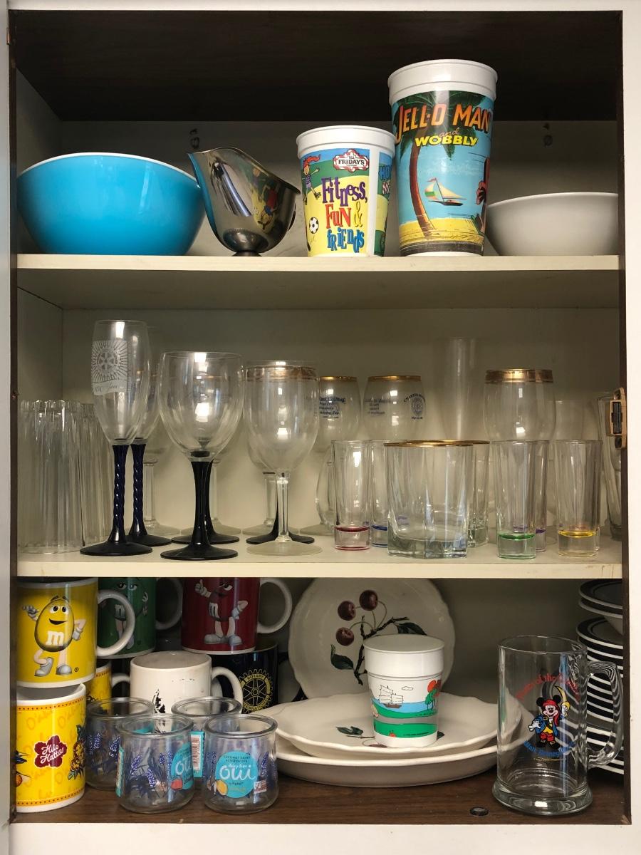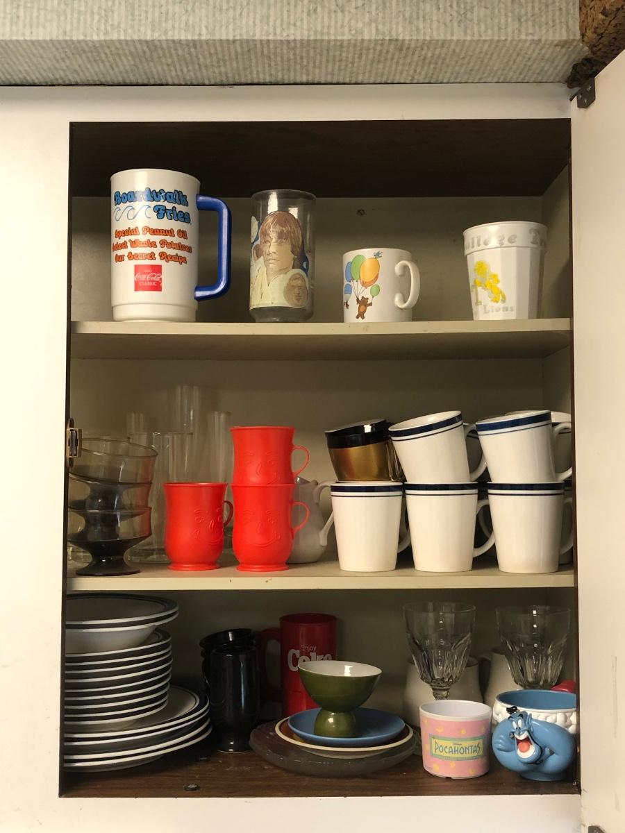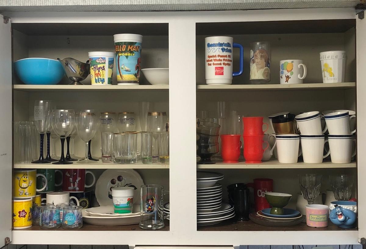 LOT 277M: Entire Kitchen Cabinet of Glassware, Dishes, Mugs & Collectibles