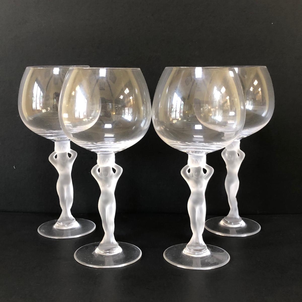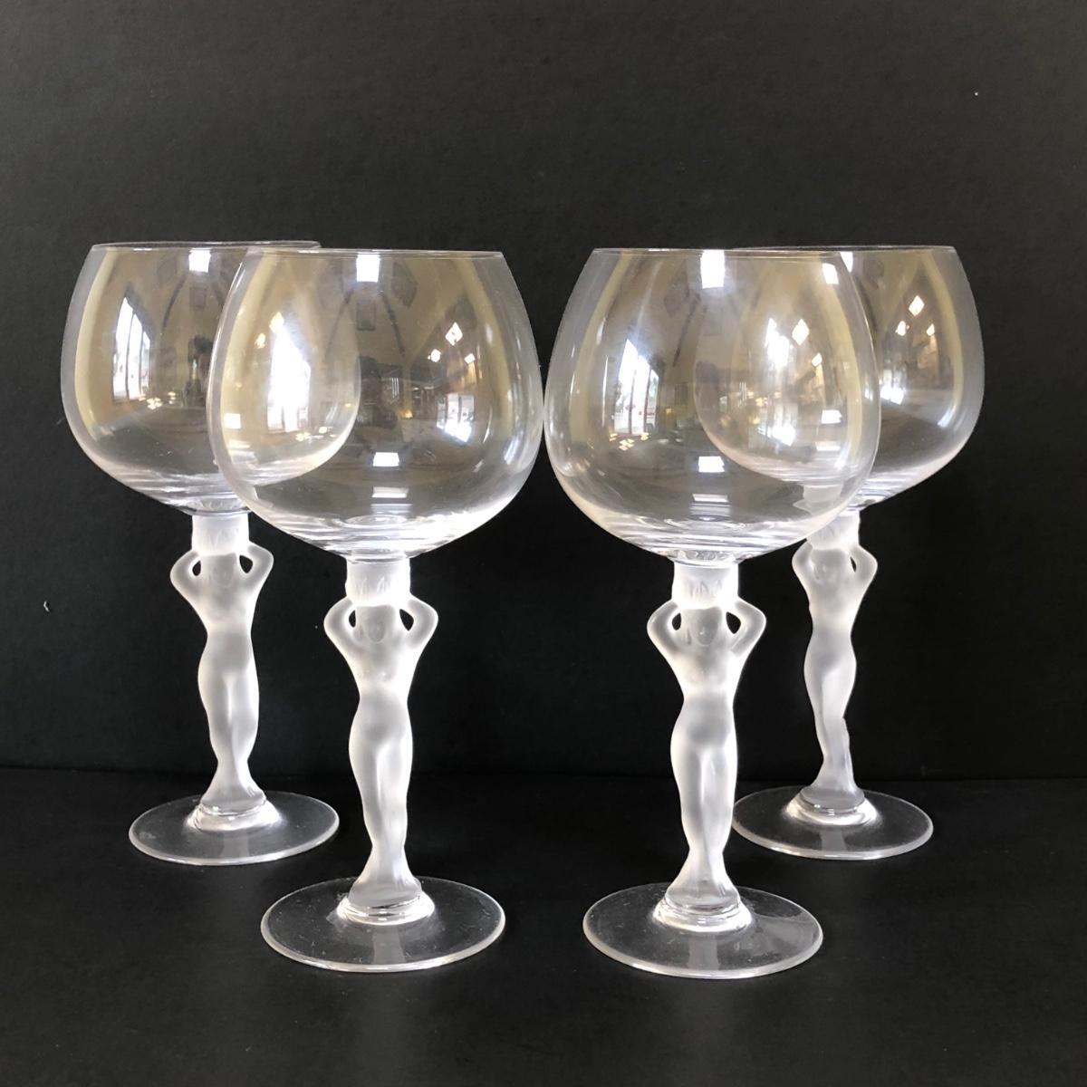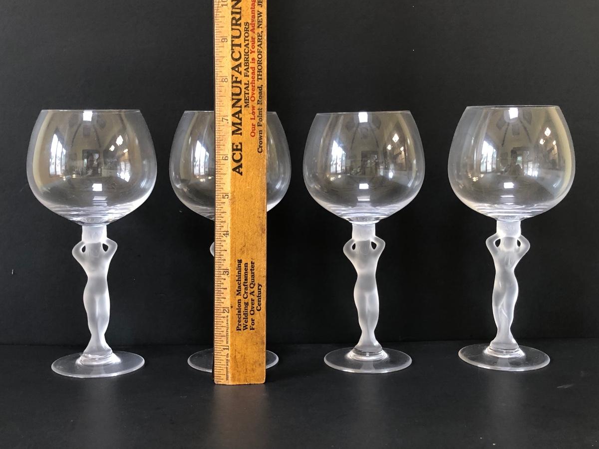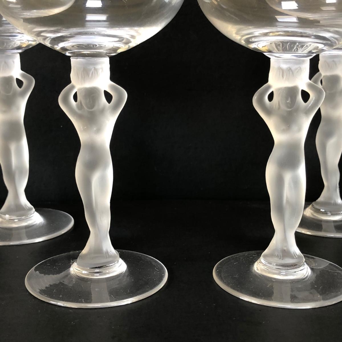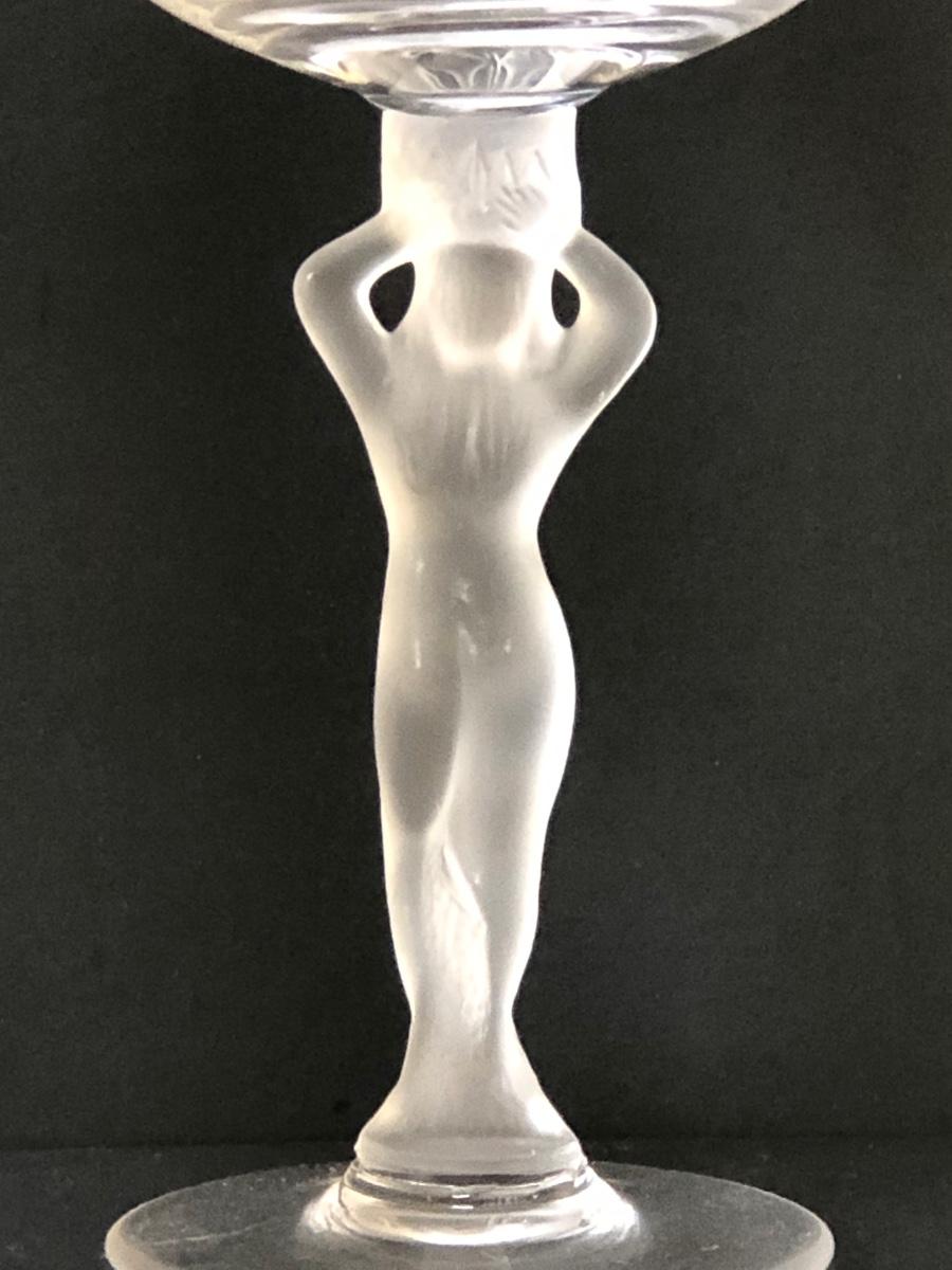 LOT 284M: Vintage Frosted Stem Nude Figure Glasses