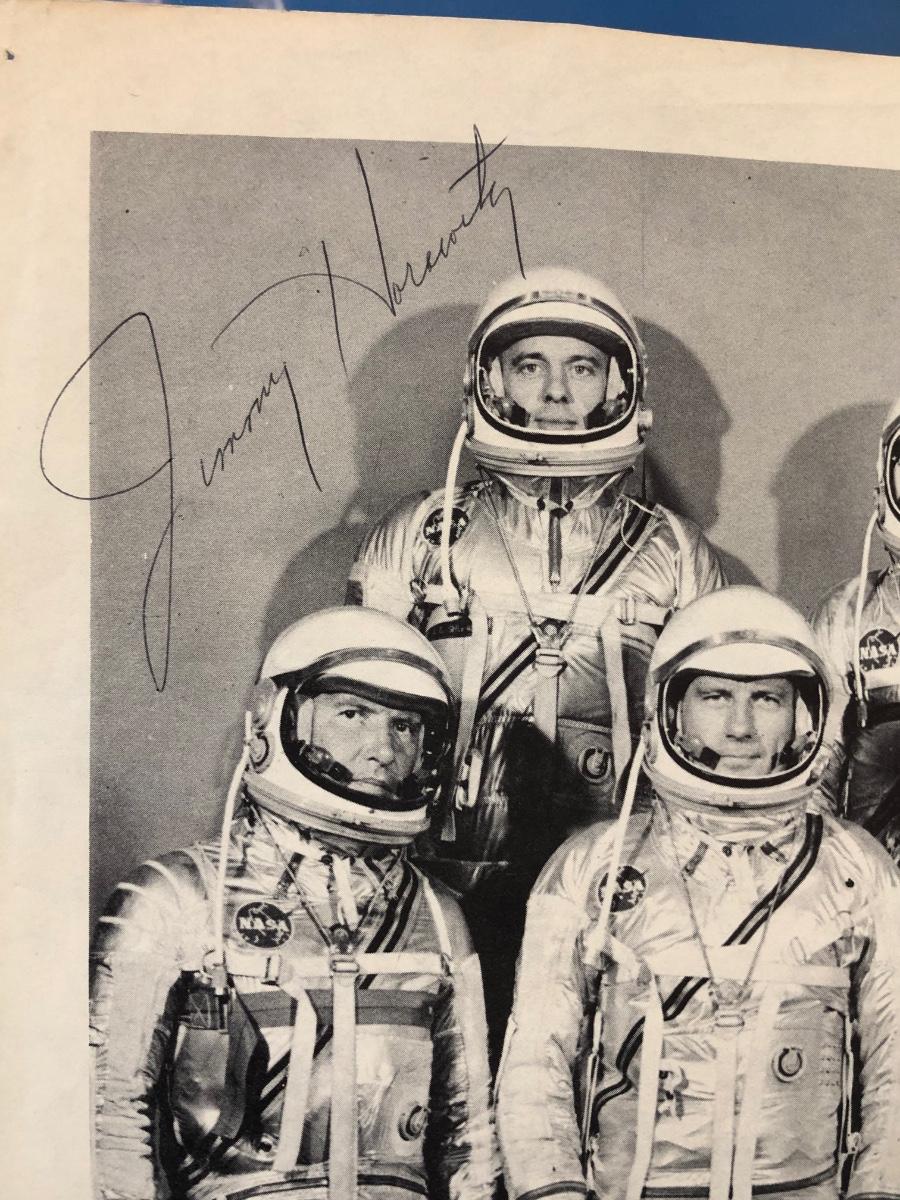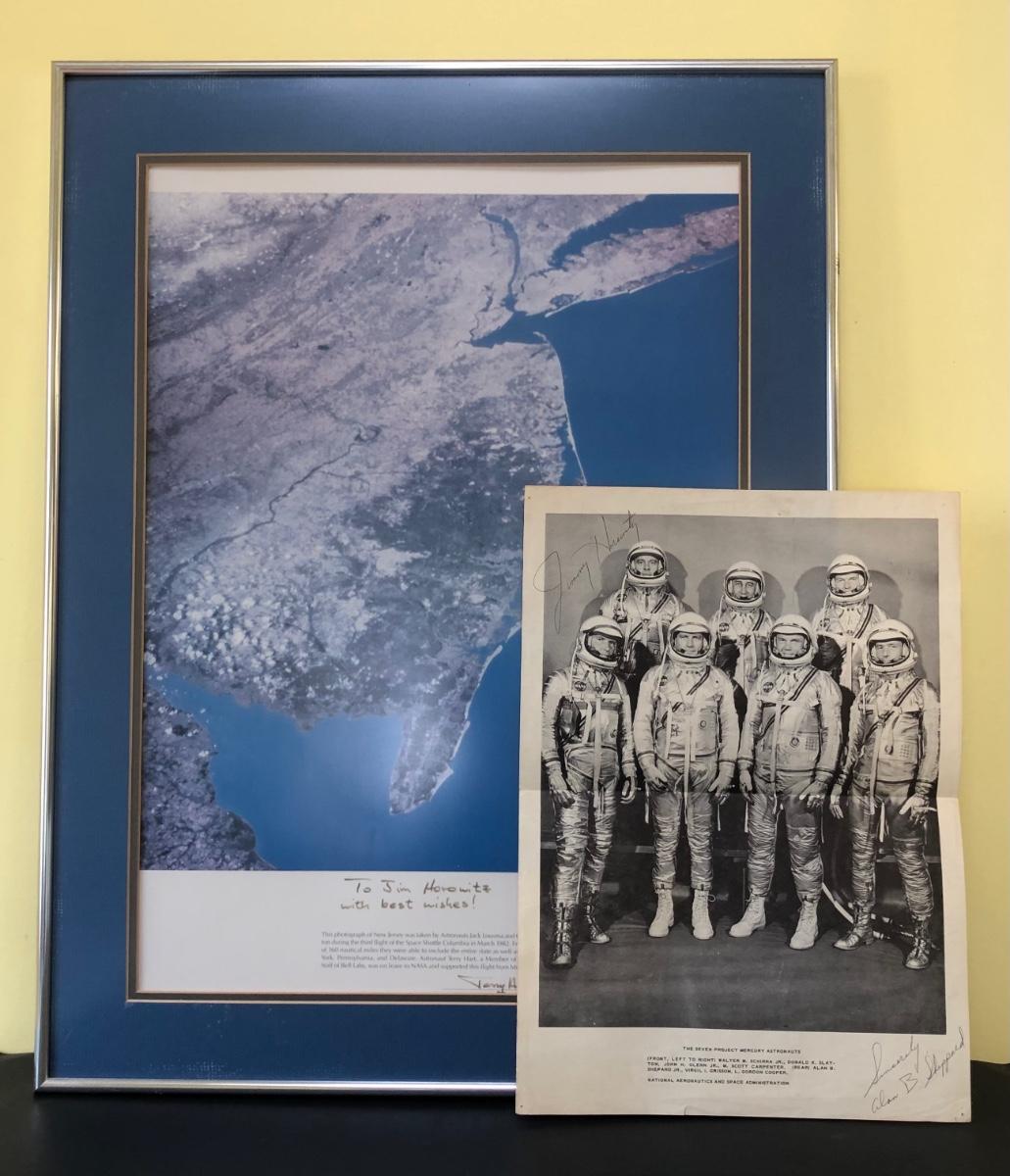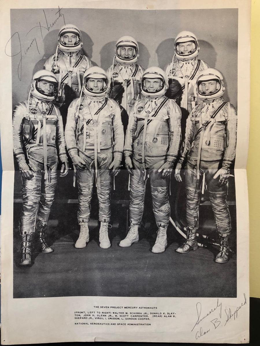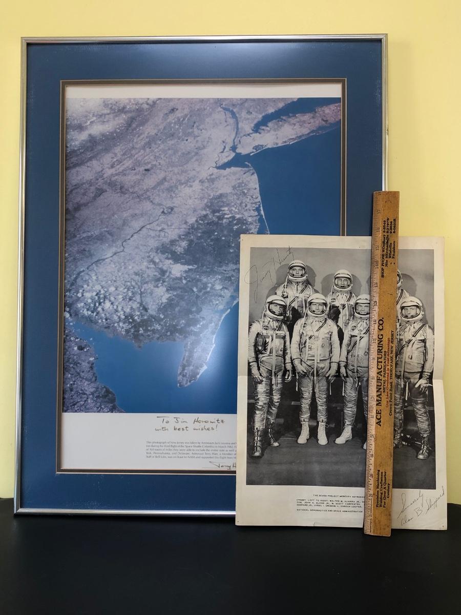 LOT 290M: The Seven Project Mercury Astronauts Photo Signed by Alan B. Sheppard & Large Sattelite Photo Signed by Tony Hart