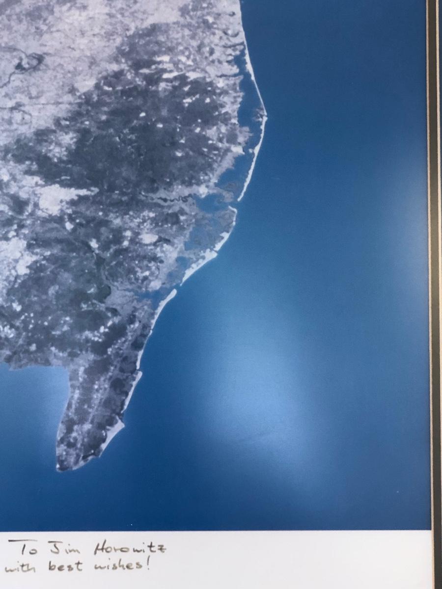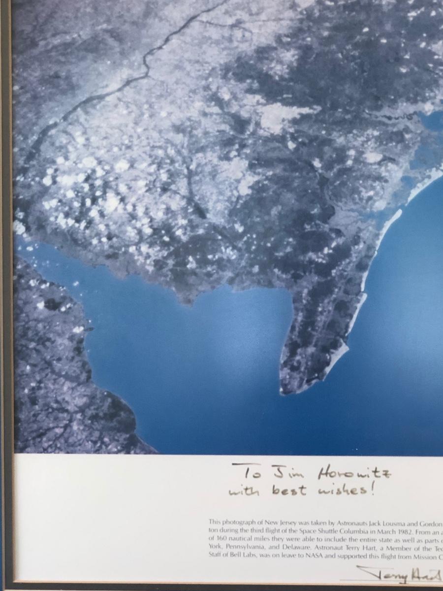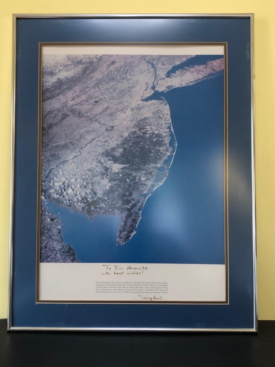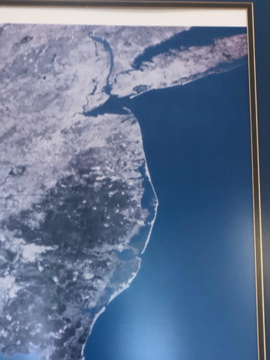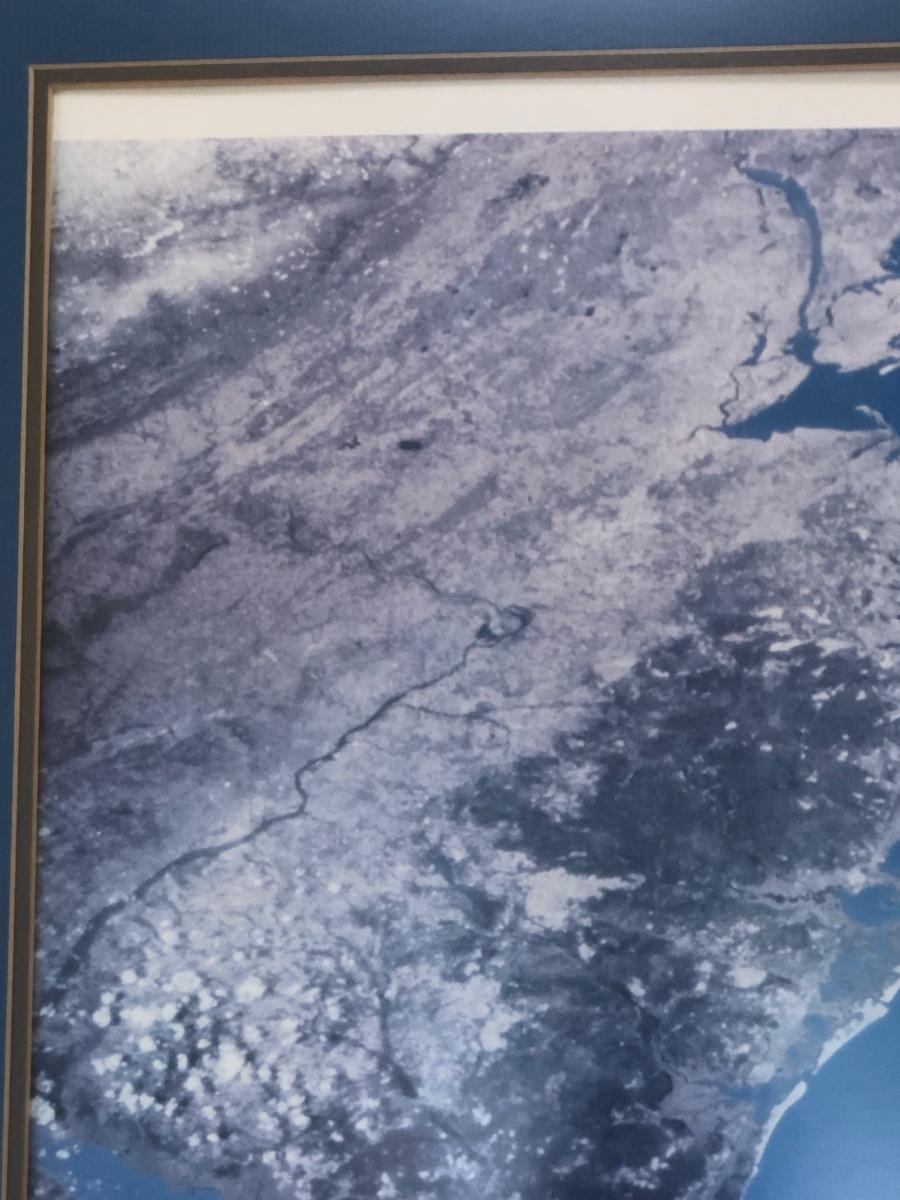 Photo is made of thin paper and measures 11 x 15.5 inches. It is folded with some small signs of wear. The framed satellite photo measures 20 x 27 inches.