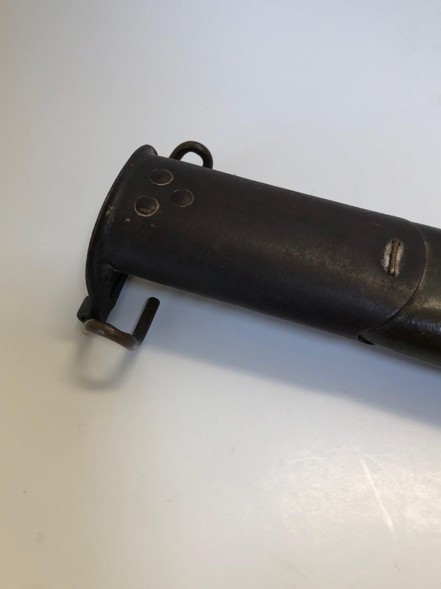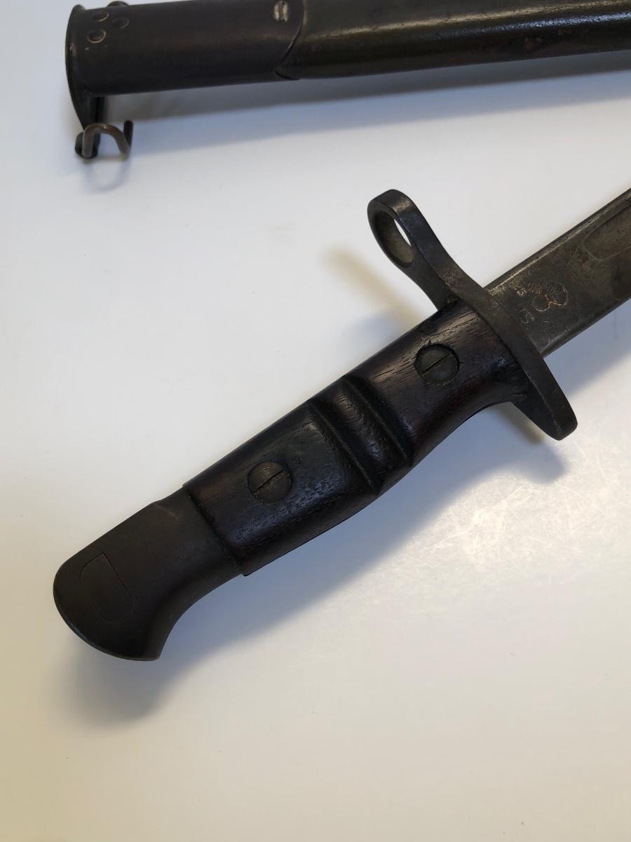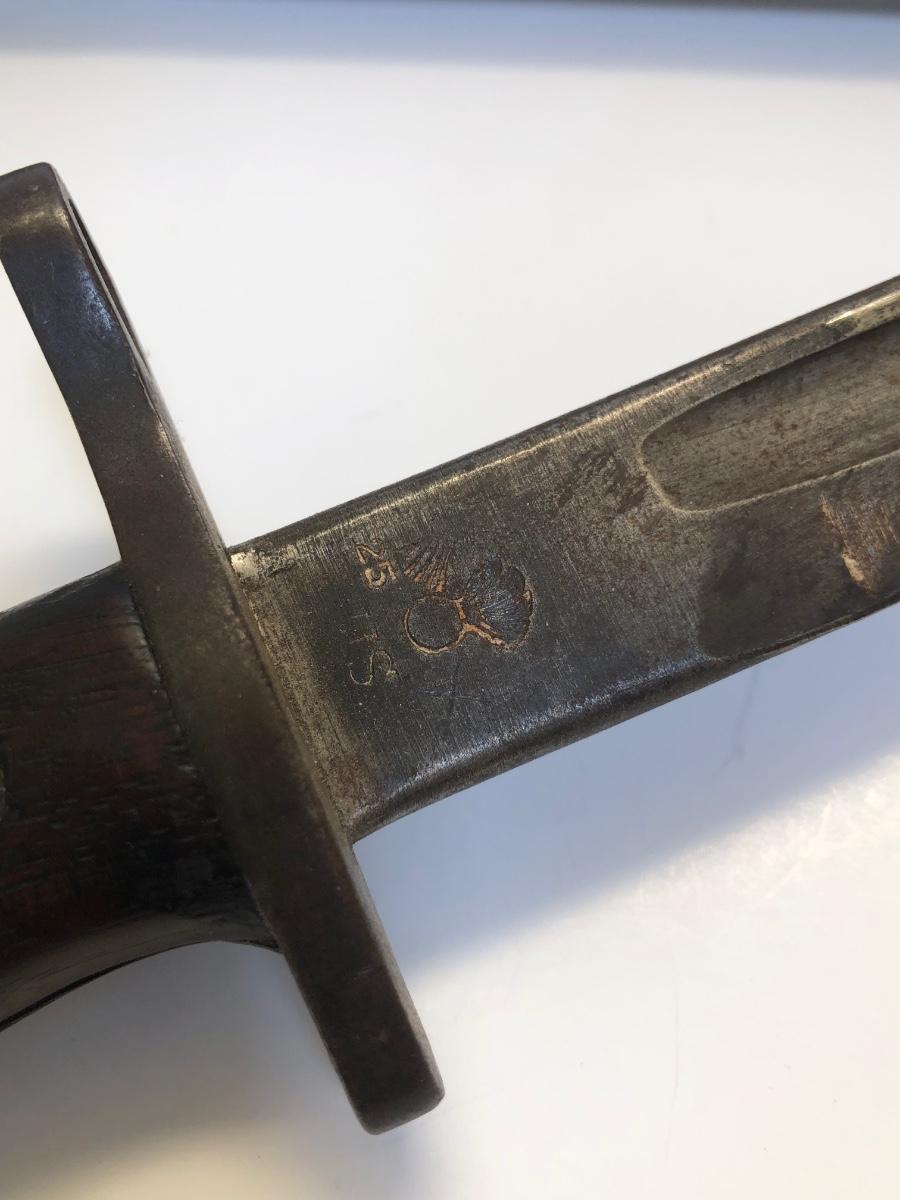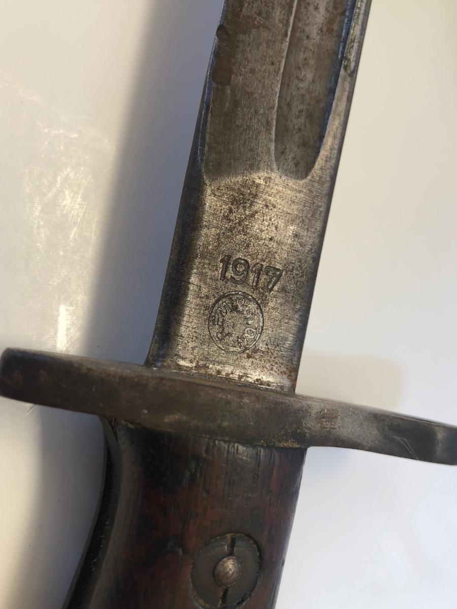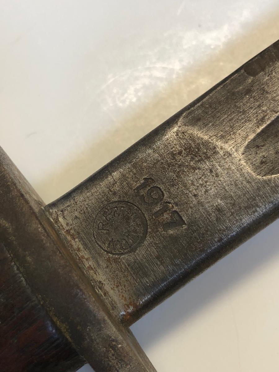 Bayonet does not easily slide in and out of sheath. Marked 1917 Remington and "US" on the other side.
