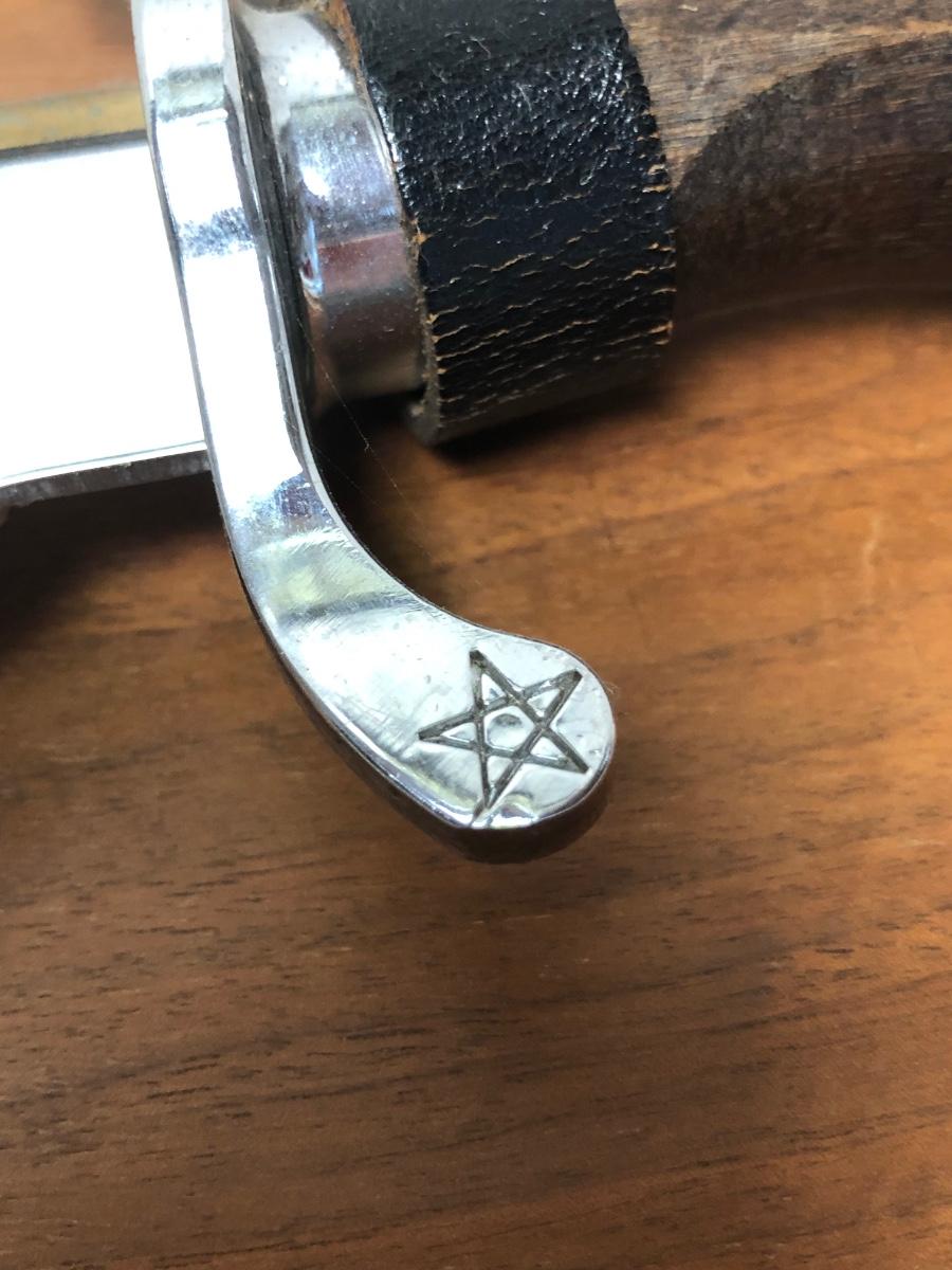Reproduction of the fighting knife of Jim Bowie. Original knife circa 1830, reproduction is not dated. Knife is 14 inches long.