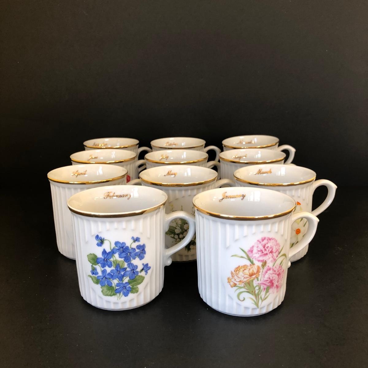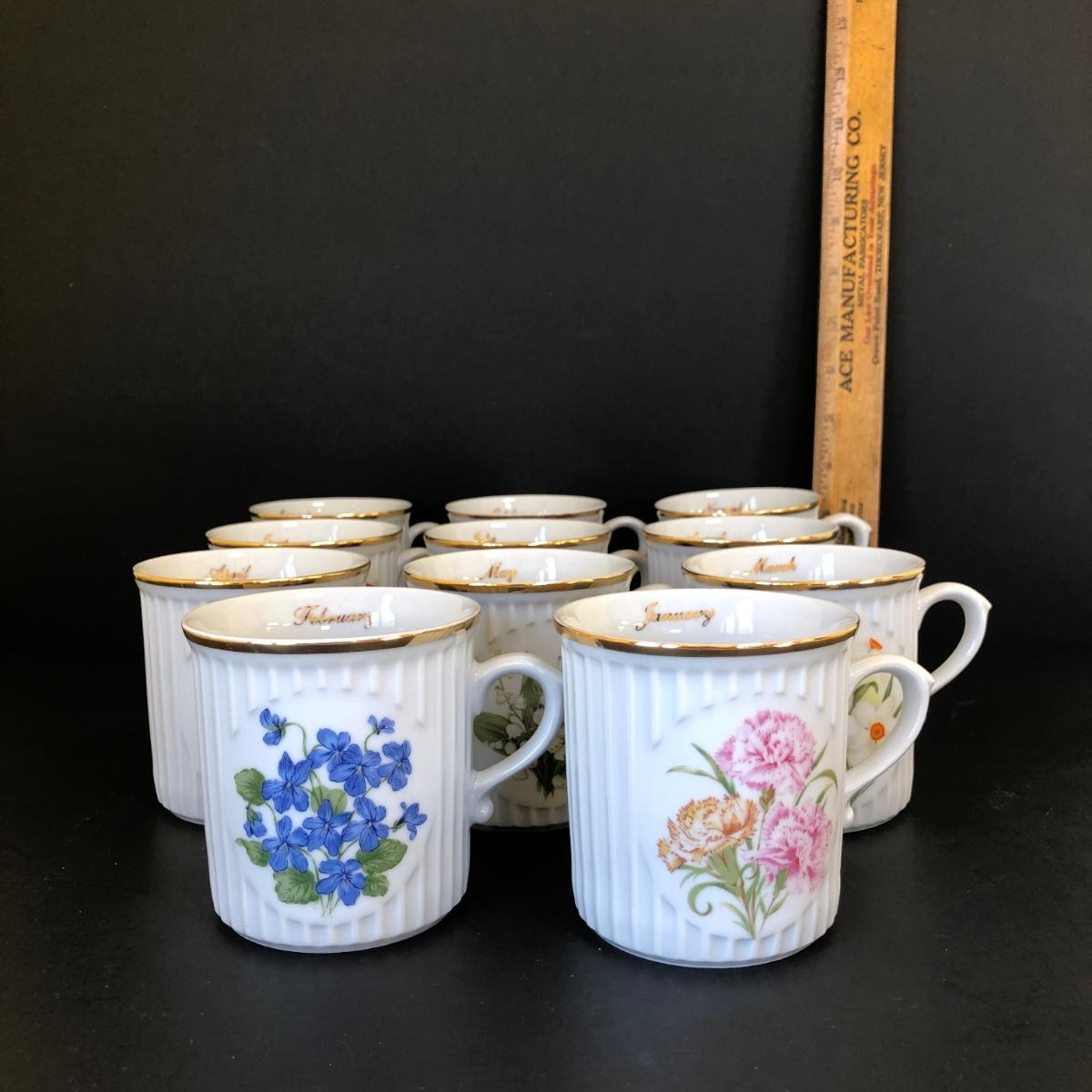LOT 315M: Original Dohemia Czech Republic Flowers of the Month Mugs (11)