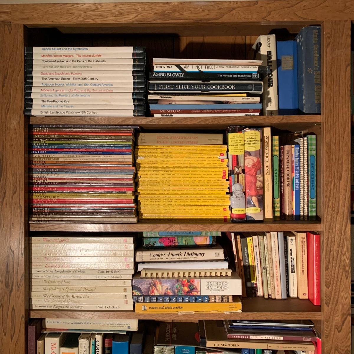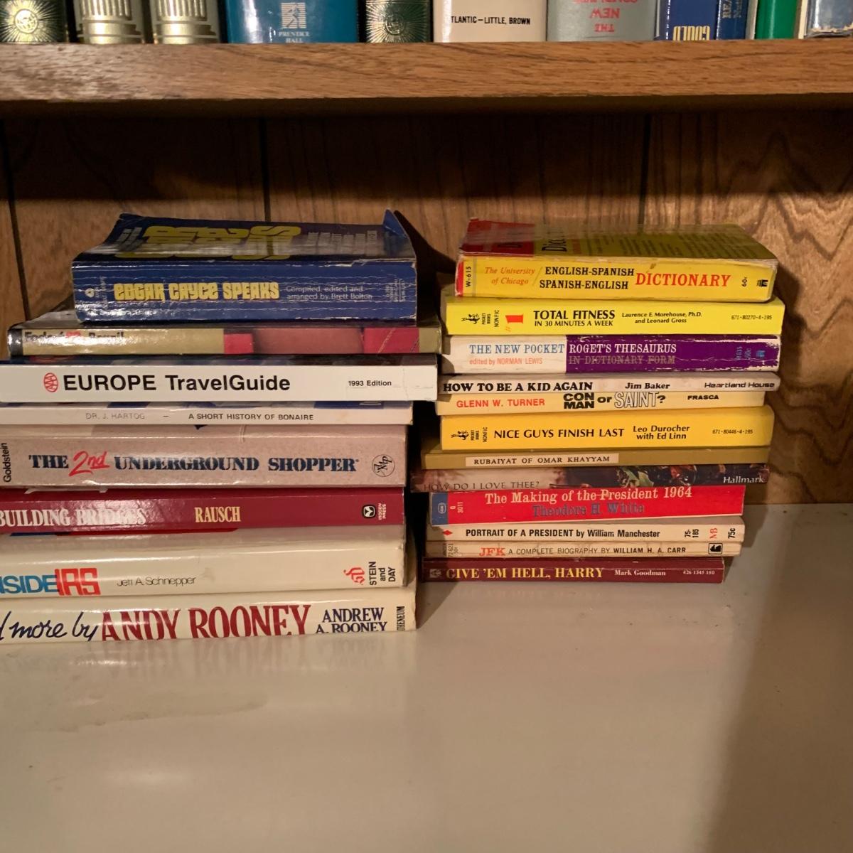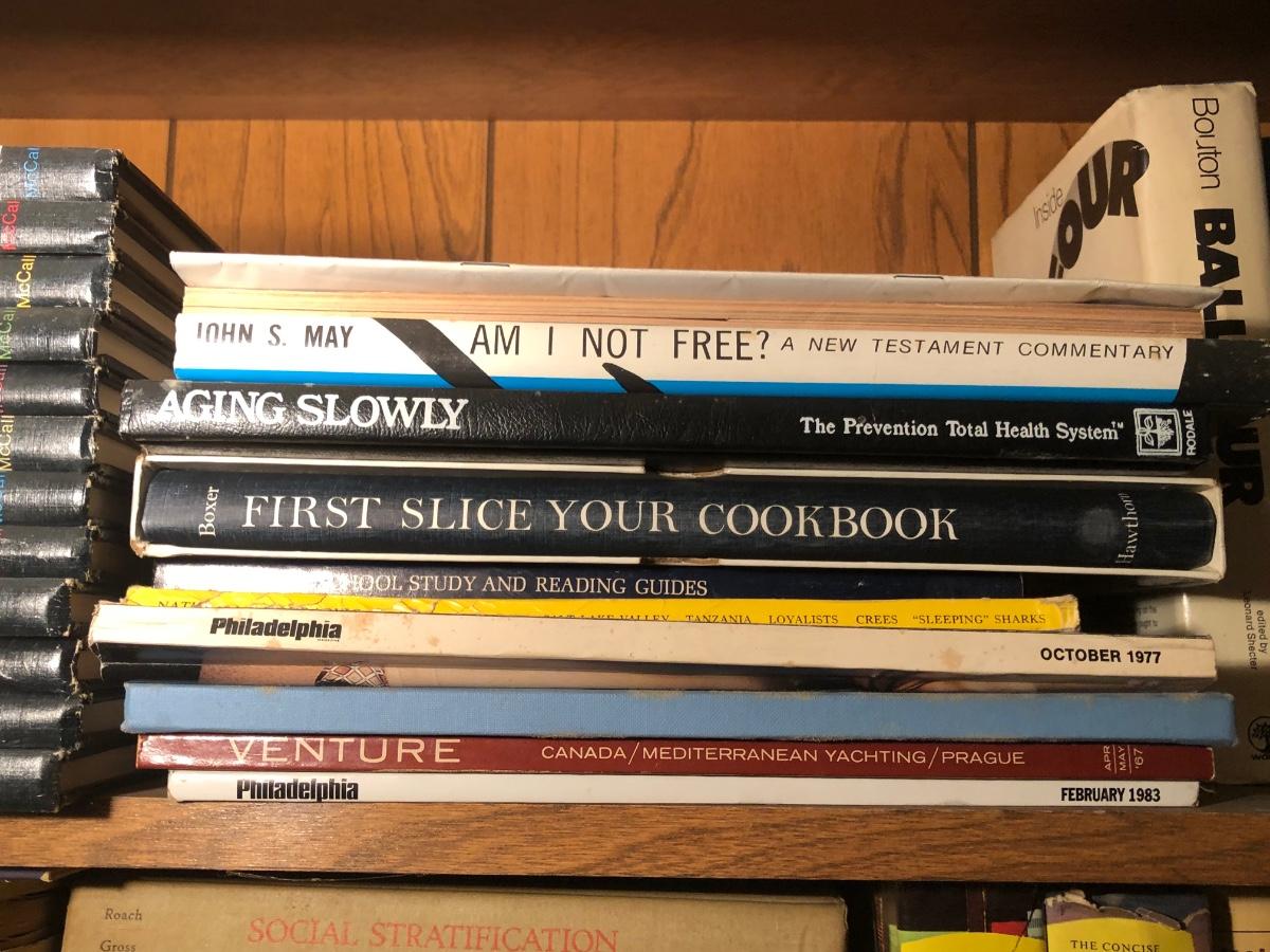 Includes all books and magazines on the shelves photographed. Titles, editions, and condition may vary.