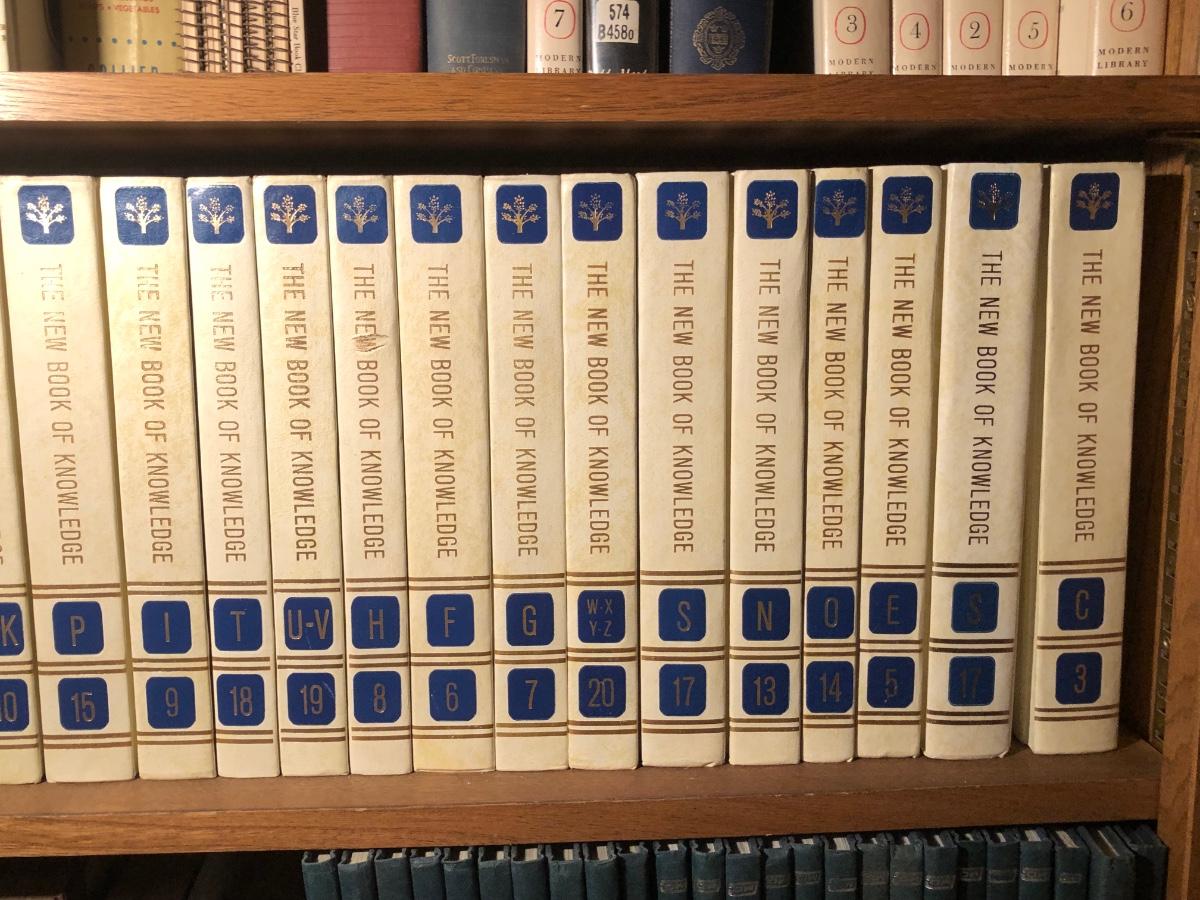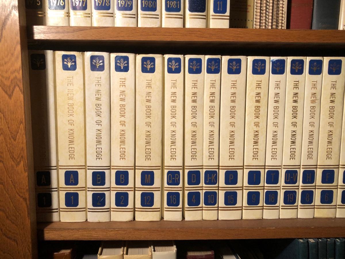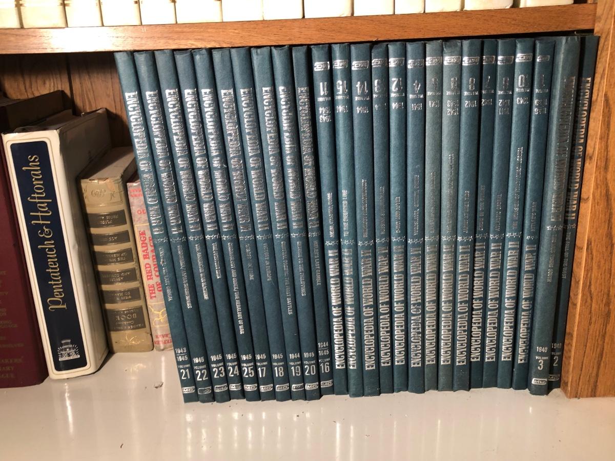 LOT 323M: Bookshelf Collection - "The New Book of Knowledge" Anthology, Encyclopedia of WWII & More