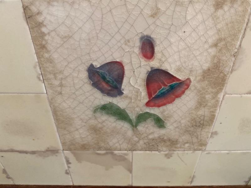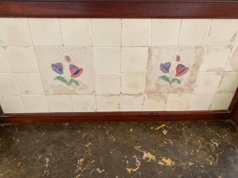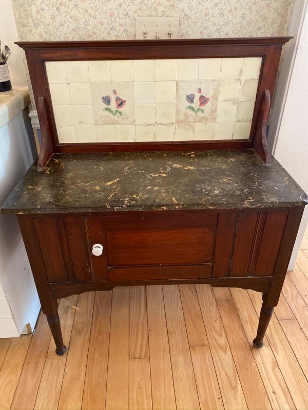 Antique Tile back Welsh washstand measures 35.5”w x 17.5” deep x 44” high