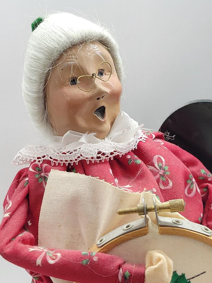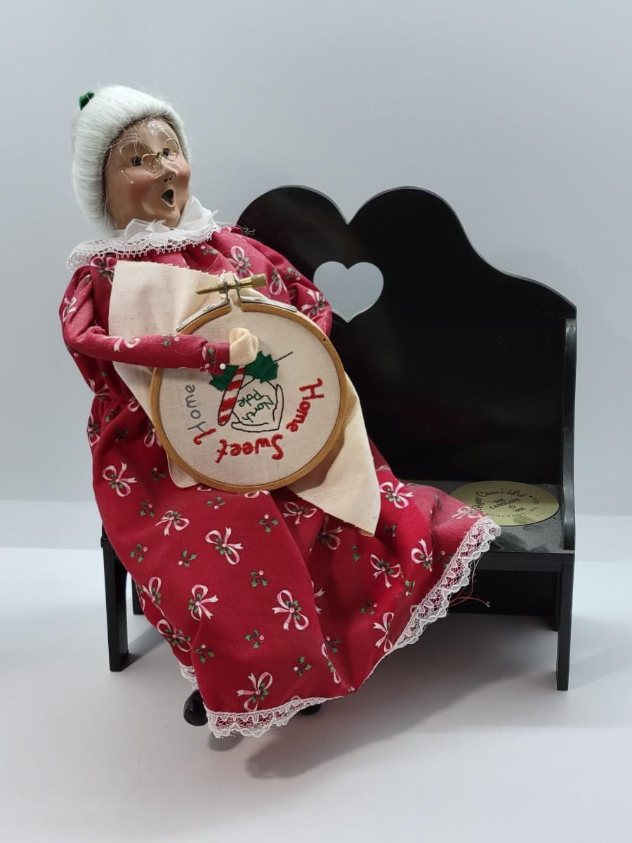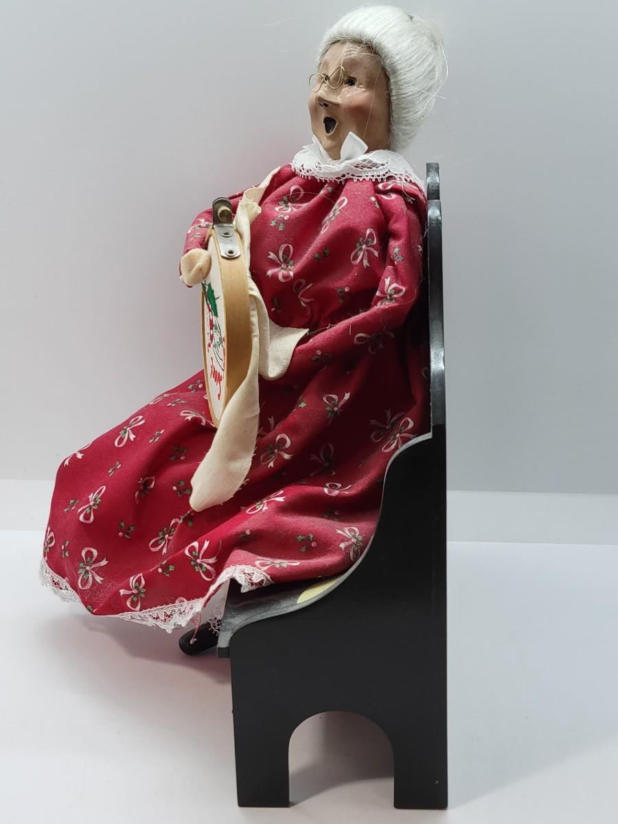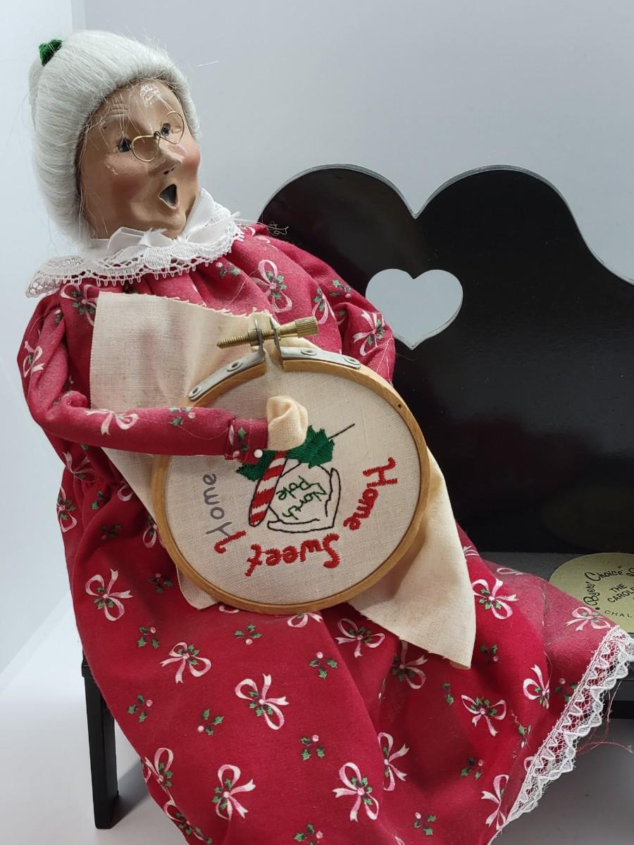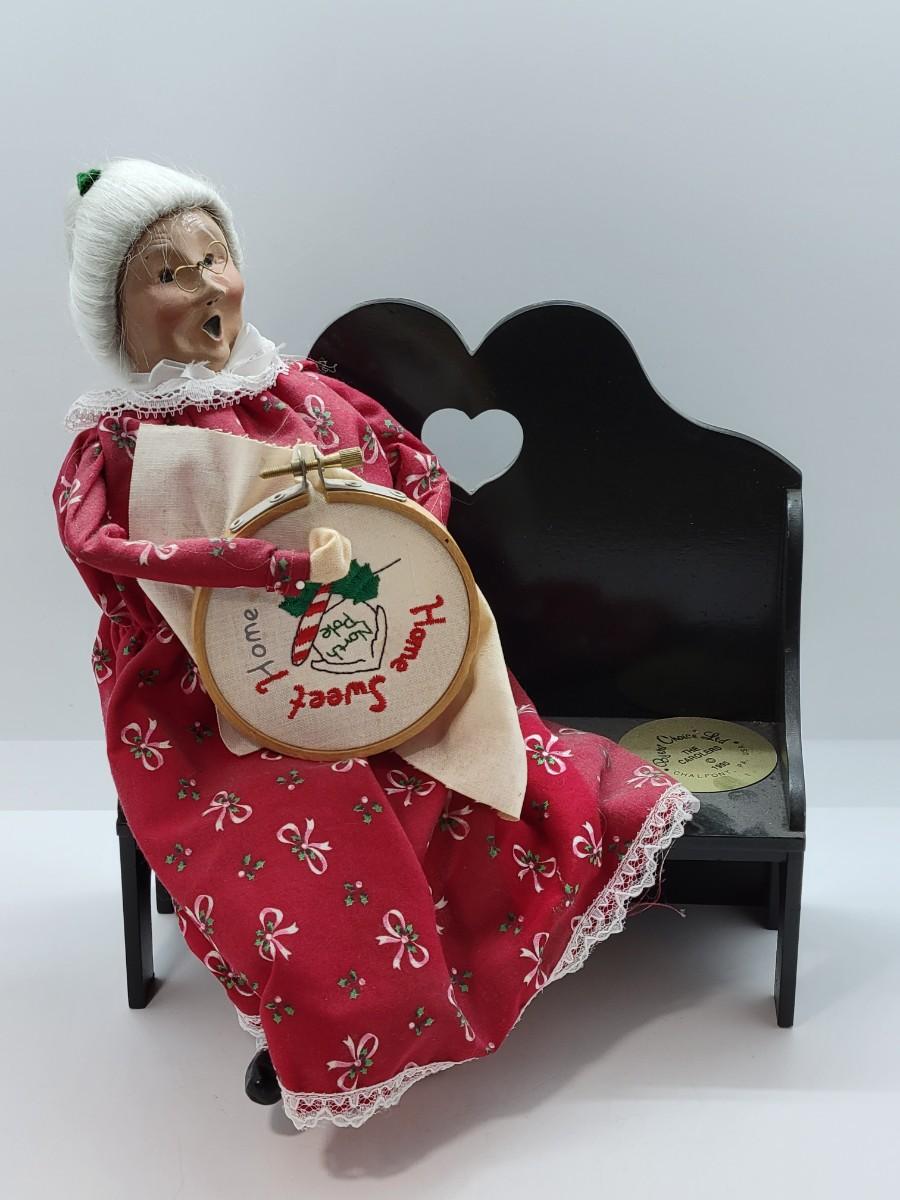 LOT 3: Vintage Byers Choice Mrs. Claus with Needlework on Bench 1995