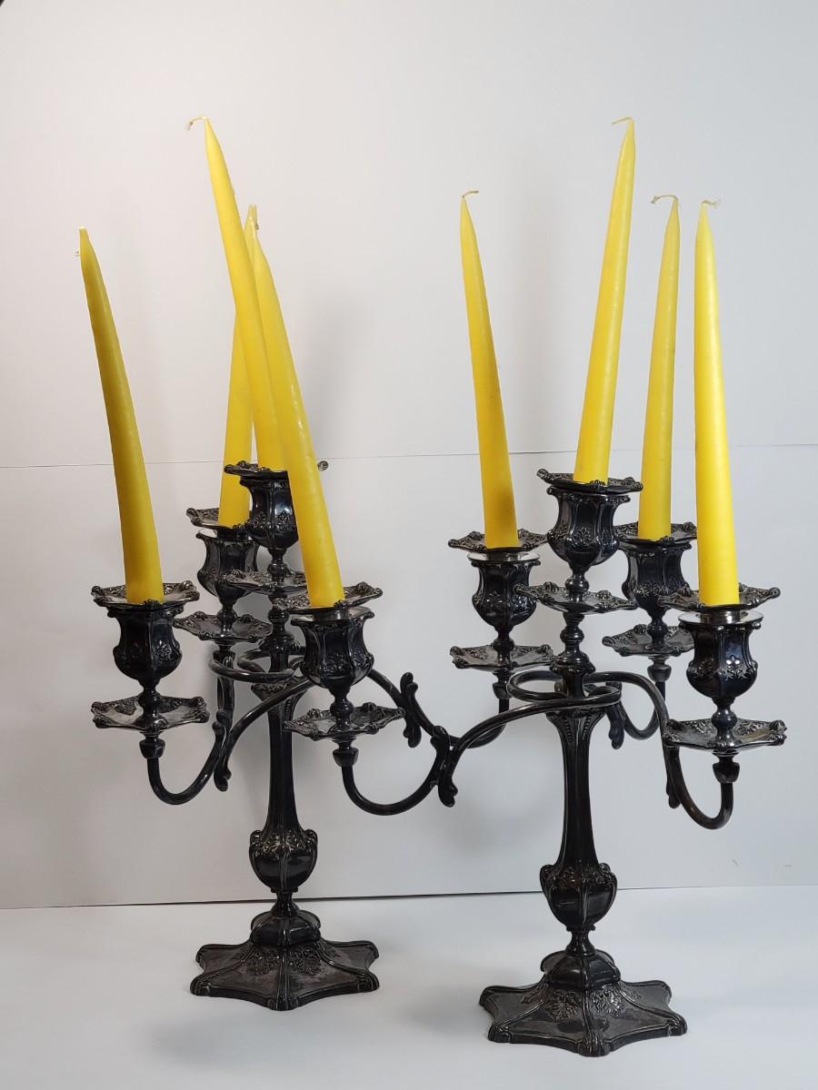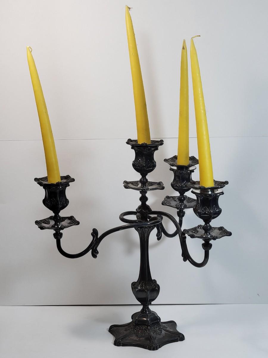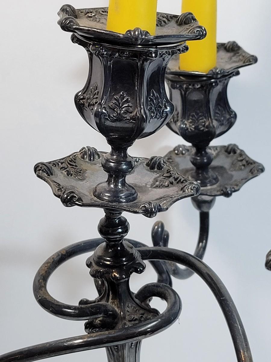 LOT 12: Wilcox Quadruple Plate Silver-plate 4-arm Candelabra Pair