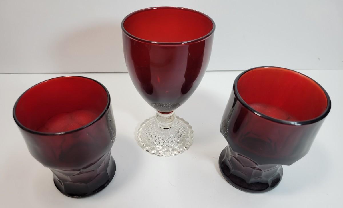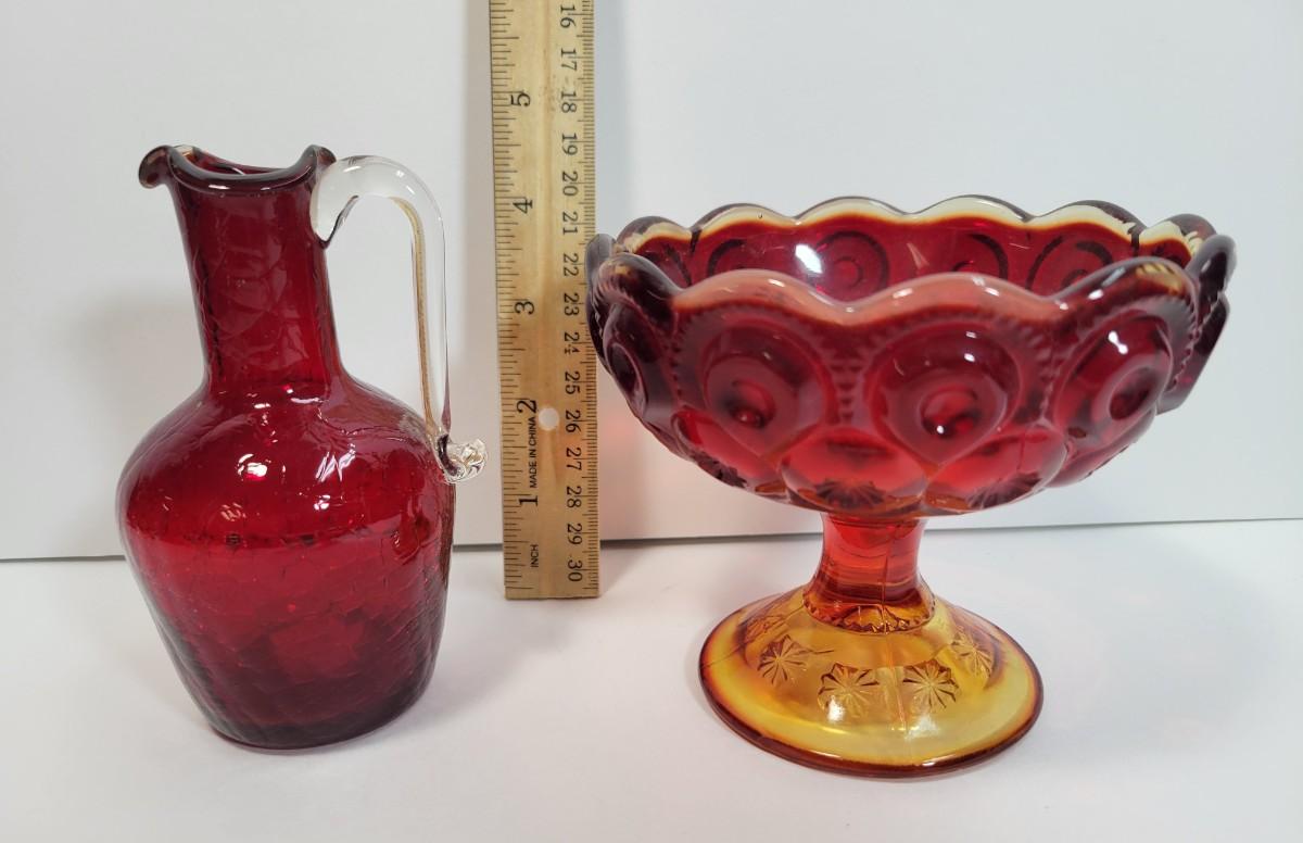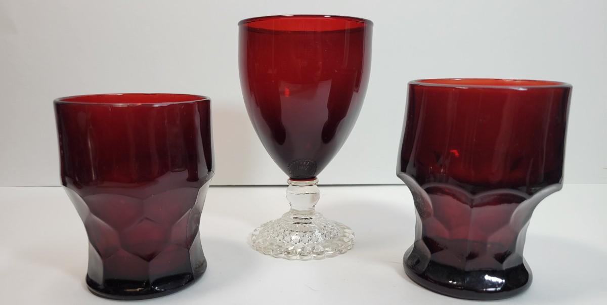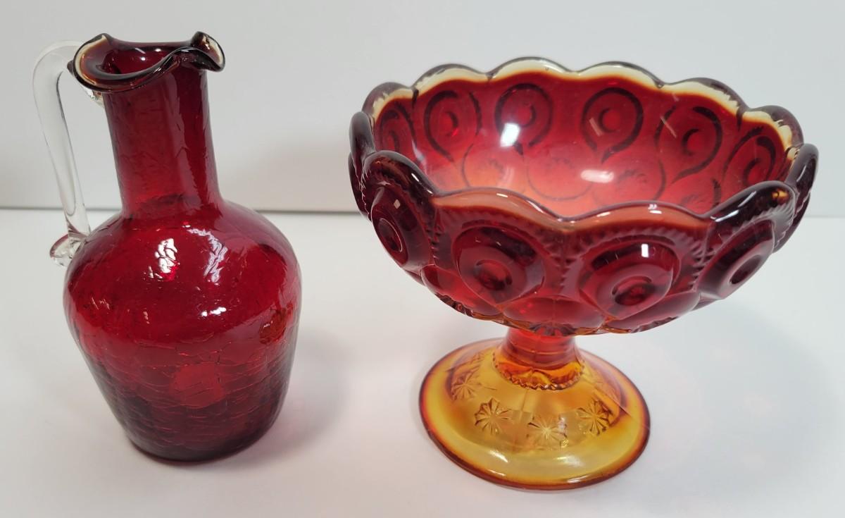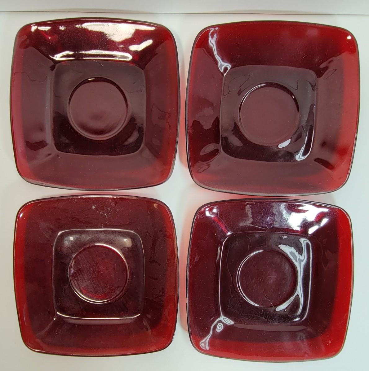 LOT 28: Red Glass: Dinnerware, Glassware, Ashtrays, Serveware, & Mini Pitcher