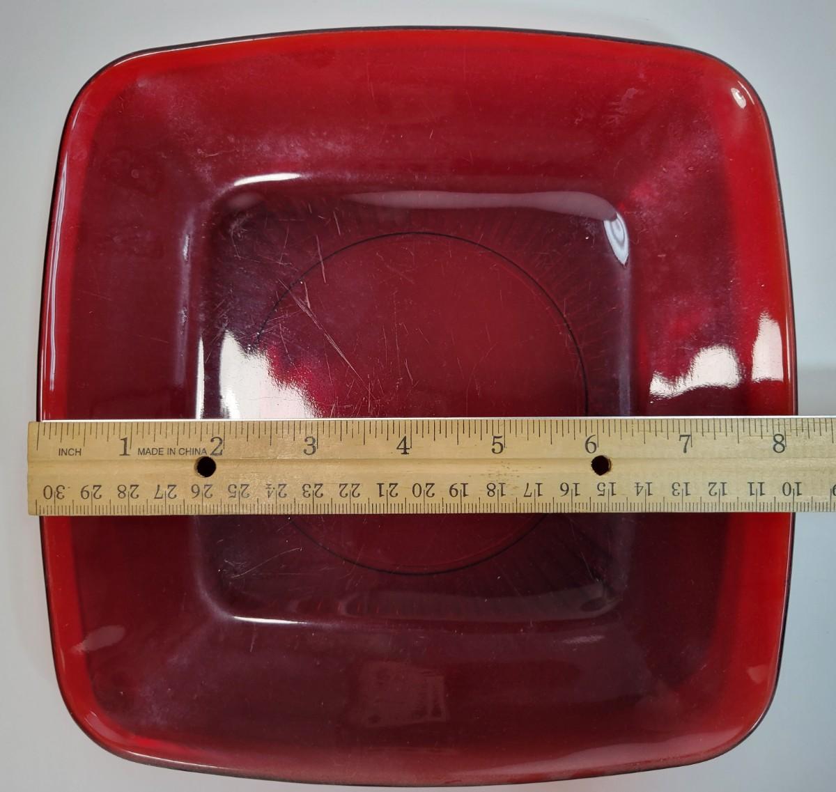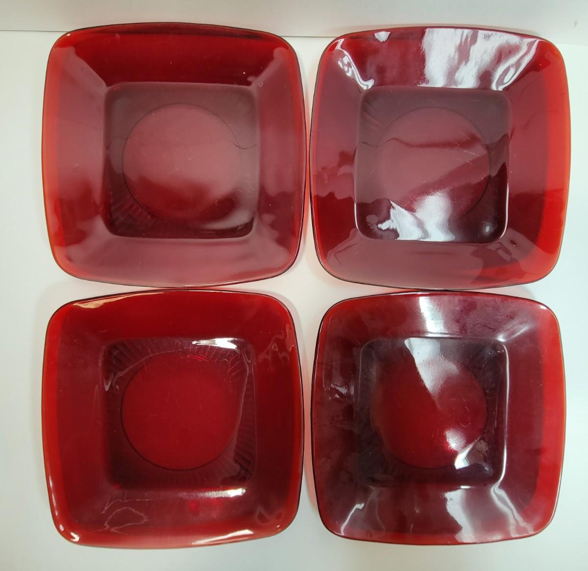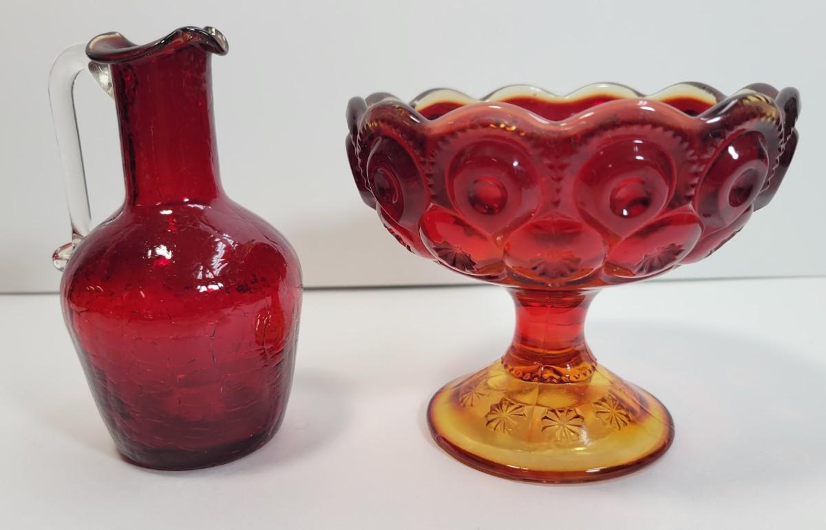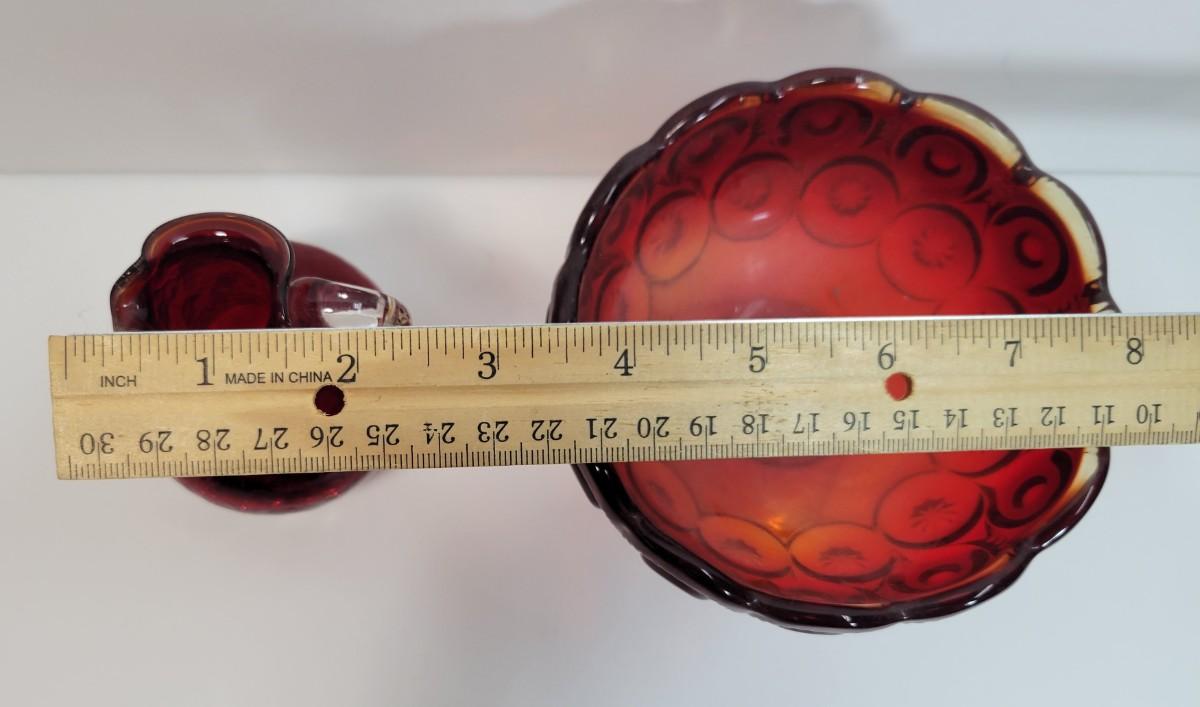 LOT 28: Red Glass: Dinnerware, Glassware, Ashtrays, Serveware, & Mini Pitcher