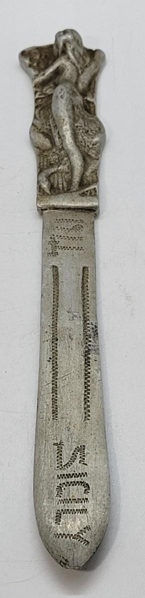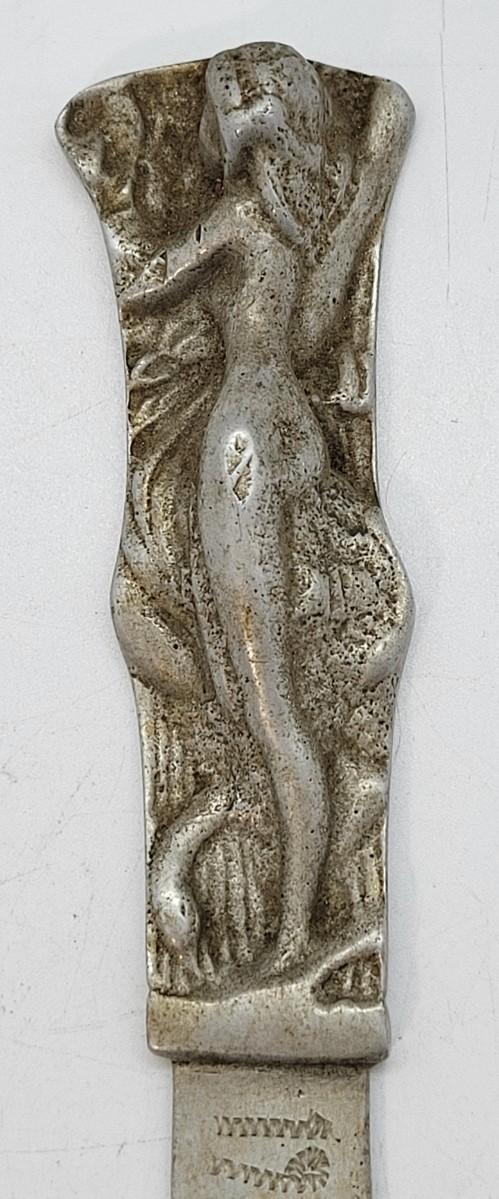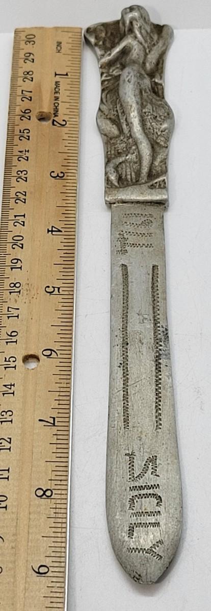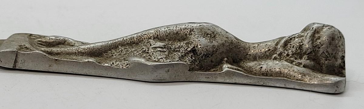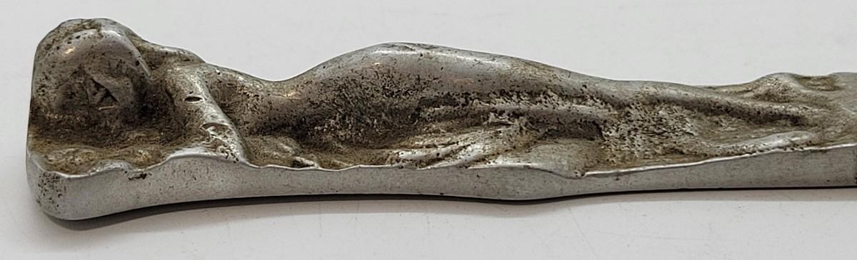 LOT 46: Vintage WW2 Aluminum Art Deco Nude Woman Letter Opener - Marked Sicily 1944