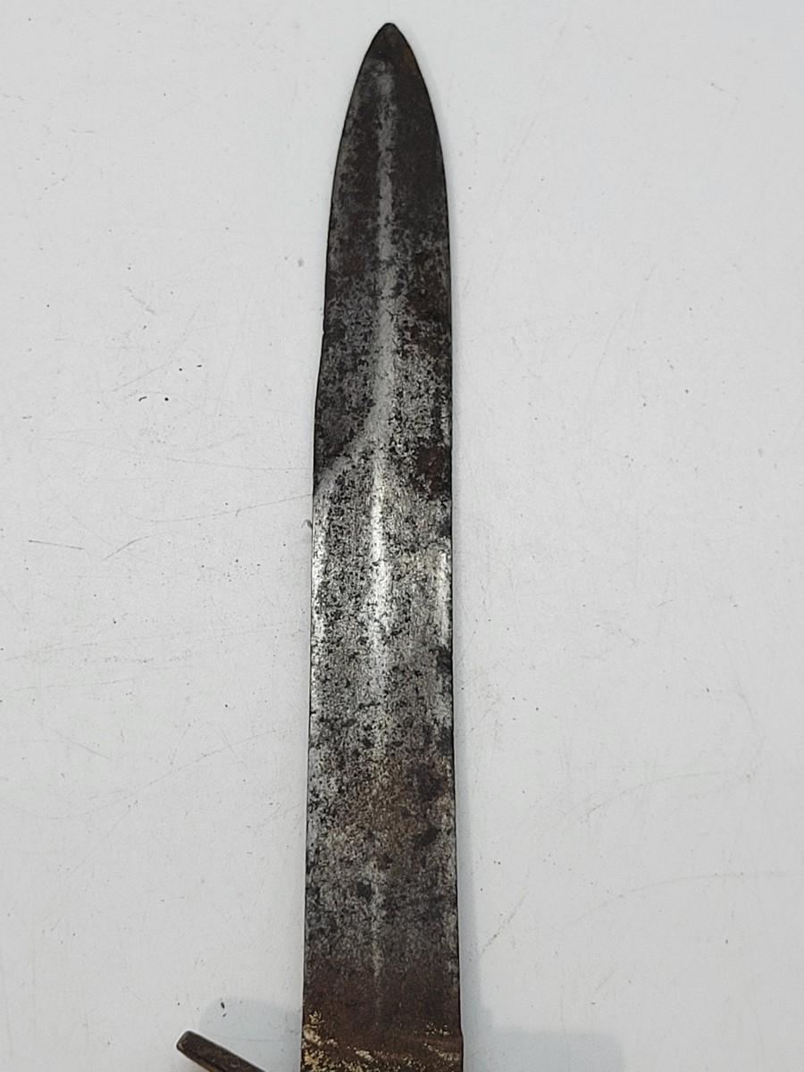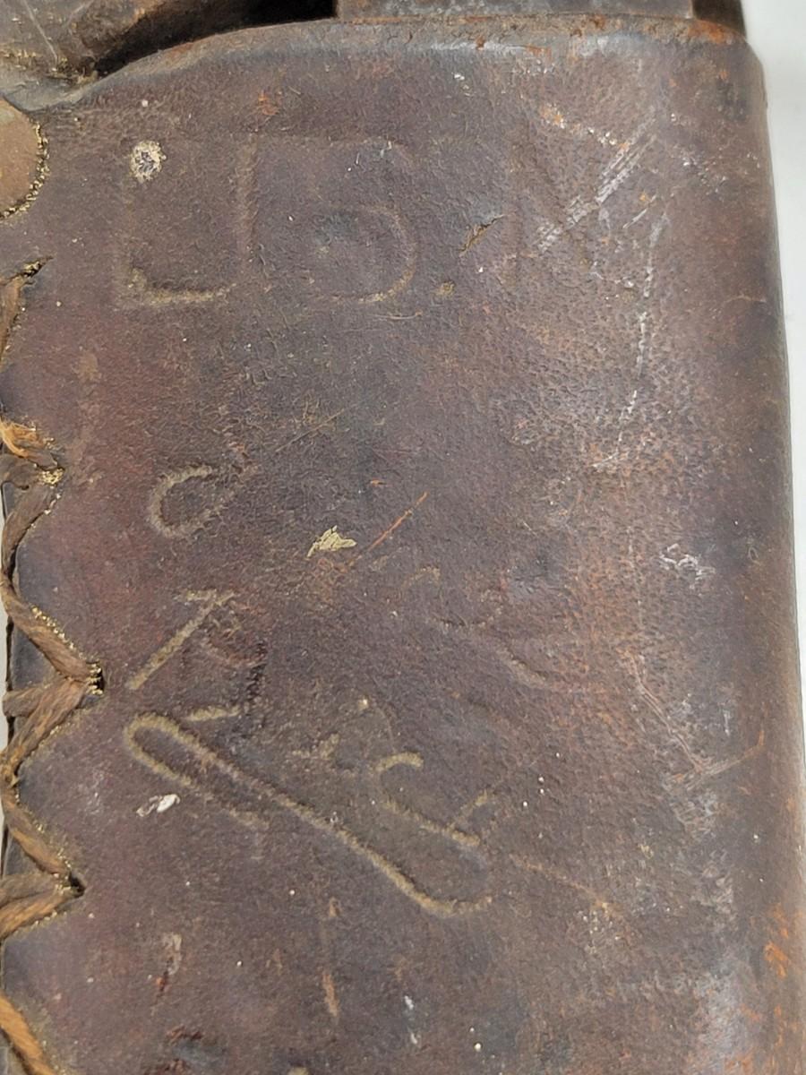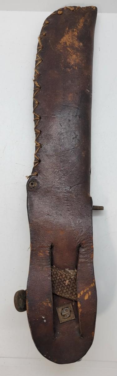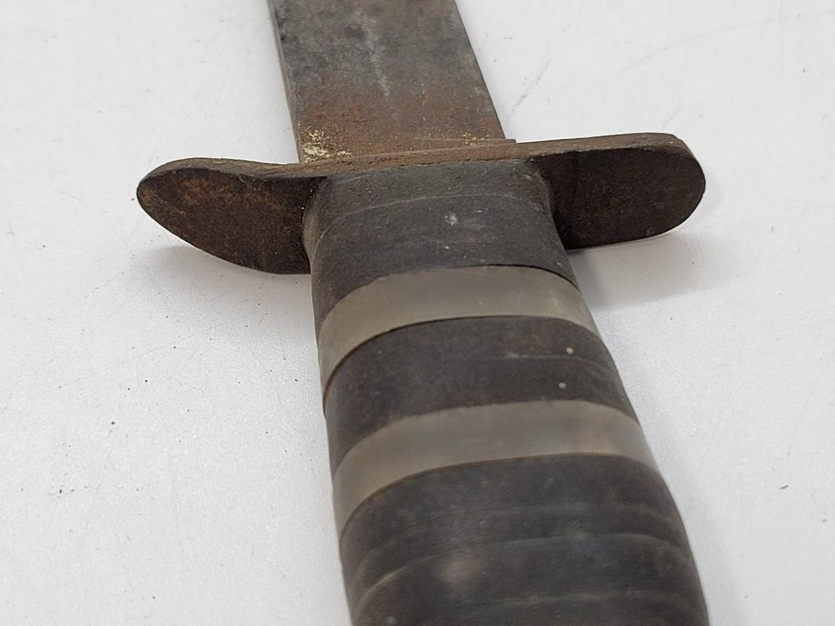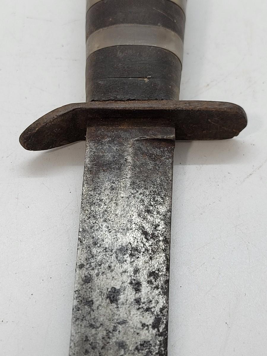 LOT 49: Vintage WW2 Fighting Knife with Plexi Glass Beads in engraved Leather Sheath