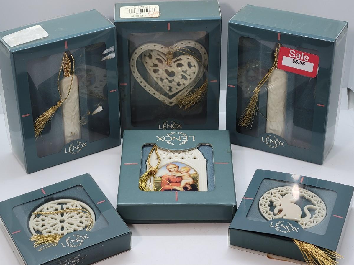 LOT 52: Collection of Lenox Ornaments - Candles, Mary/ Baby Jesus, & More!