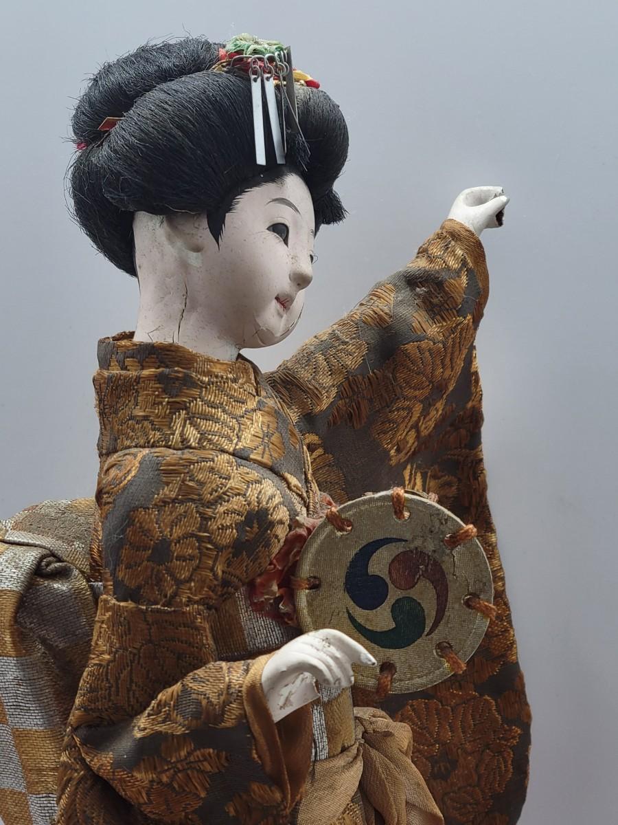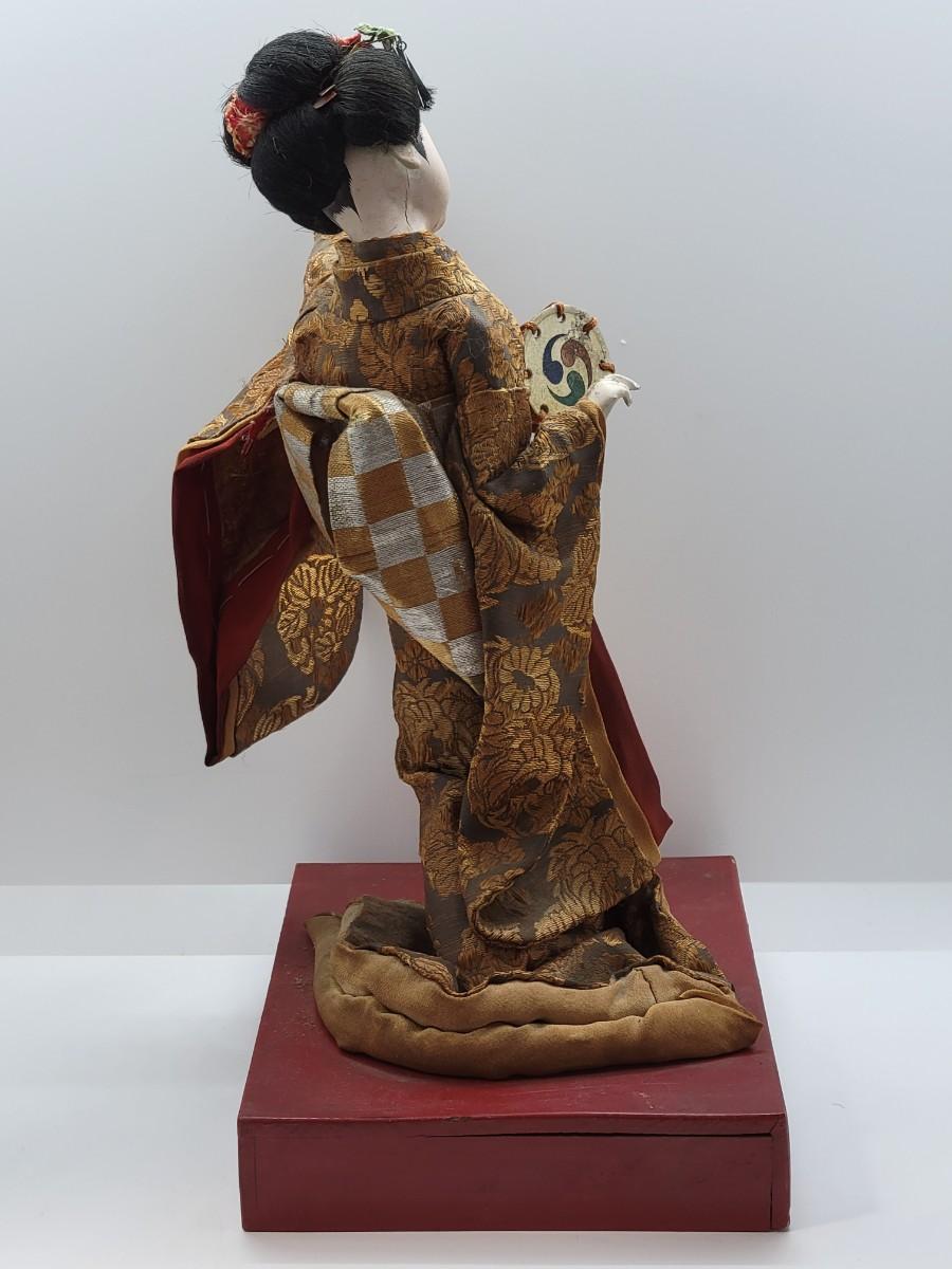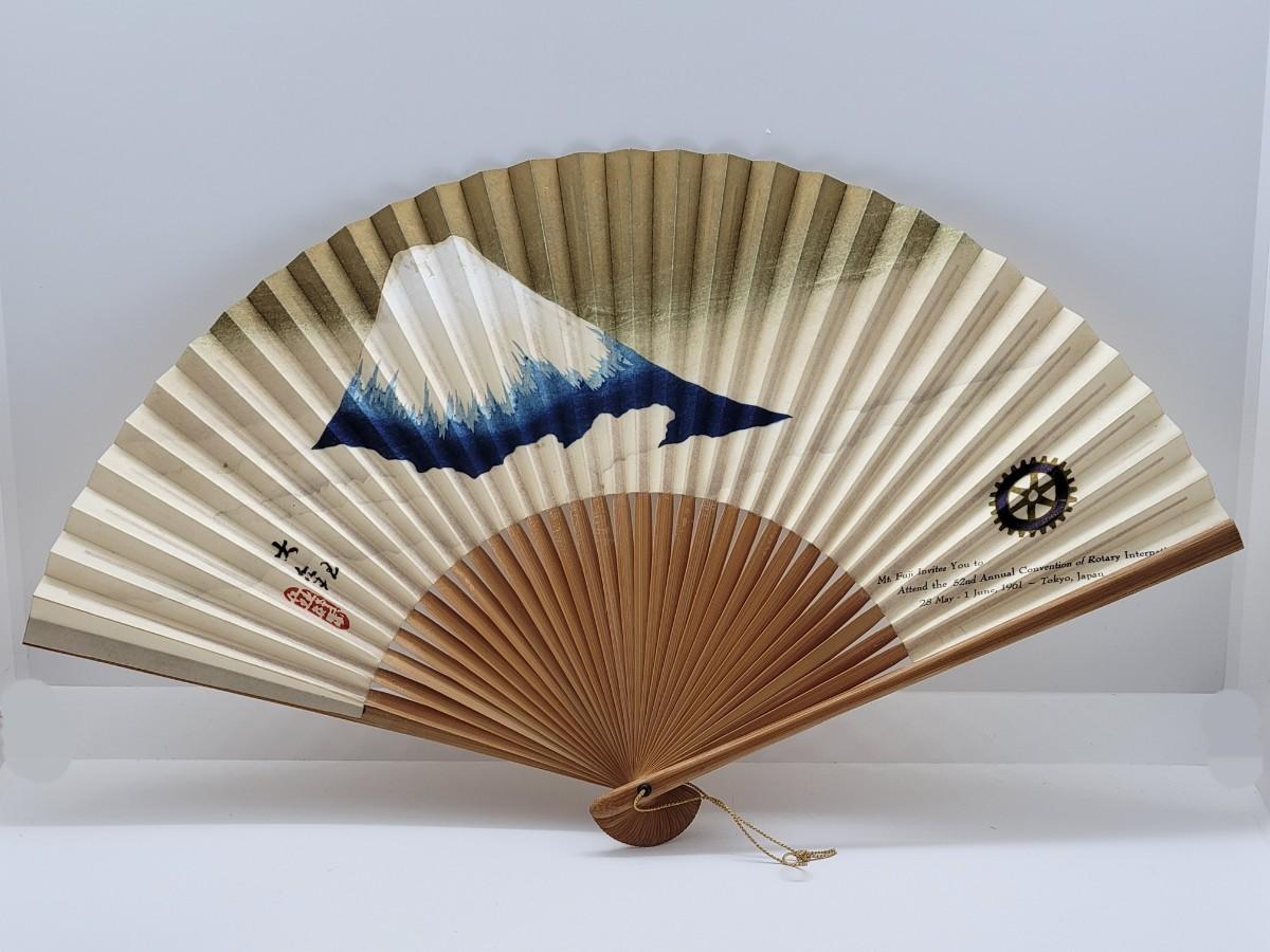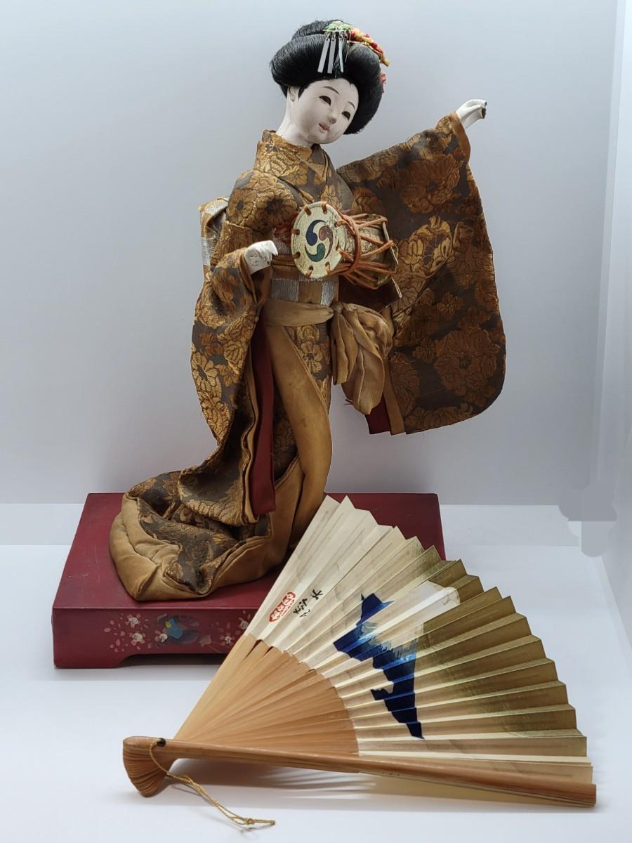 LOT 62: Vintage Japanese Doll & Fan with Mt. Fuji Depiction