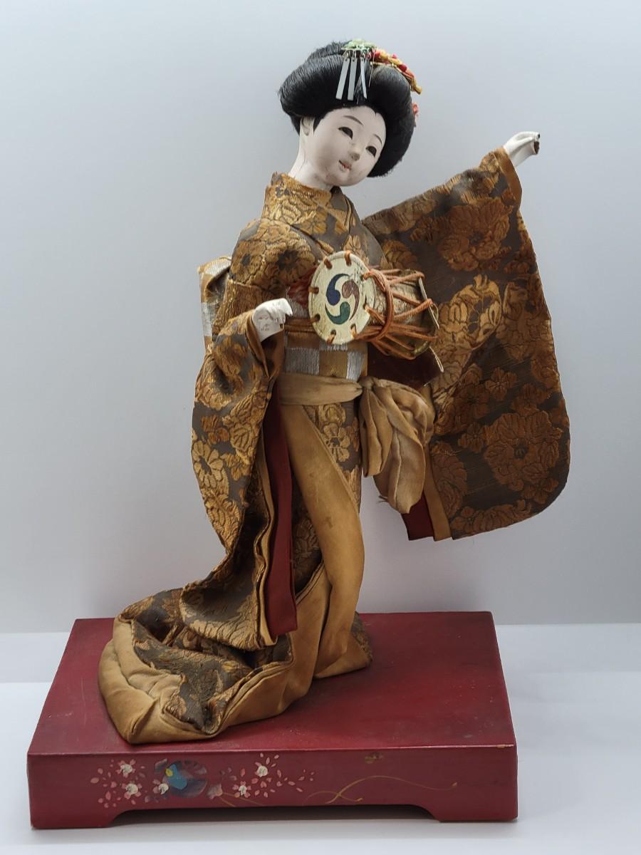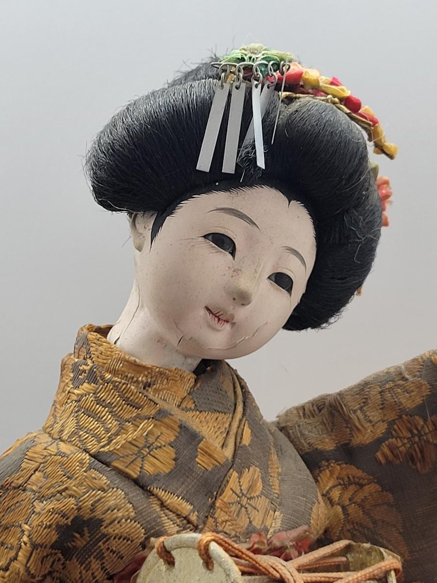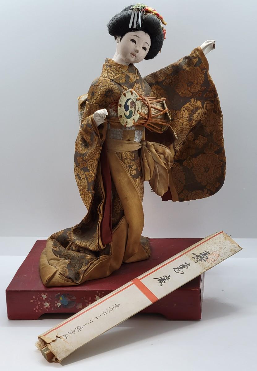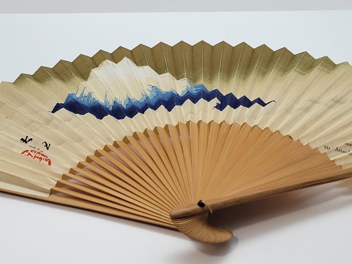 LOT 62: Vintage Japanese Doll & Fan with Mt. Fuji Depiction