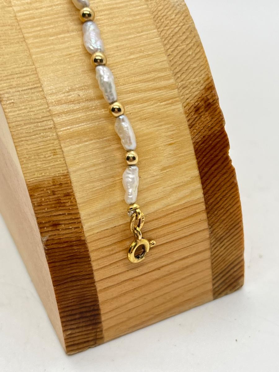 LOT 106: 14K Gold and Freshwater Pearl 7-1/4” Bracelet - Italy - 2.3 gta