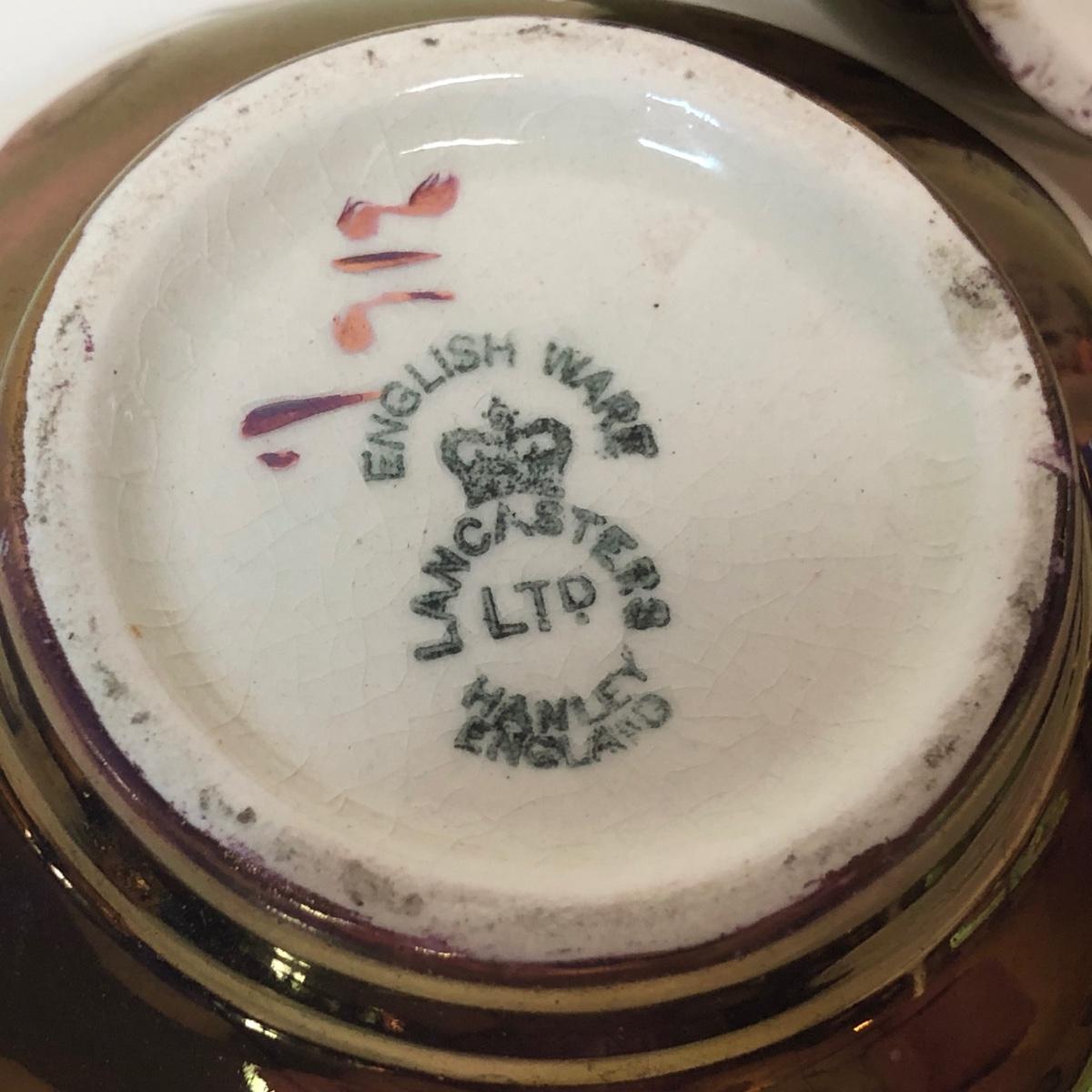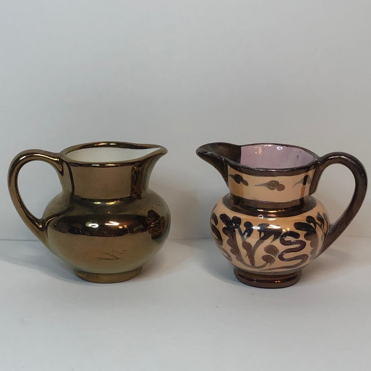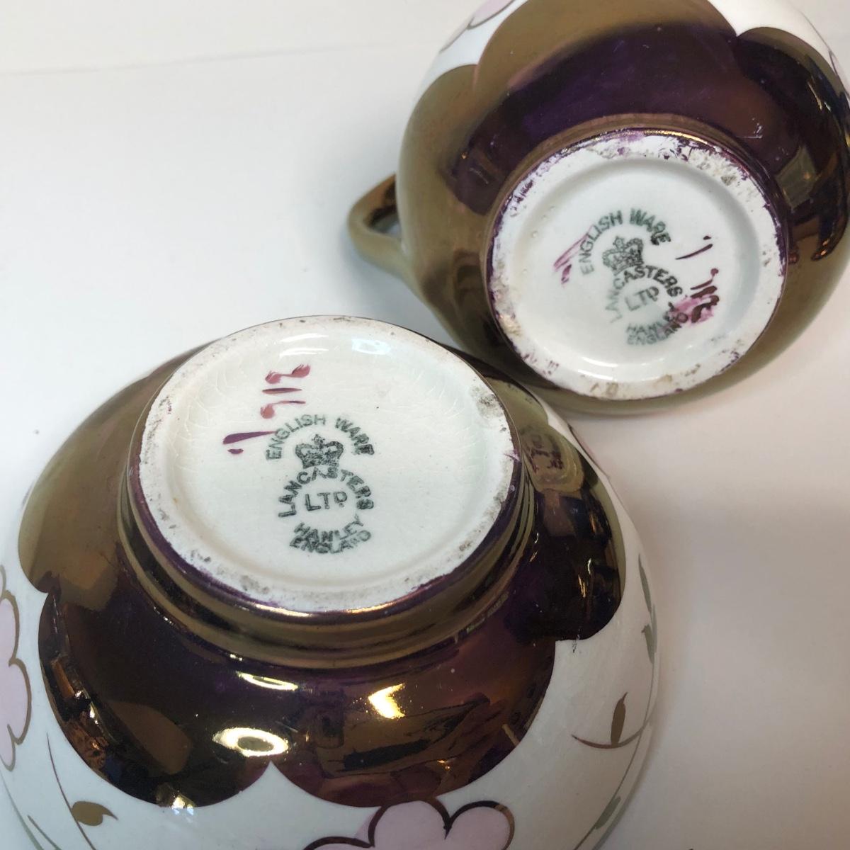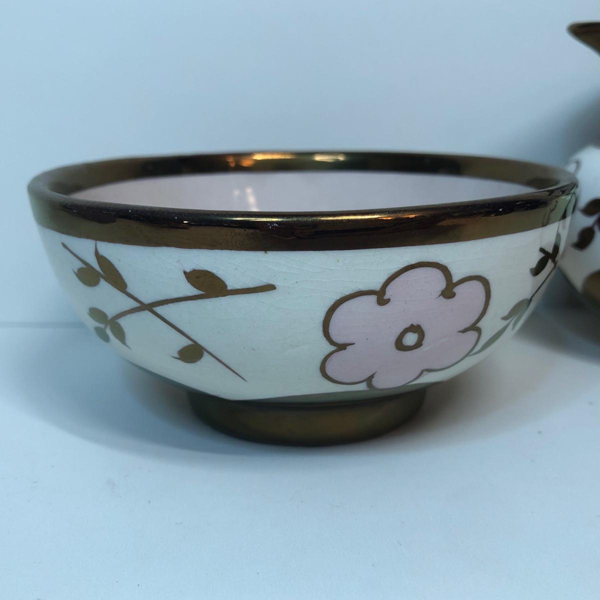 Includes a small matching pink, white & brown English Ware bowl and pitcher, a mug, a vase, two small pitchers and a Noritake tea pot with a bird on the lid.