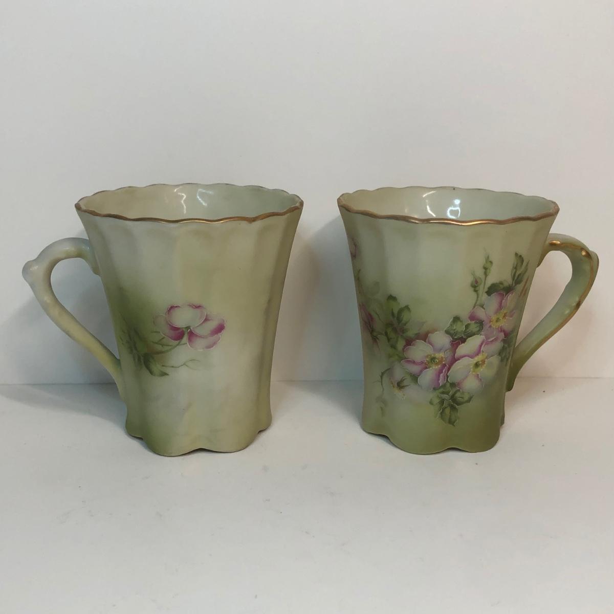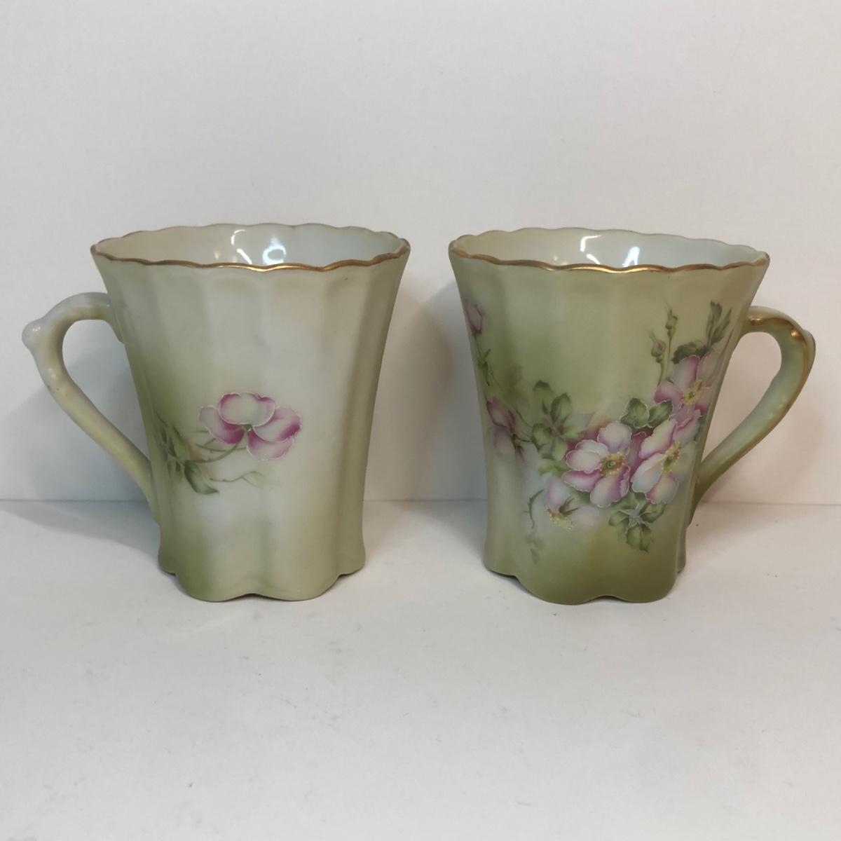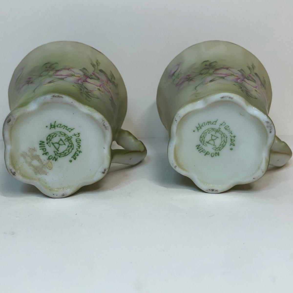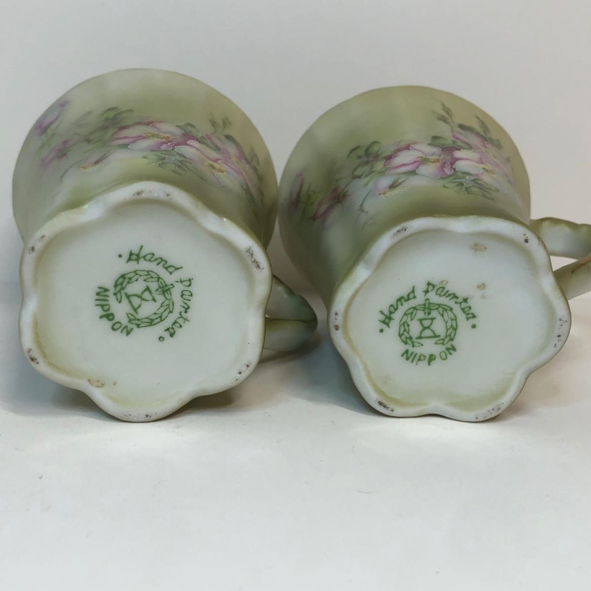 LOT 5M: Vintage Hand-Painted Nippon Hot Chocolate Pot w/ 4 Teacups & Moustache Cup