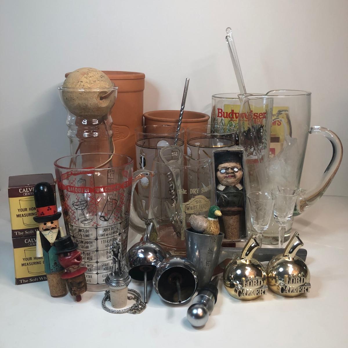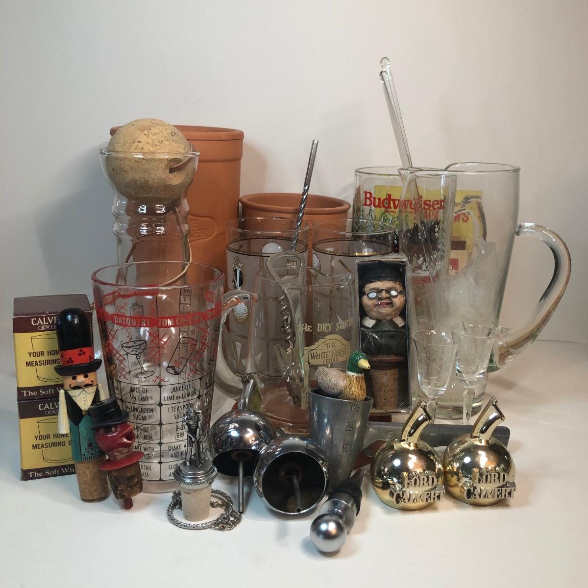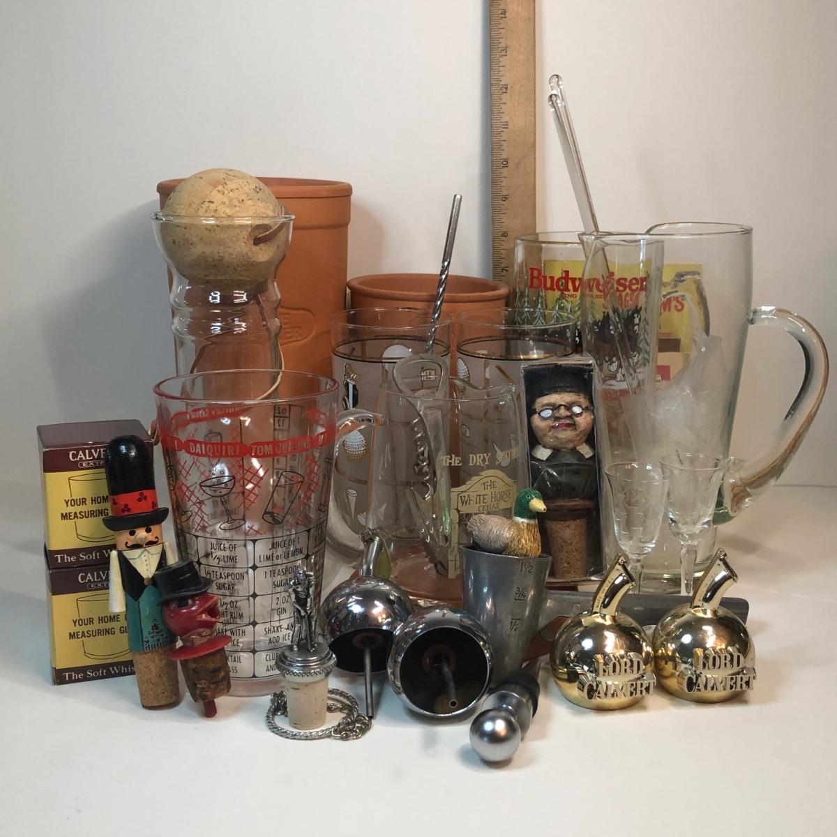 LOT 7M: Barware Collection: Glasses, Tools, Spouts & More