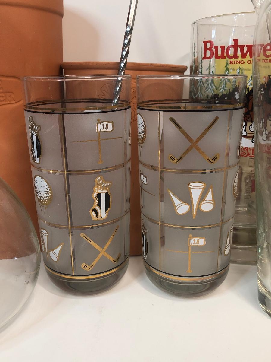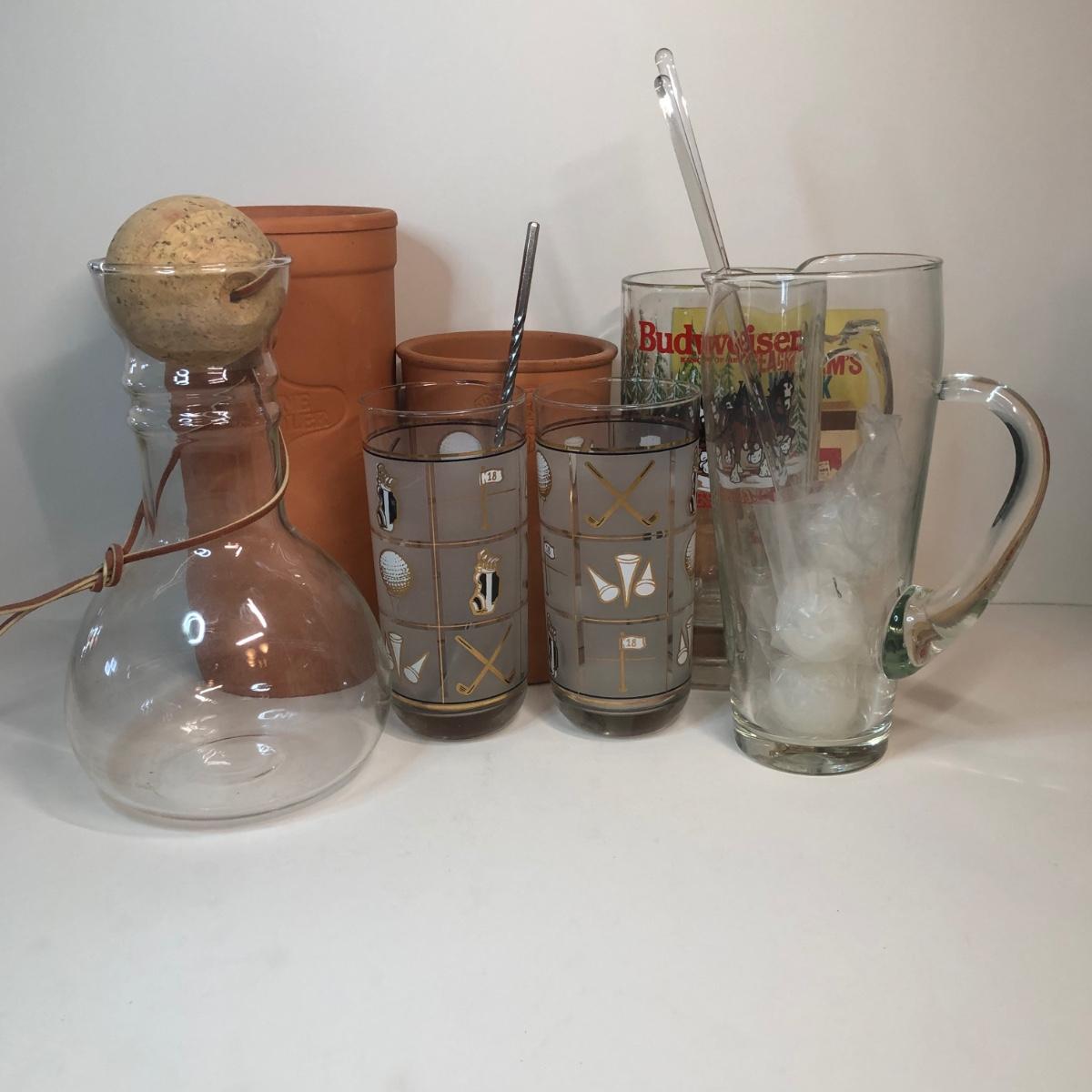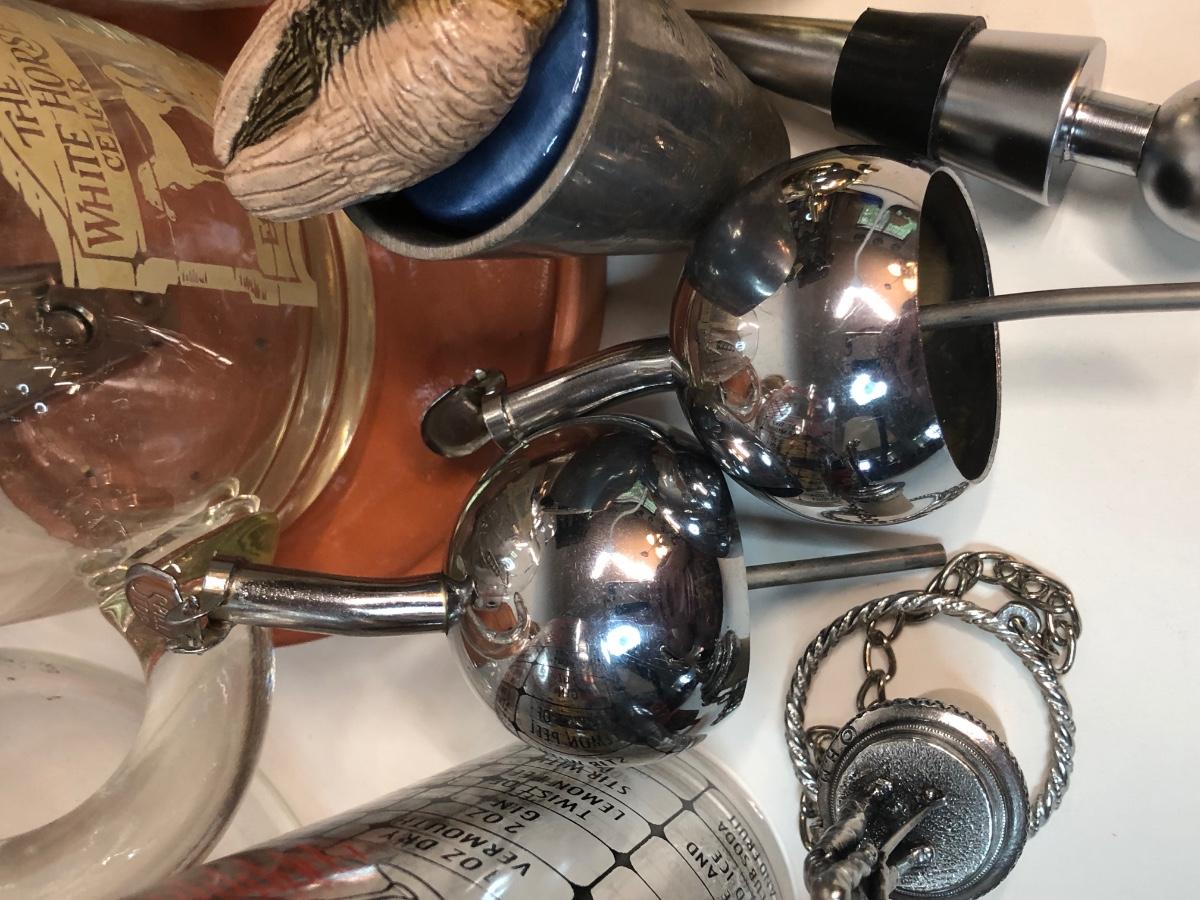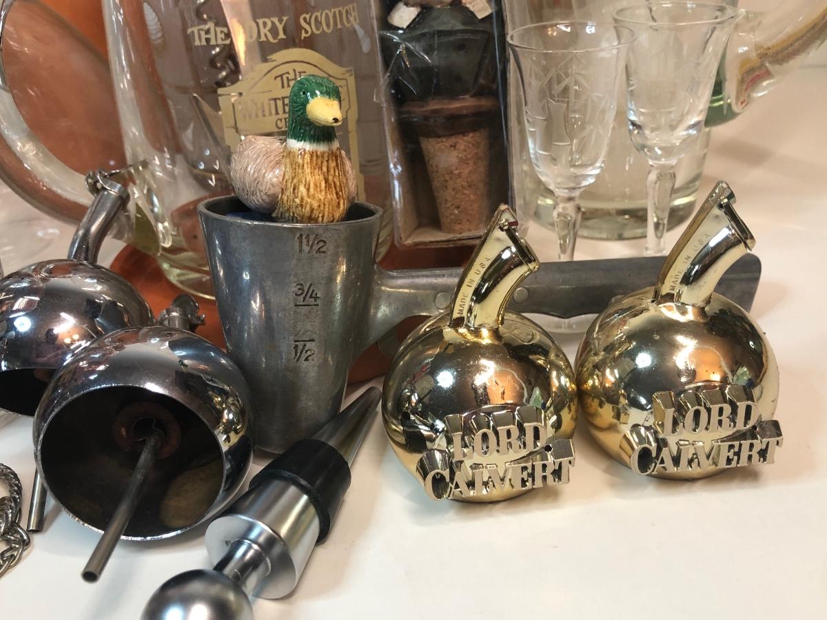 LOT 7M: Barware Collection: Glasses, Tools, Spouts & More