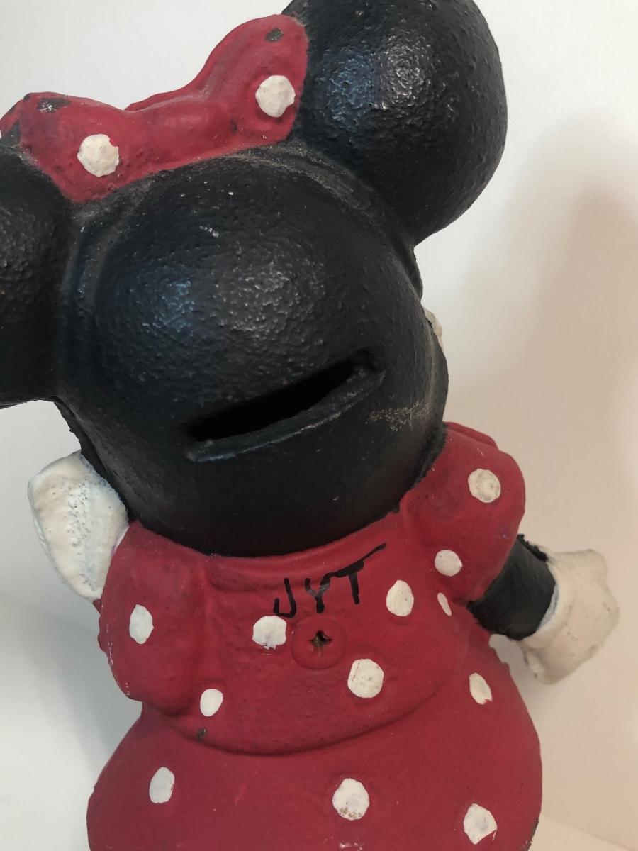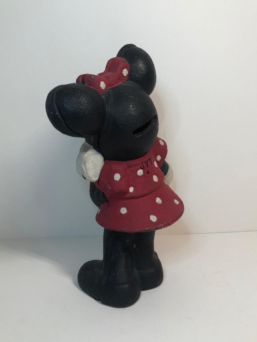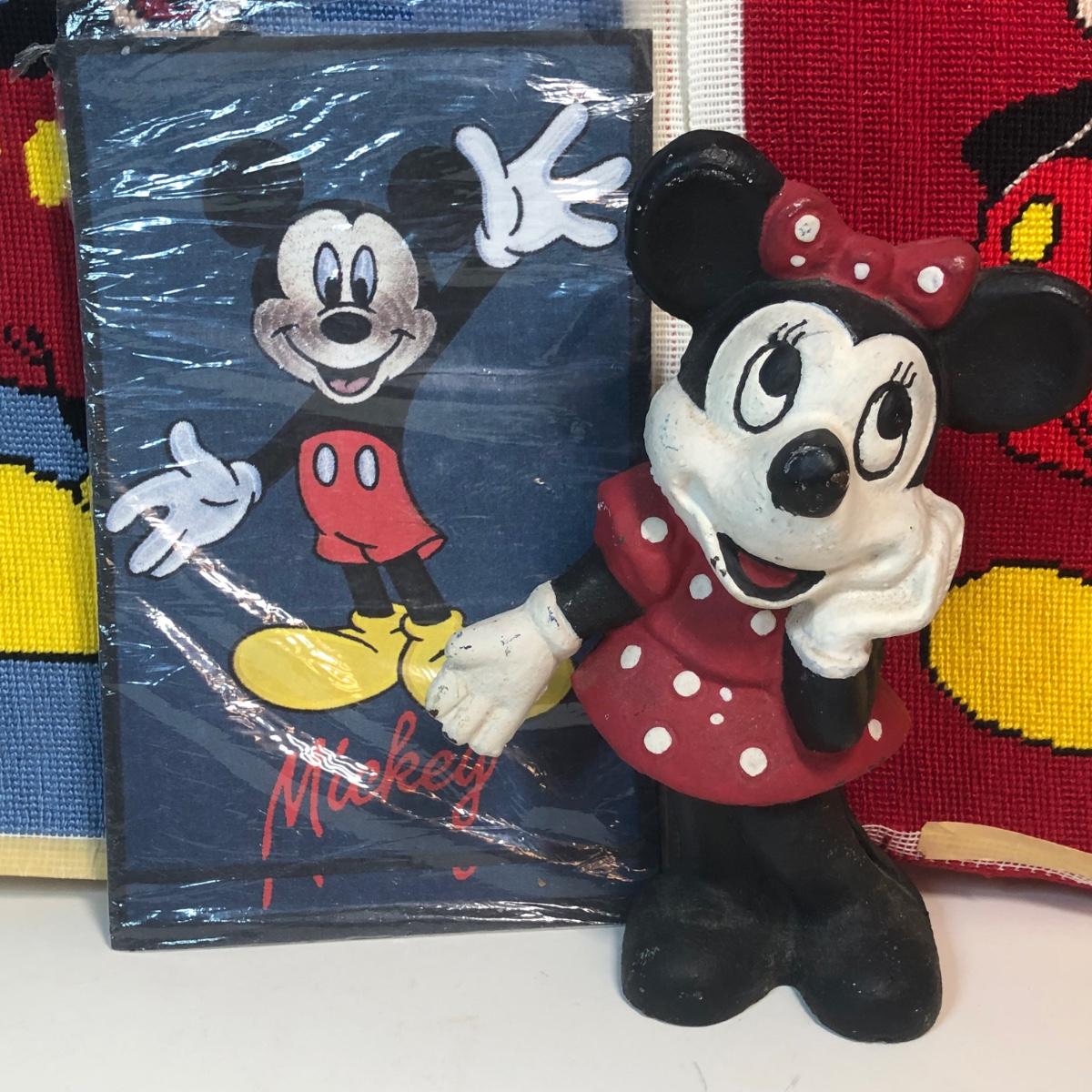 LOT 8M: Vintage Cast Iron Minnie Mouse Coin Bank, Mickey Mouse Needlepoint & Stationary