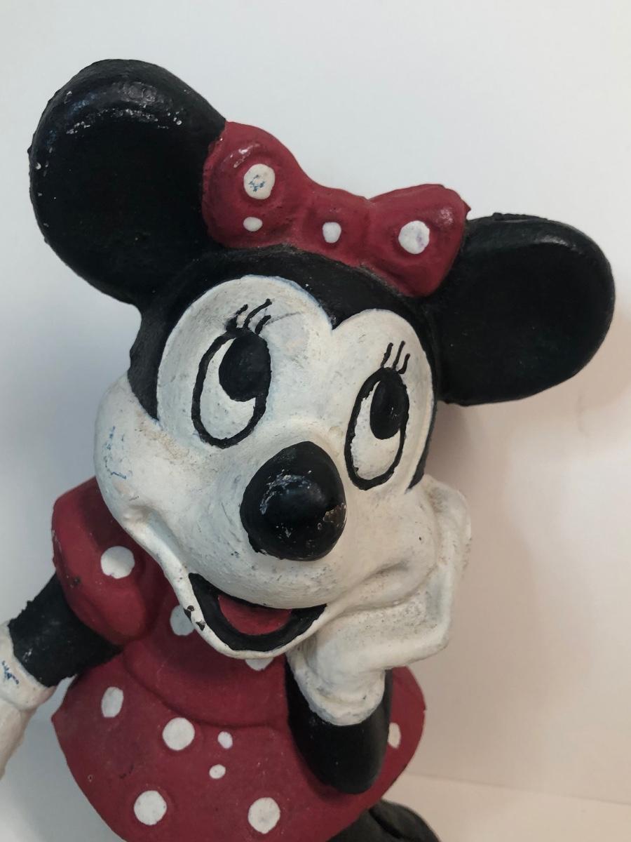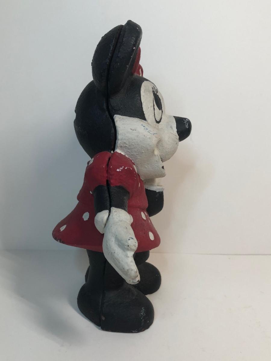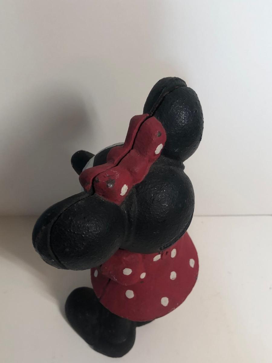 LOT 8M: Vintage Cast Iron Minnie Mouse Coin Bank, Mickey Mouse Needlepoint & Stationary