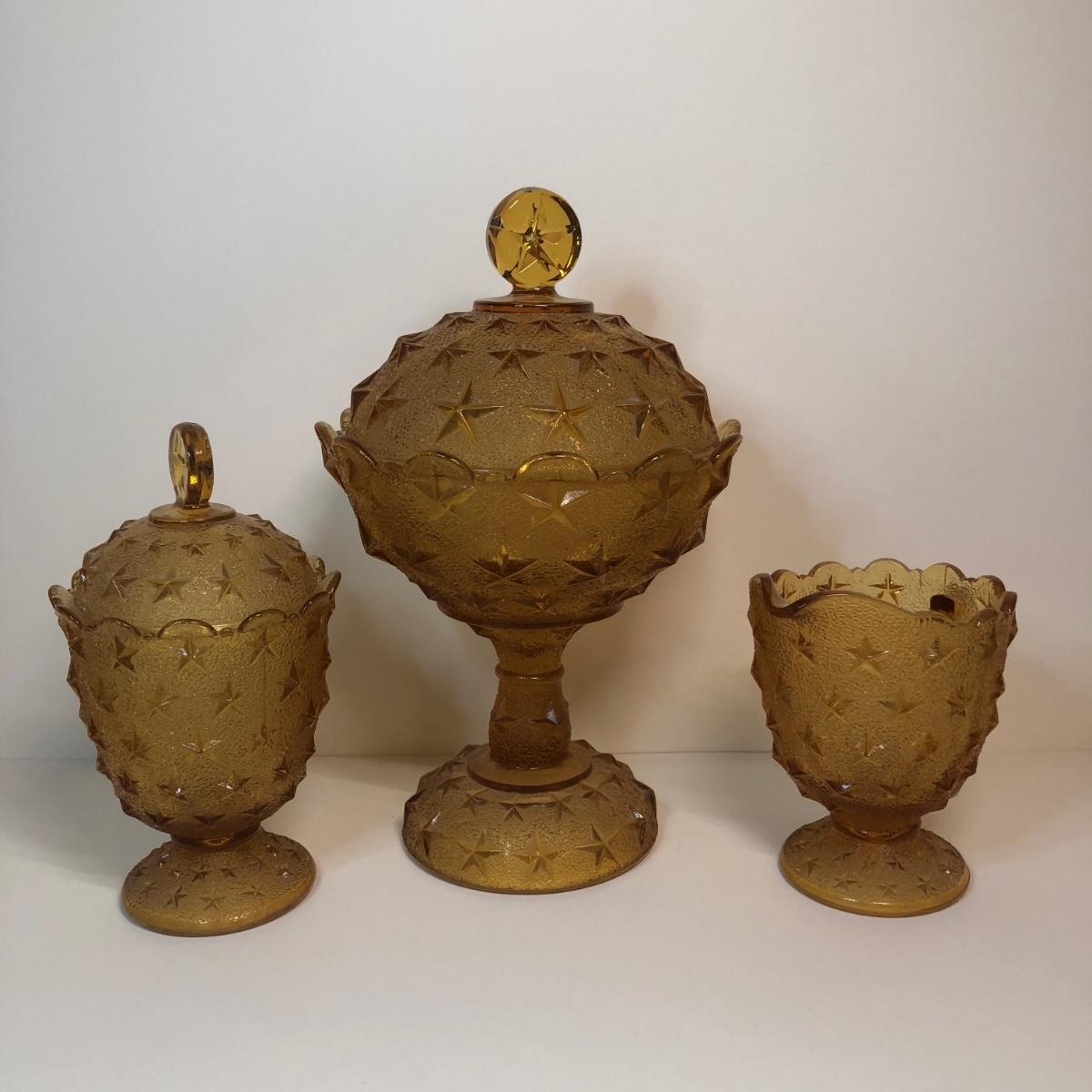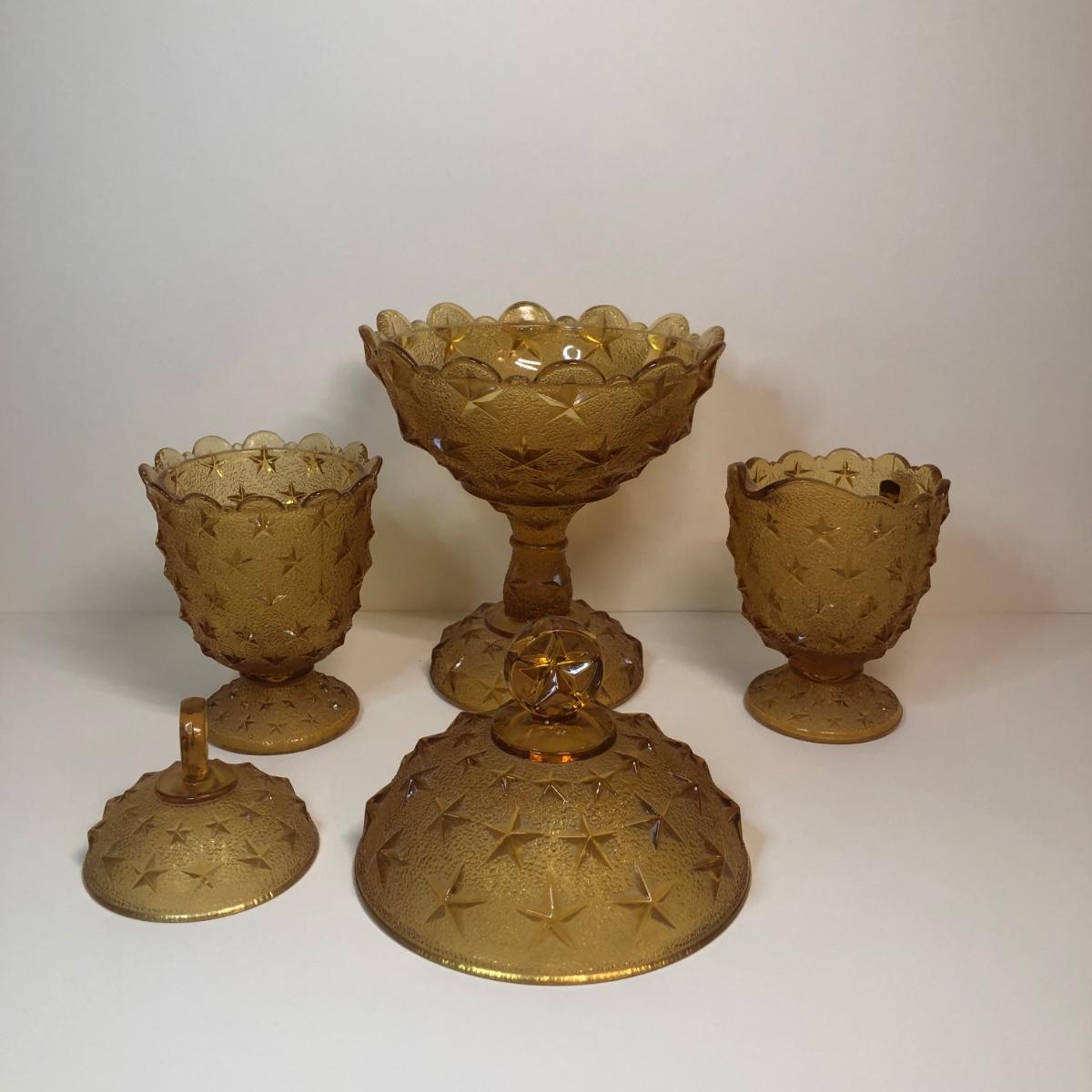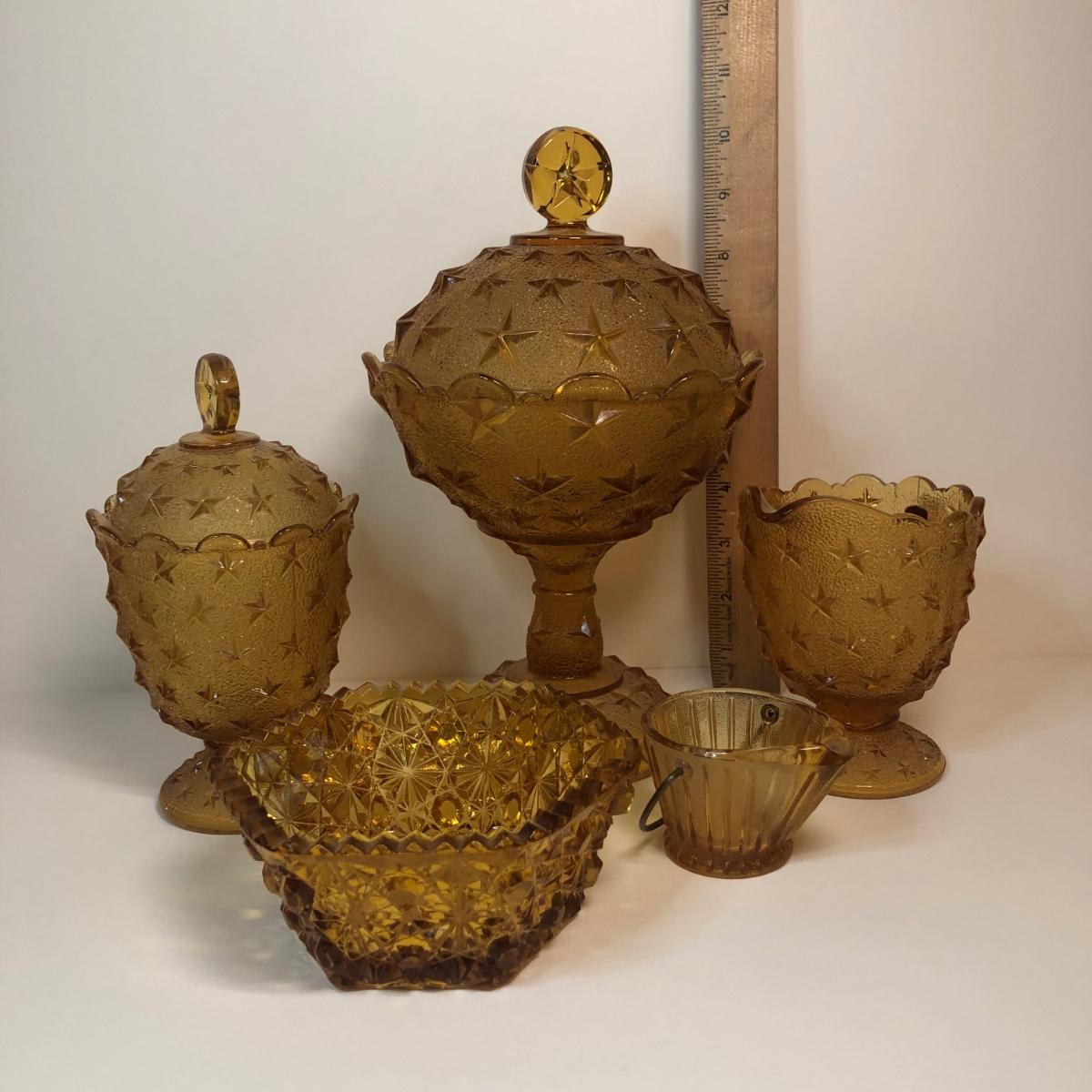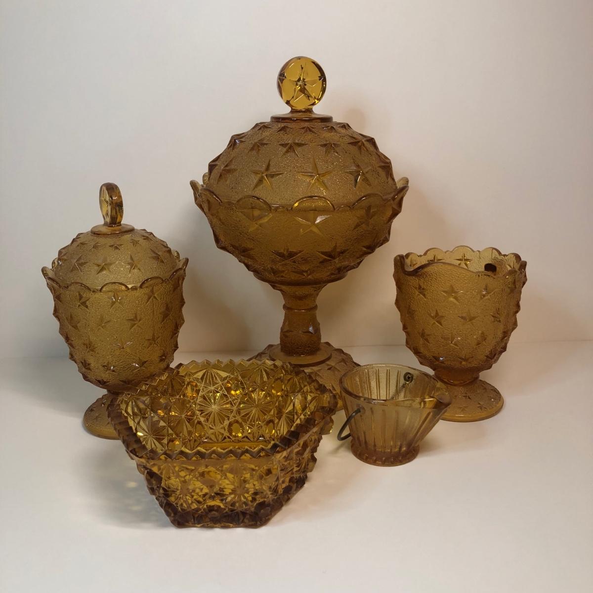 LOT 9M: Vintage Wright Stipple Star Amber Glass Collection & More