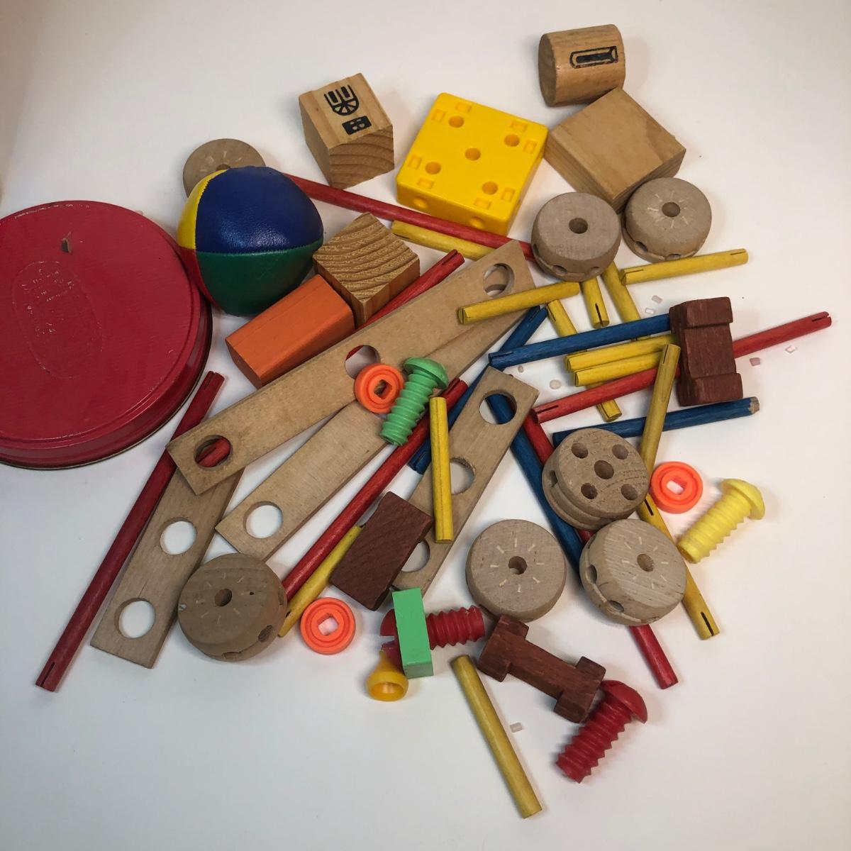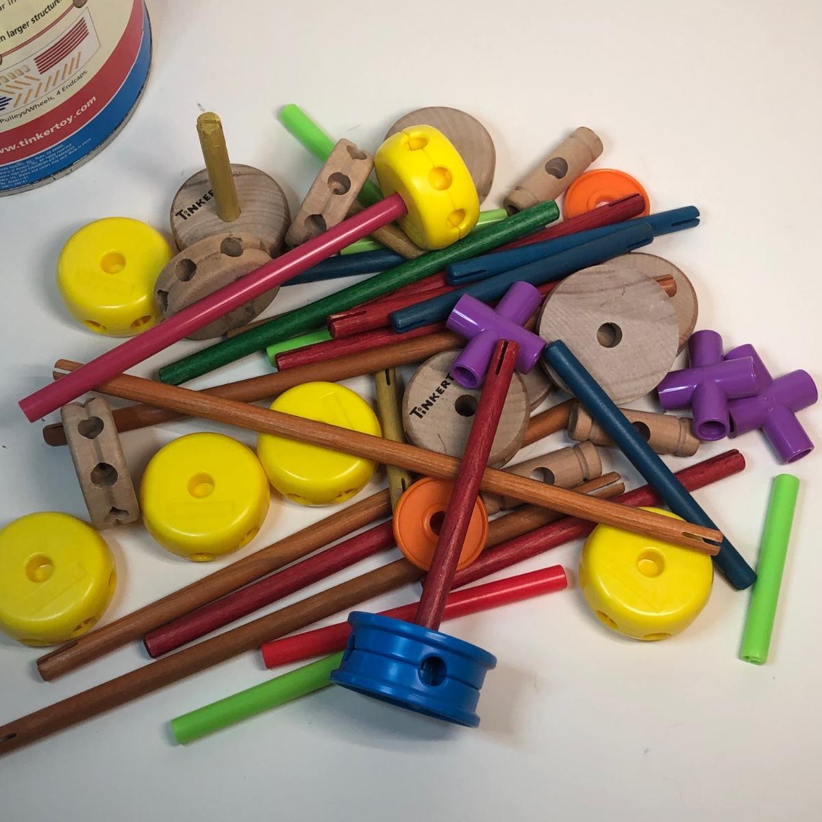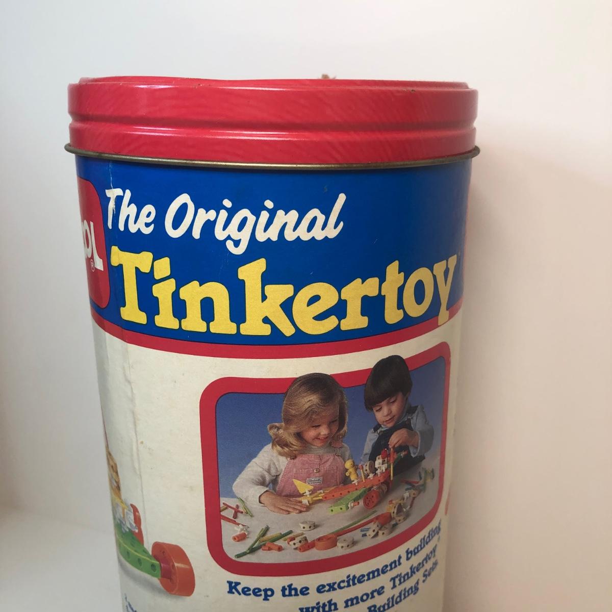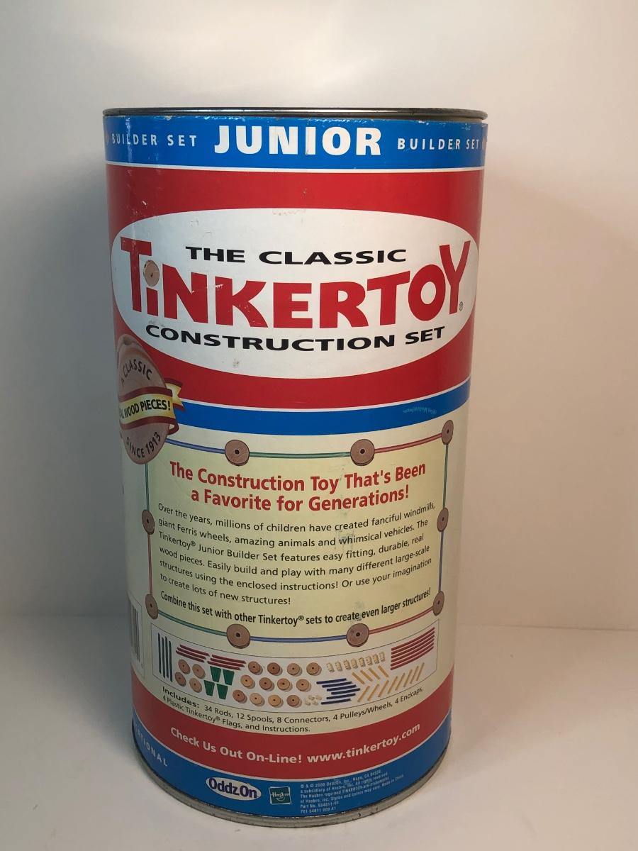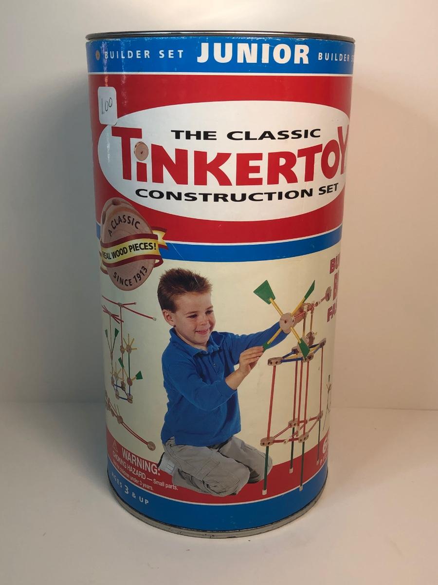 Tinkertoys do not contain all the items included in their original packaging. Photos show current contents of containers.