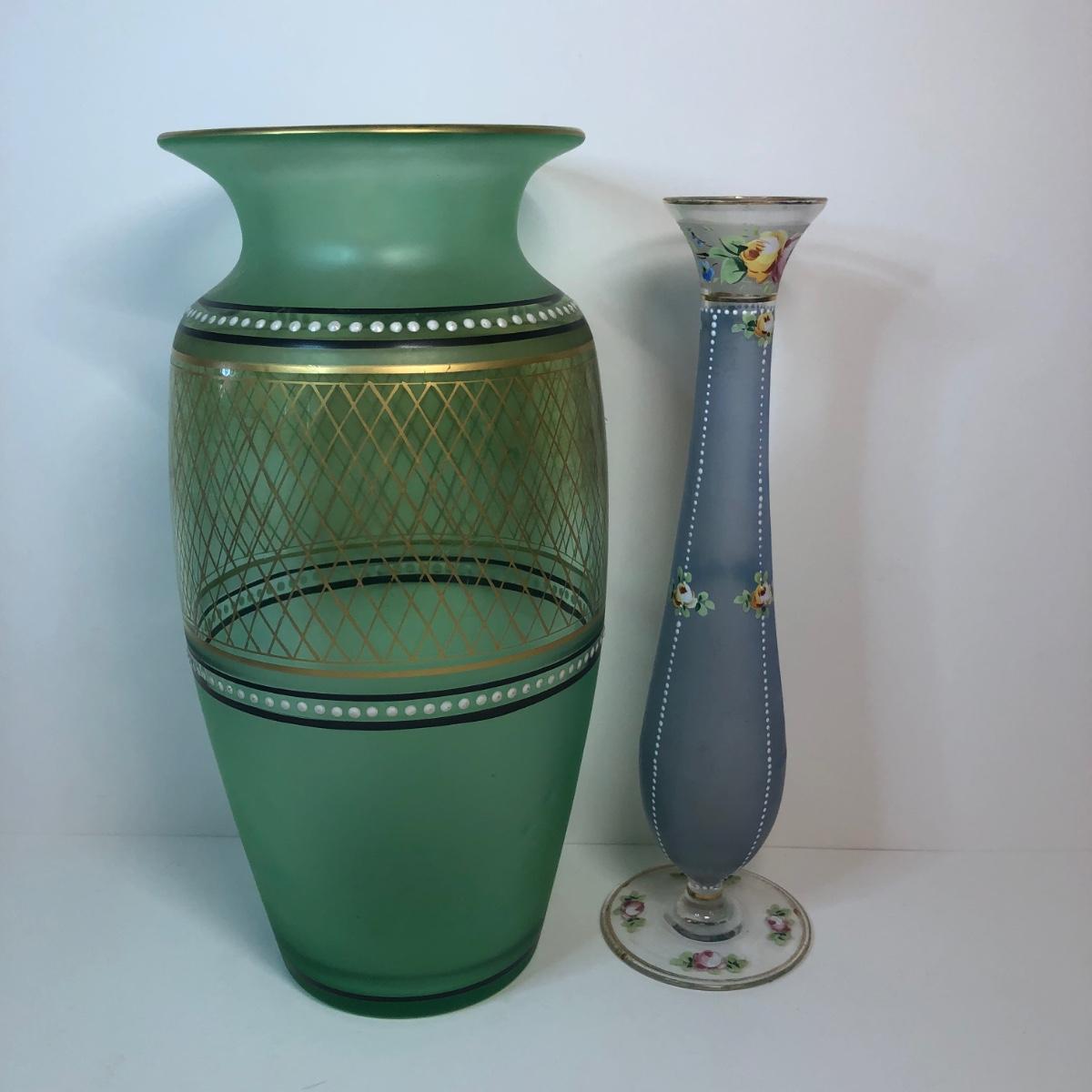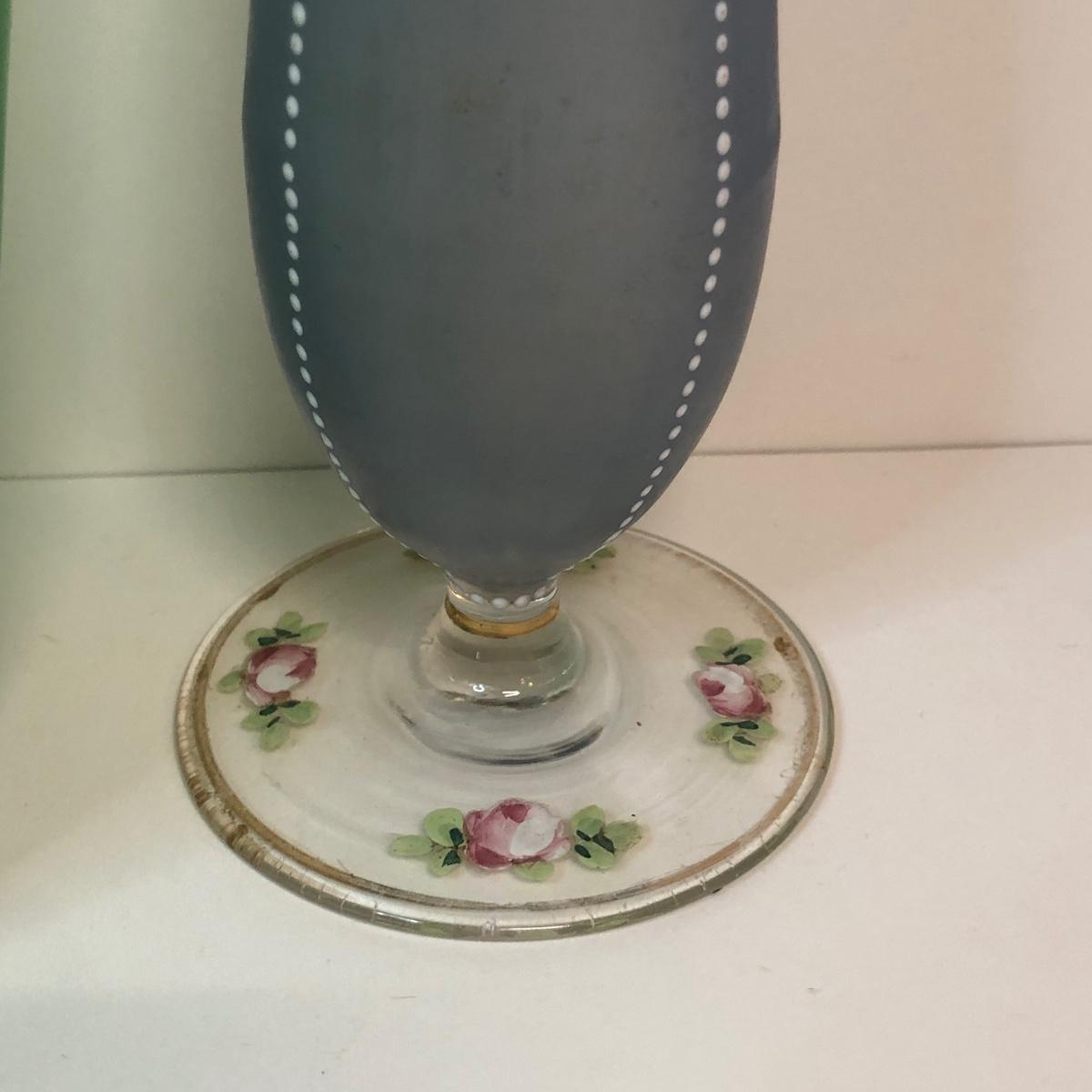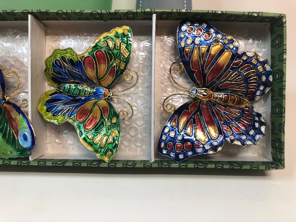 LOT 13M: Beautiful Vintage Hand Painted Vases, Pink & Blues Glassware & Metal/Enamel Butterflies w/Original Box