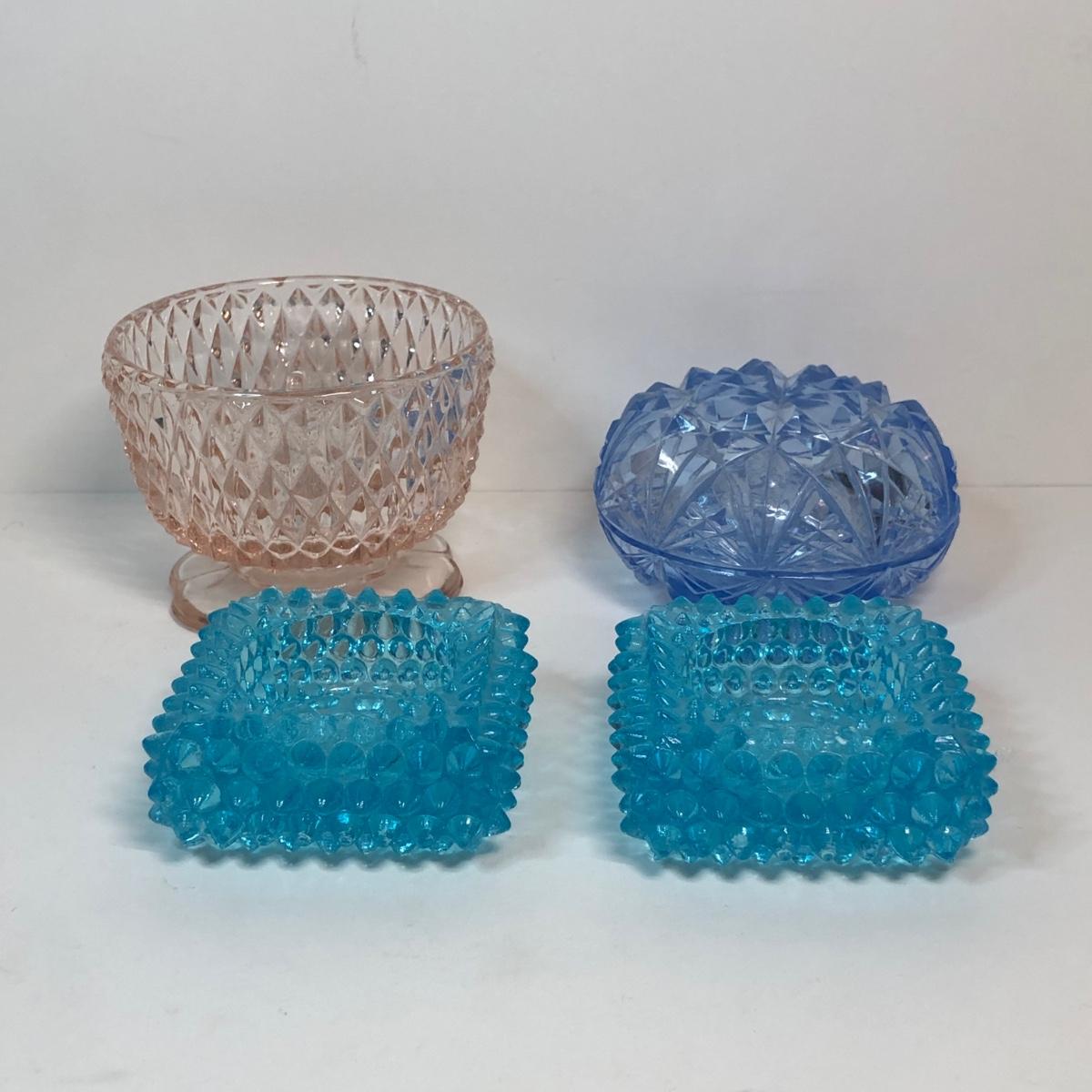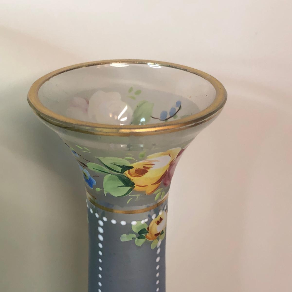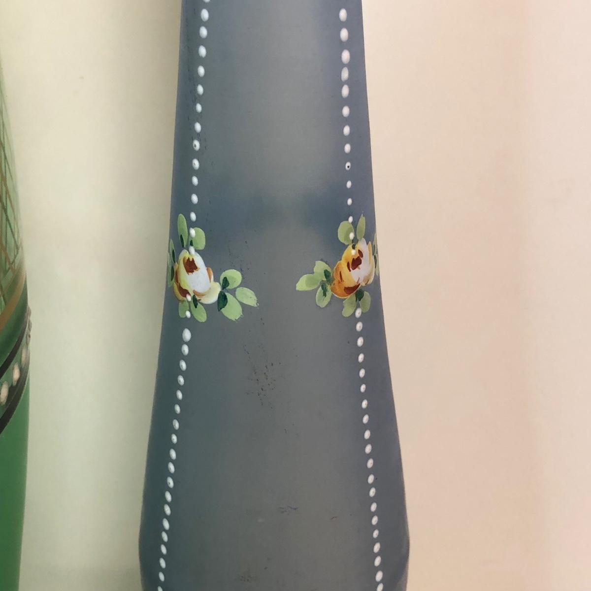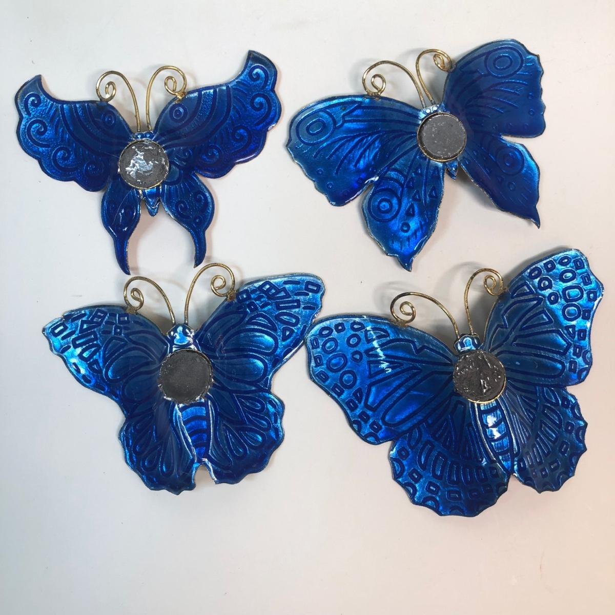 LOT 13M: Beautiful Vintage Hand Painted Vases, Pink & Blues Glassware & Metal/Enamel Butterflies w/Original Box