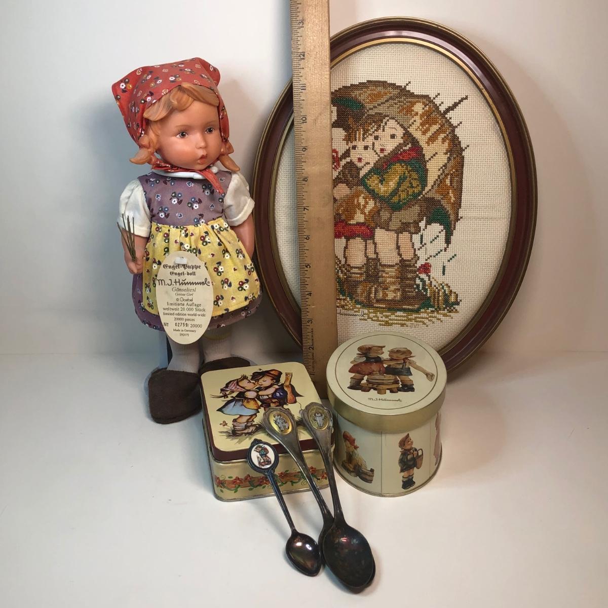 LOT 19M: Hummel & Hummel Inspired Collection - Doll, Needlepoint, Tins, Souvenir Spoons