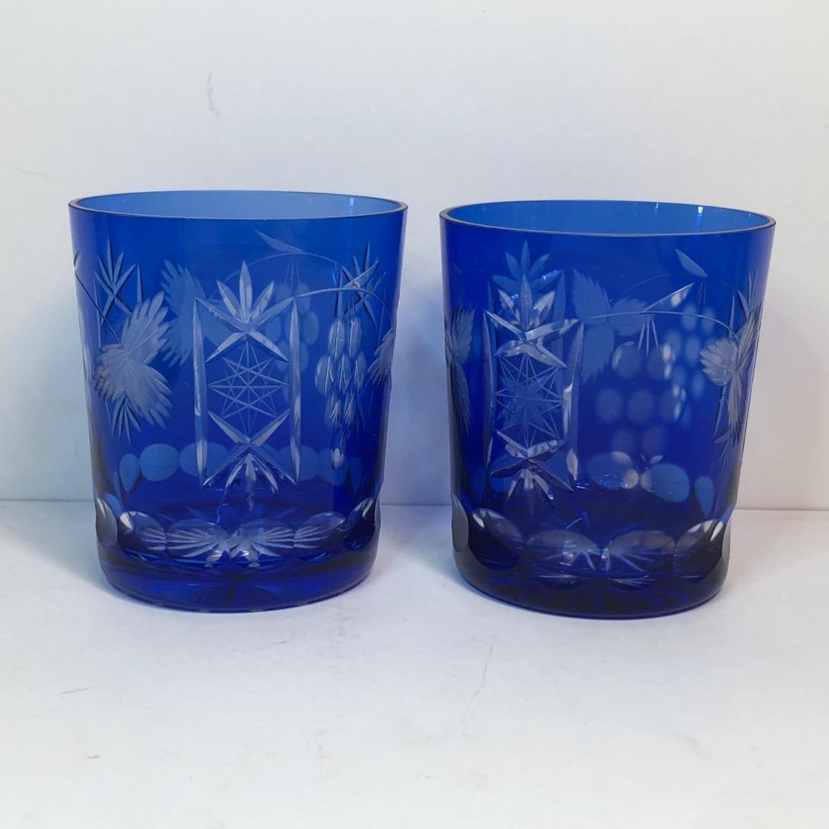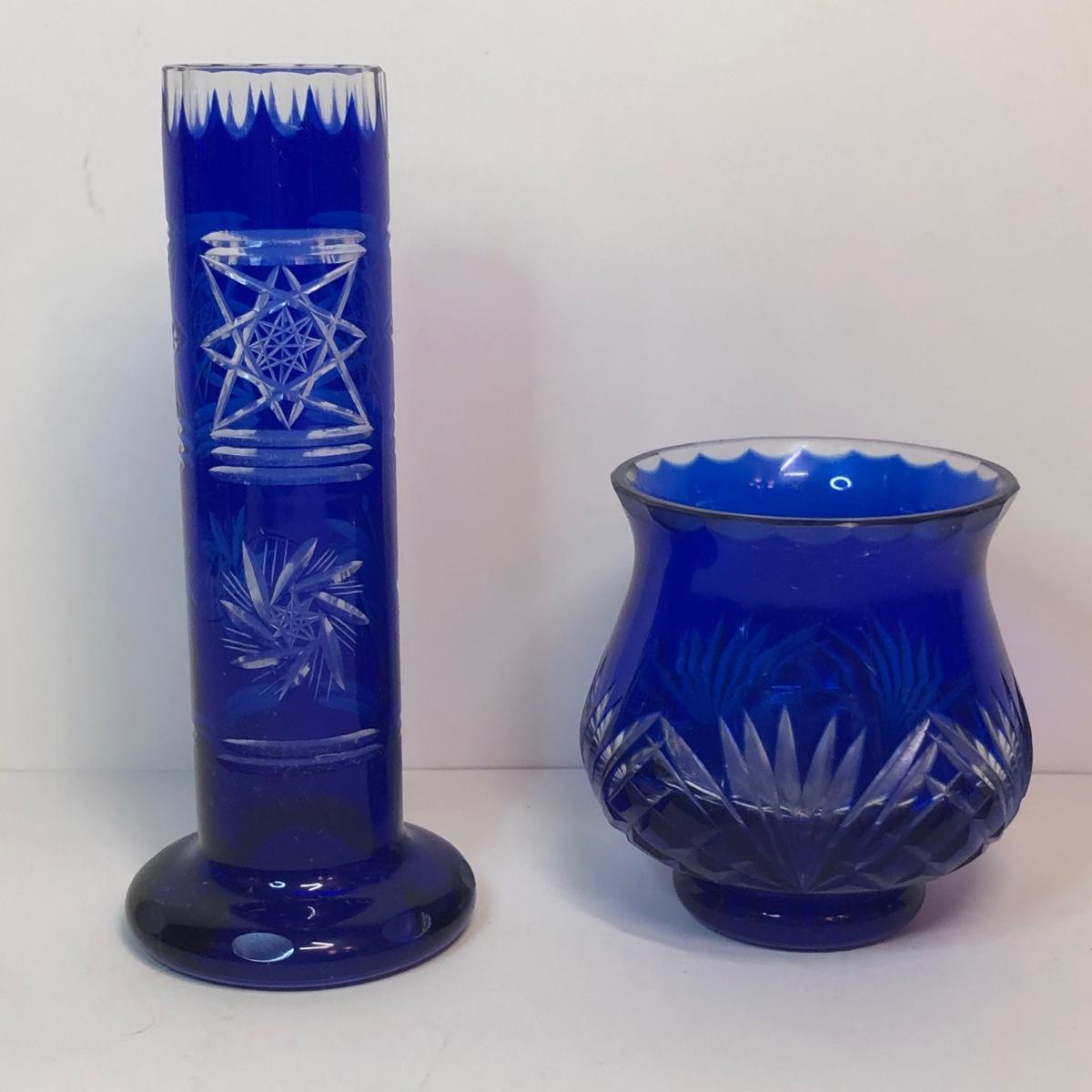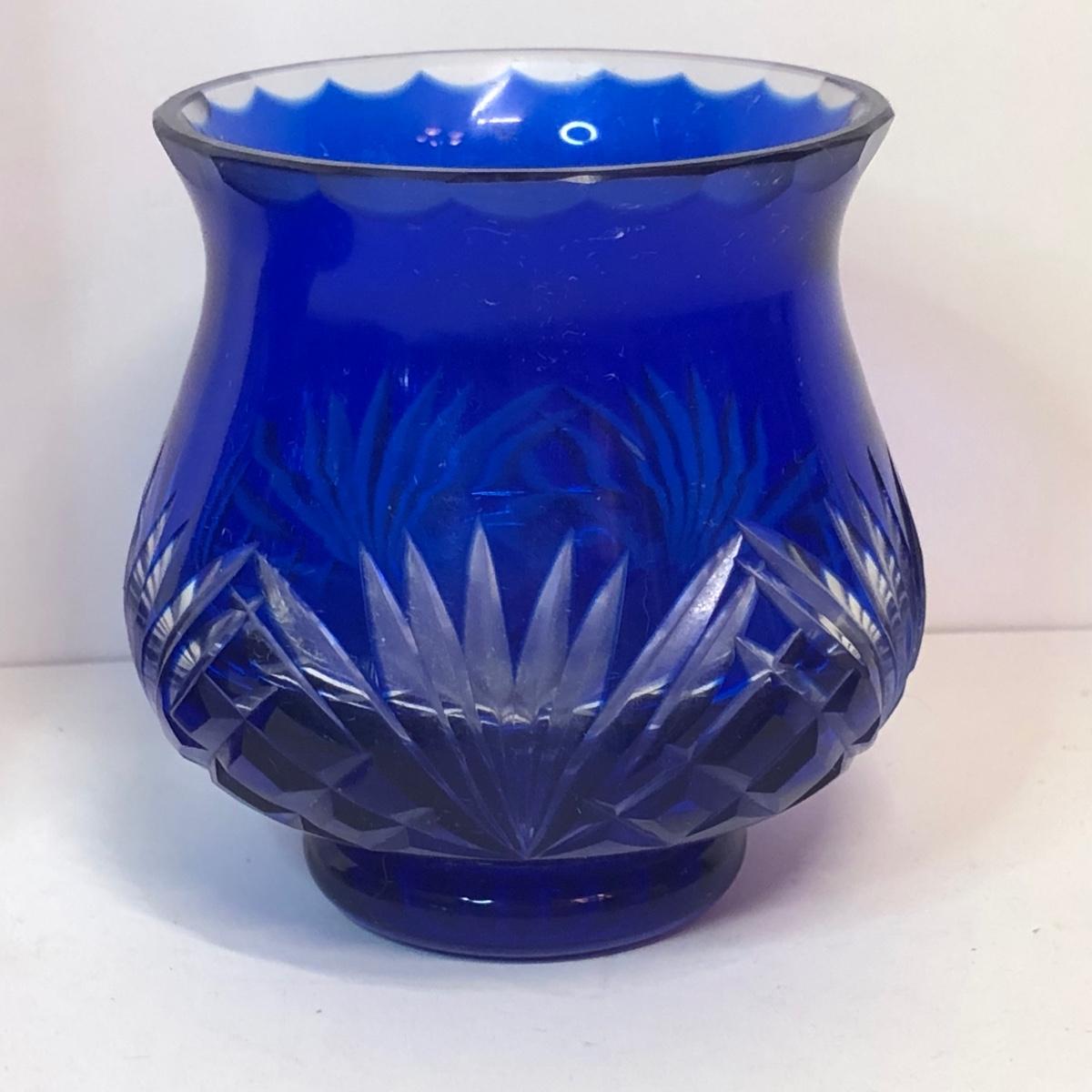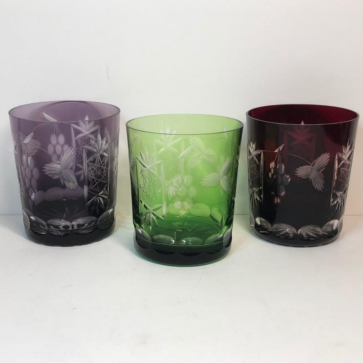 LOT 22M: Colored Glass Cut to Clear Collection - Cups, Candle Holders & More