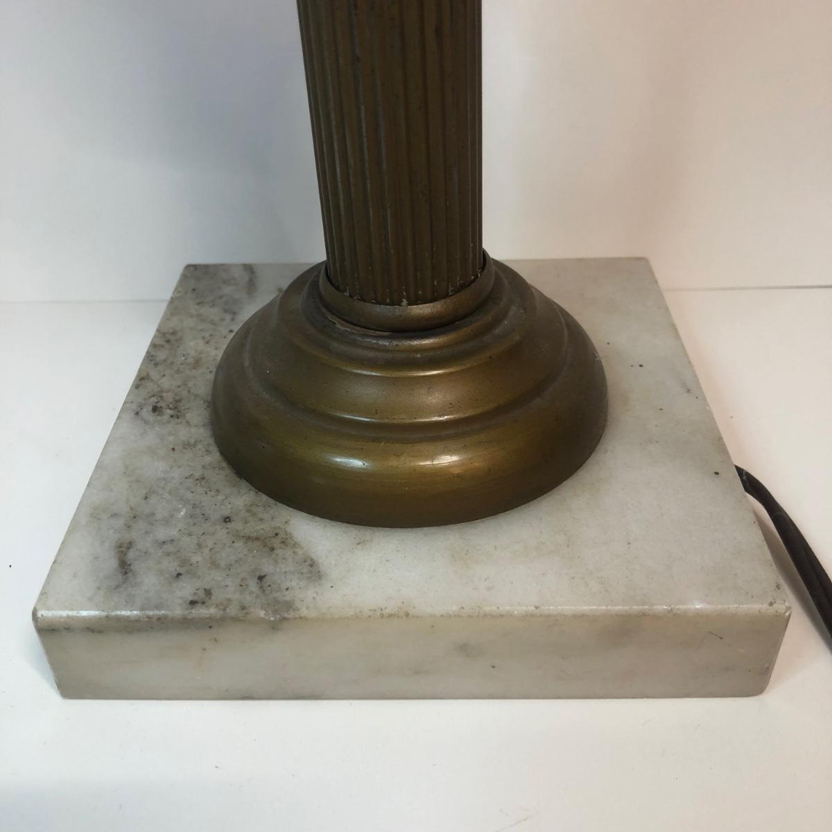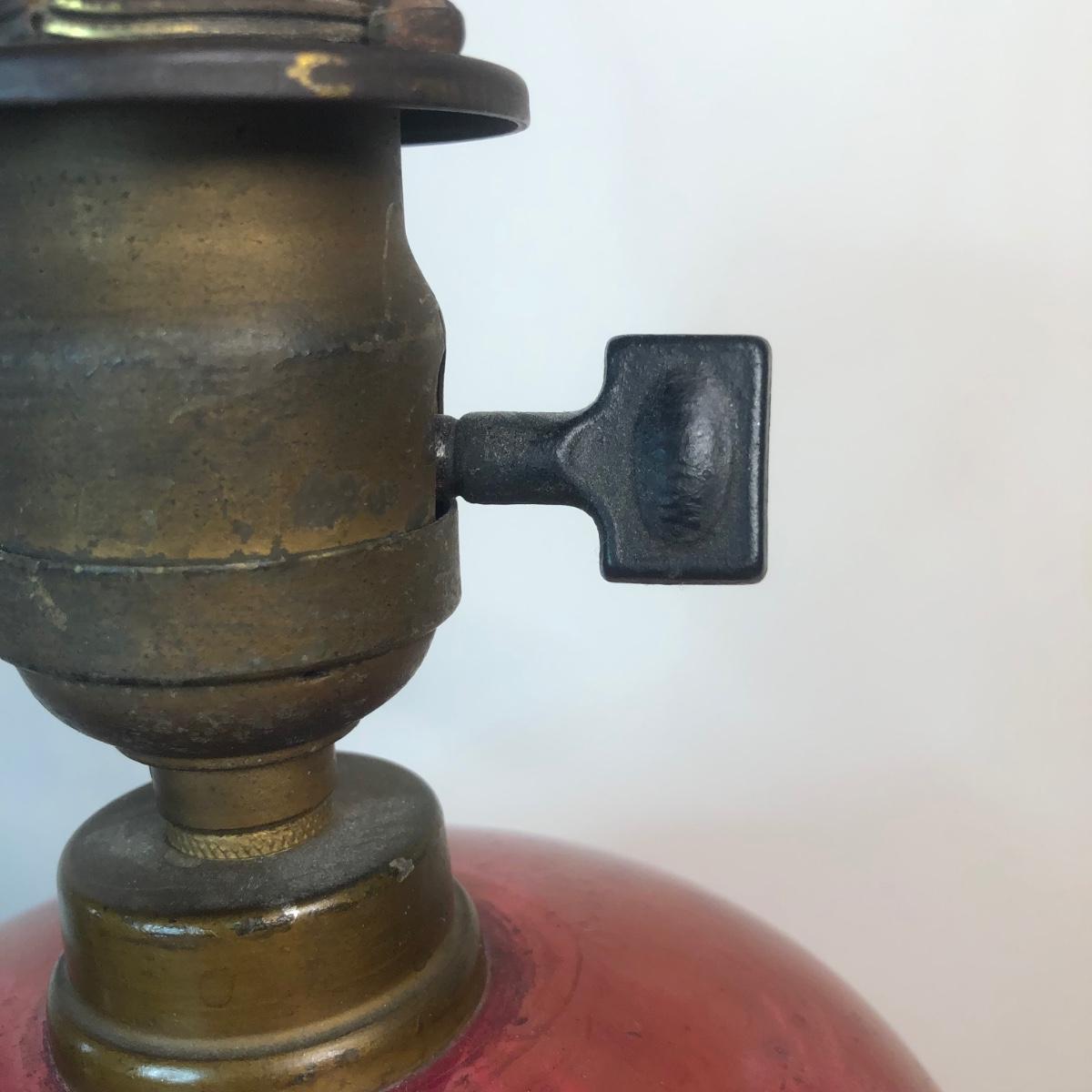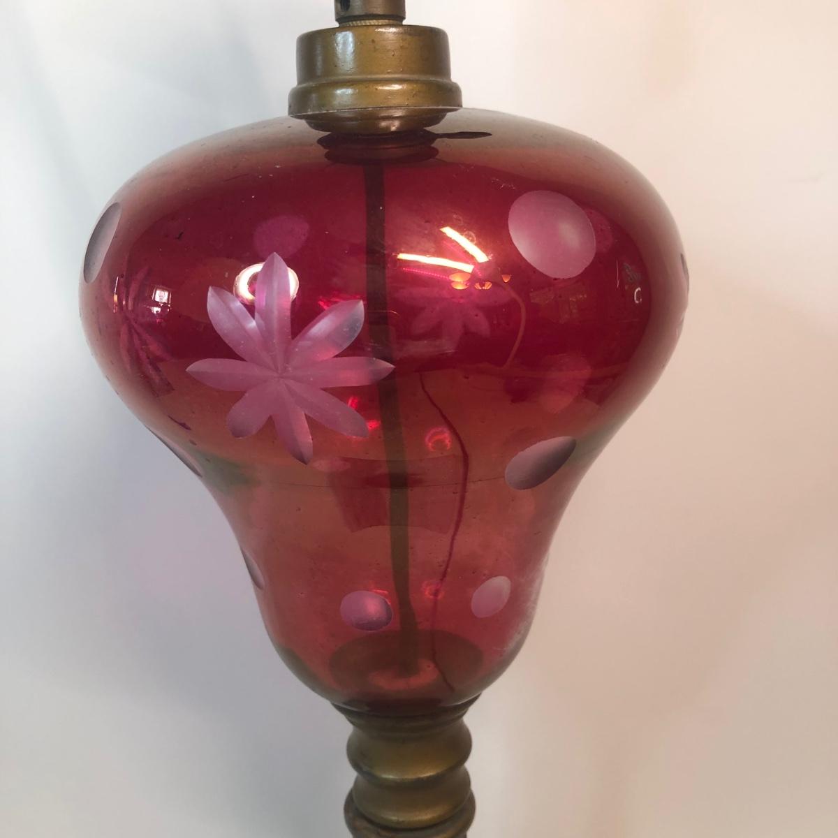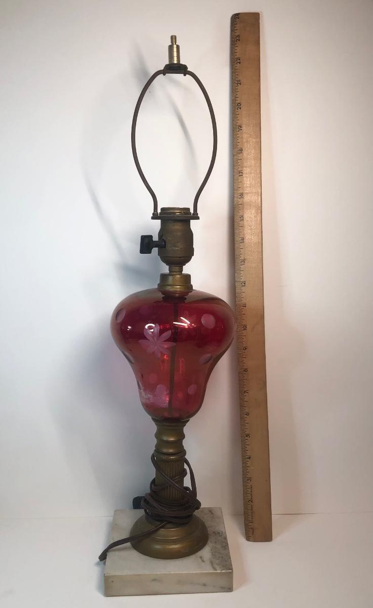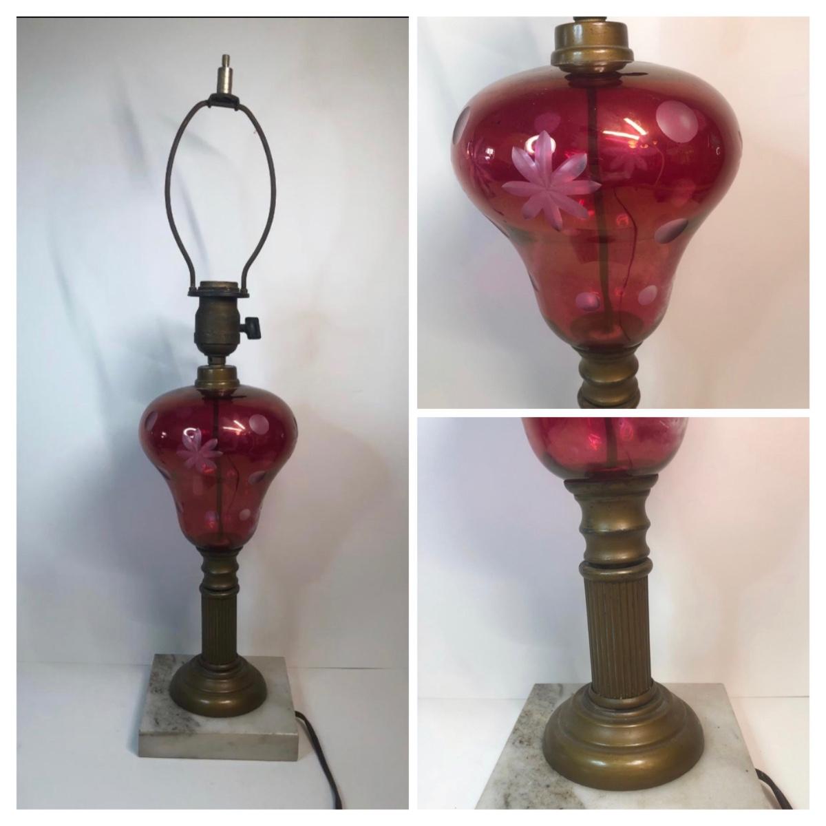 LOT 27M: Etched Glass Cranberry Lamp w/ Marble Base