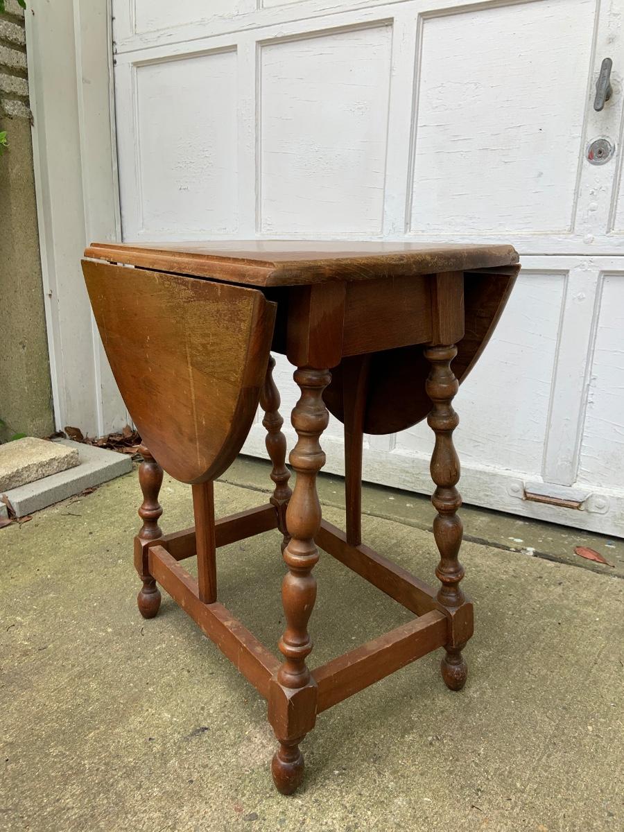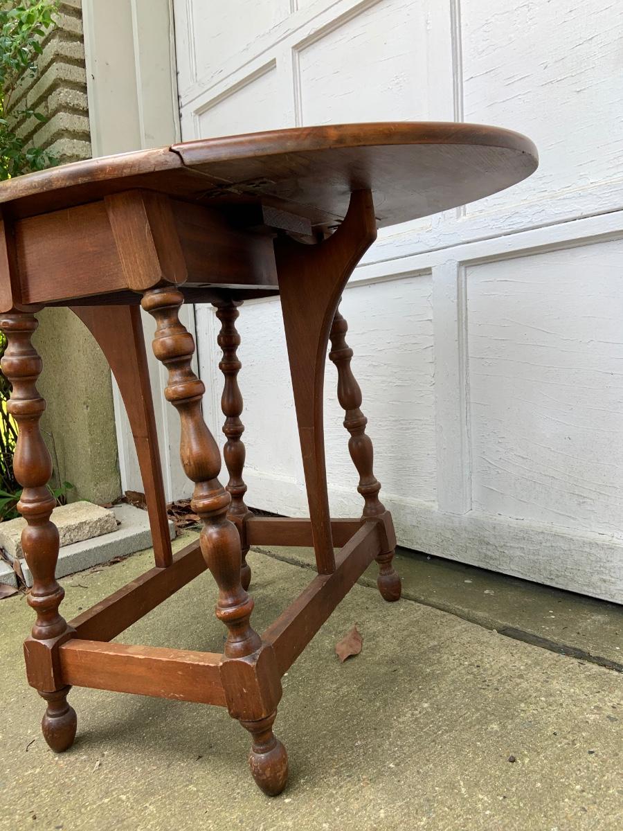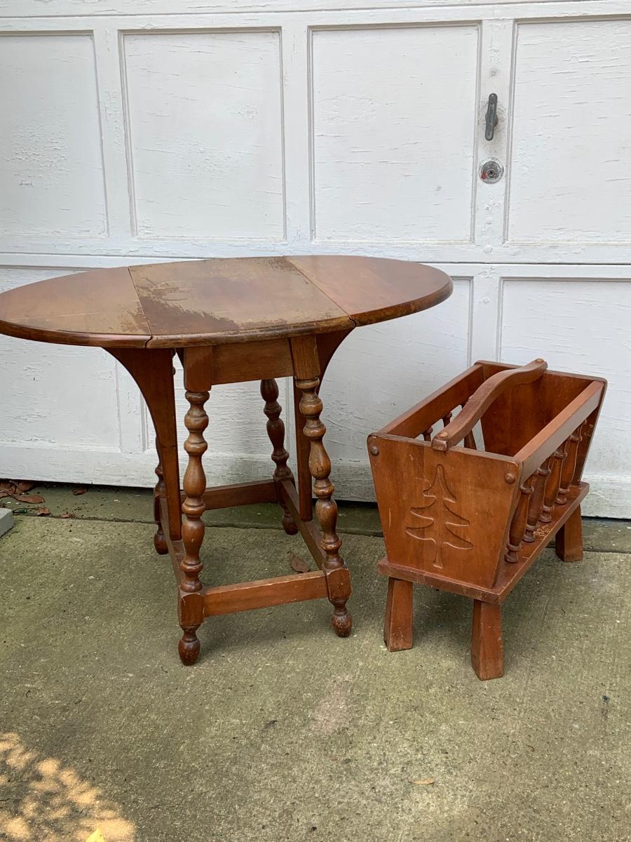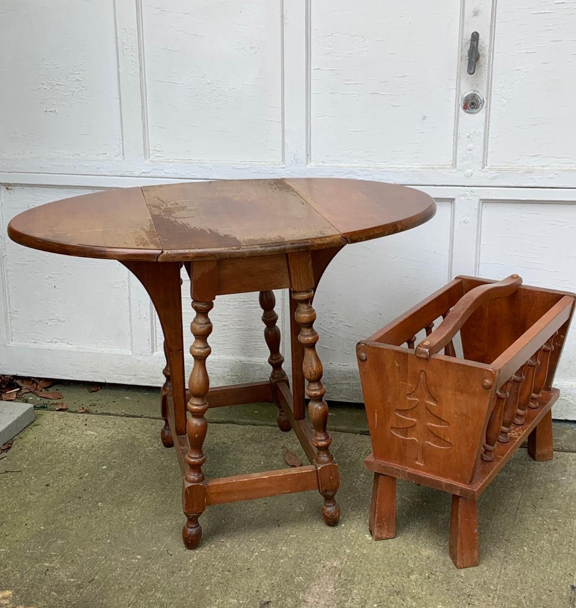 LOT::28G: Vintage WIlliam & Mary Style Dropped Leaf Table and Wood Magazine Rack
