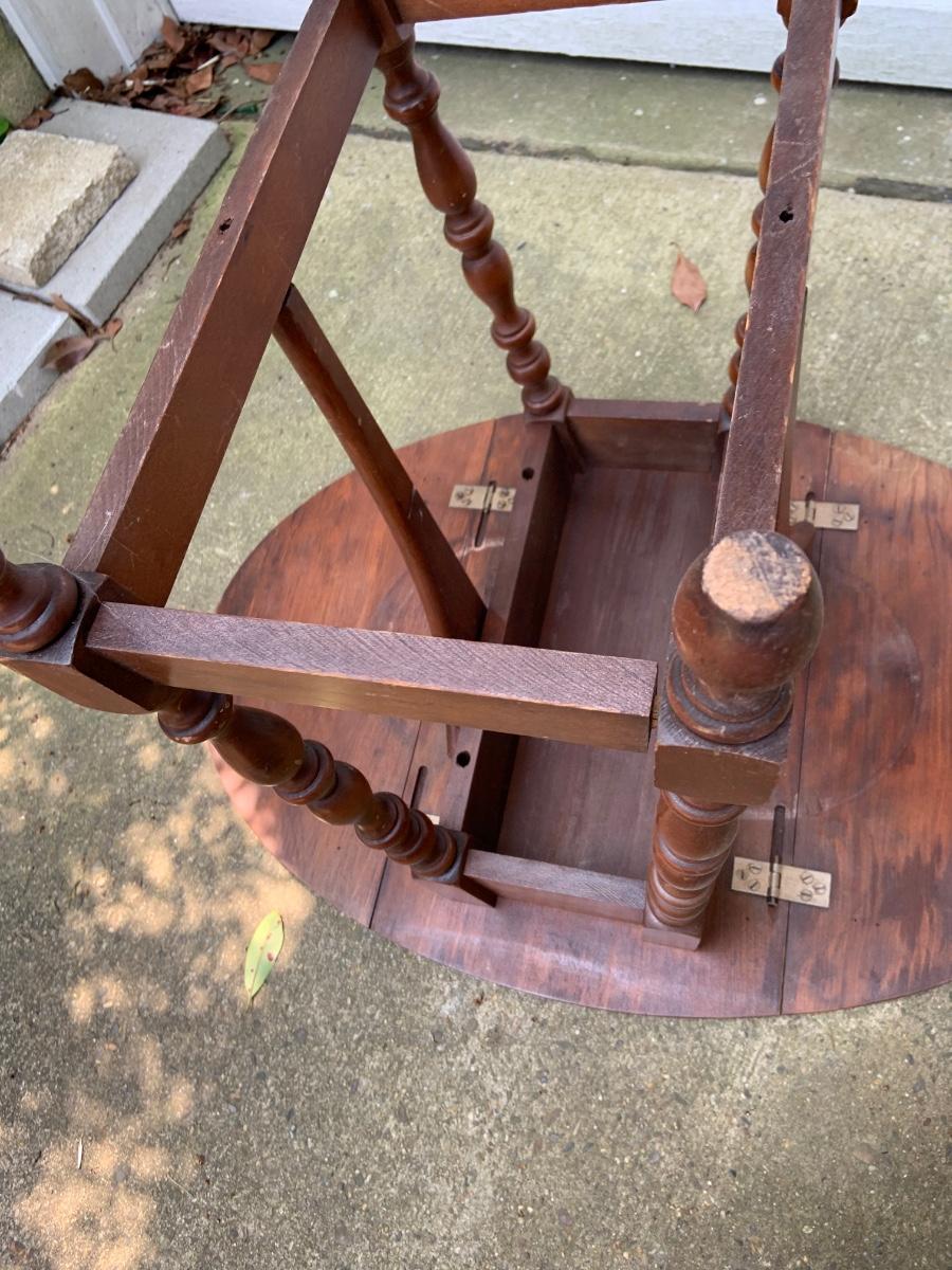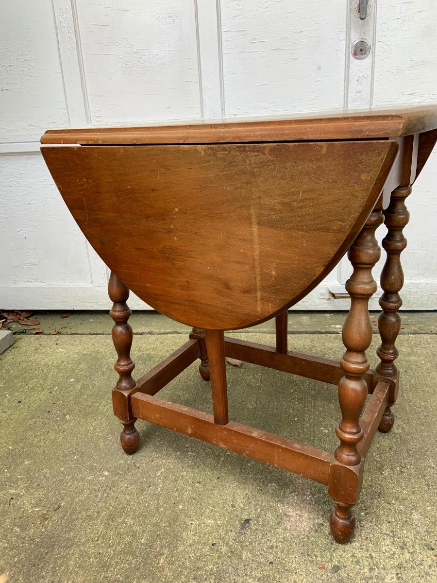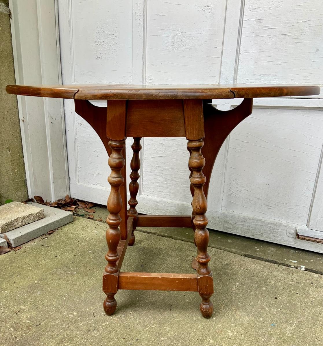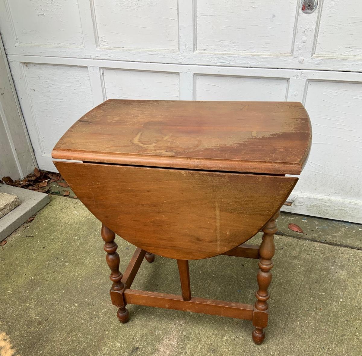 LOT::28G: Vintage WIlliam & Mary Style Dropped Leaf Table and Wood Magazine Rack