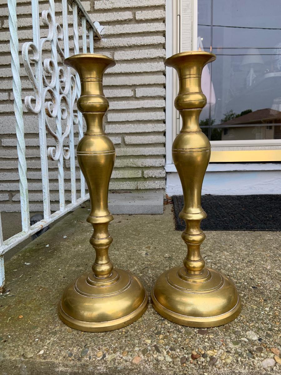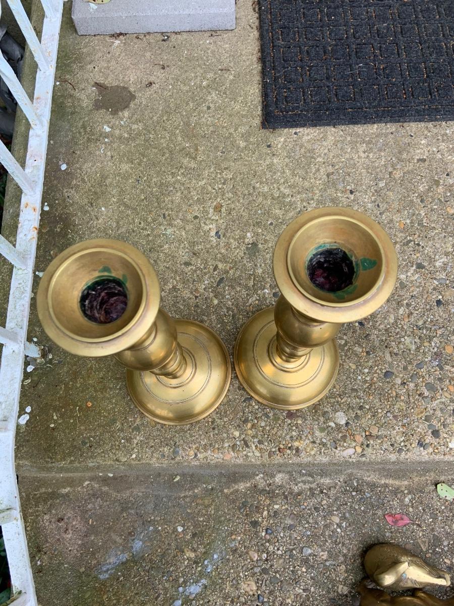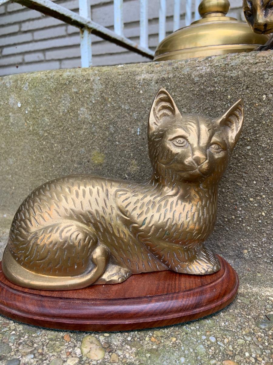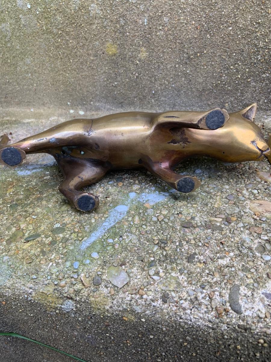 LOT:32G: Tall Brass Candle Sticks, Brass Cats and a Brass Bird