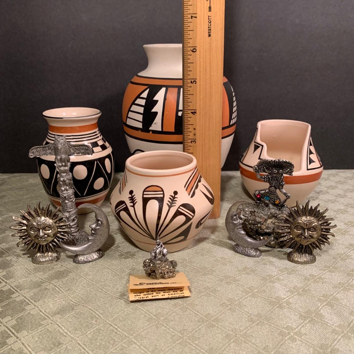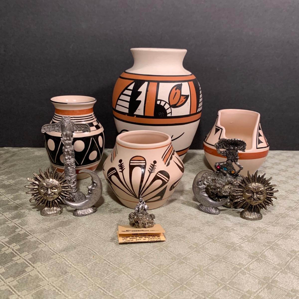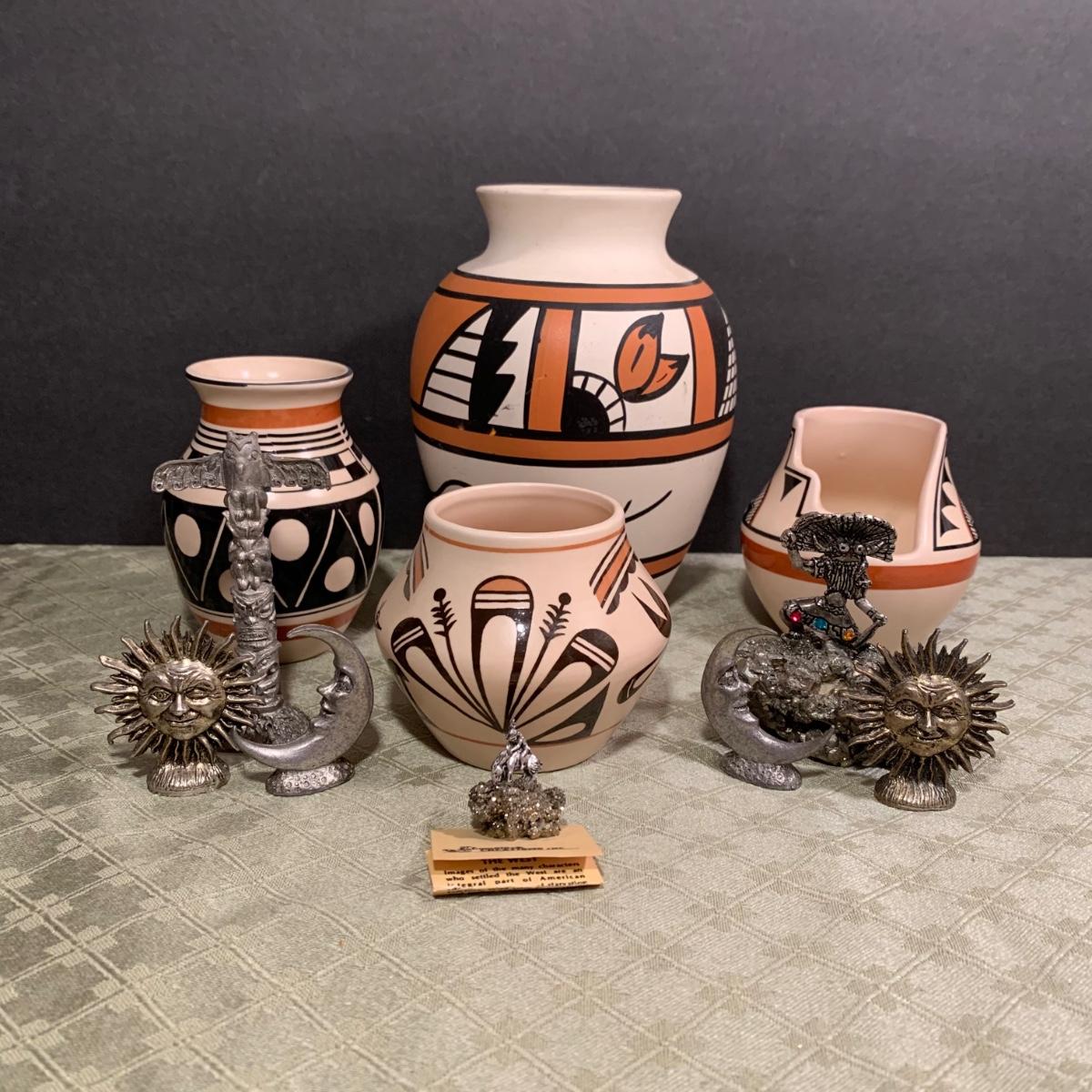 LOT 48R: Native American Pottery Collection From Arizona and Southwestern Style Pewter Pieces