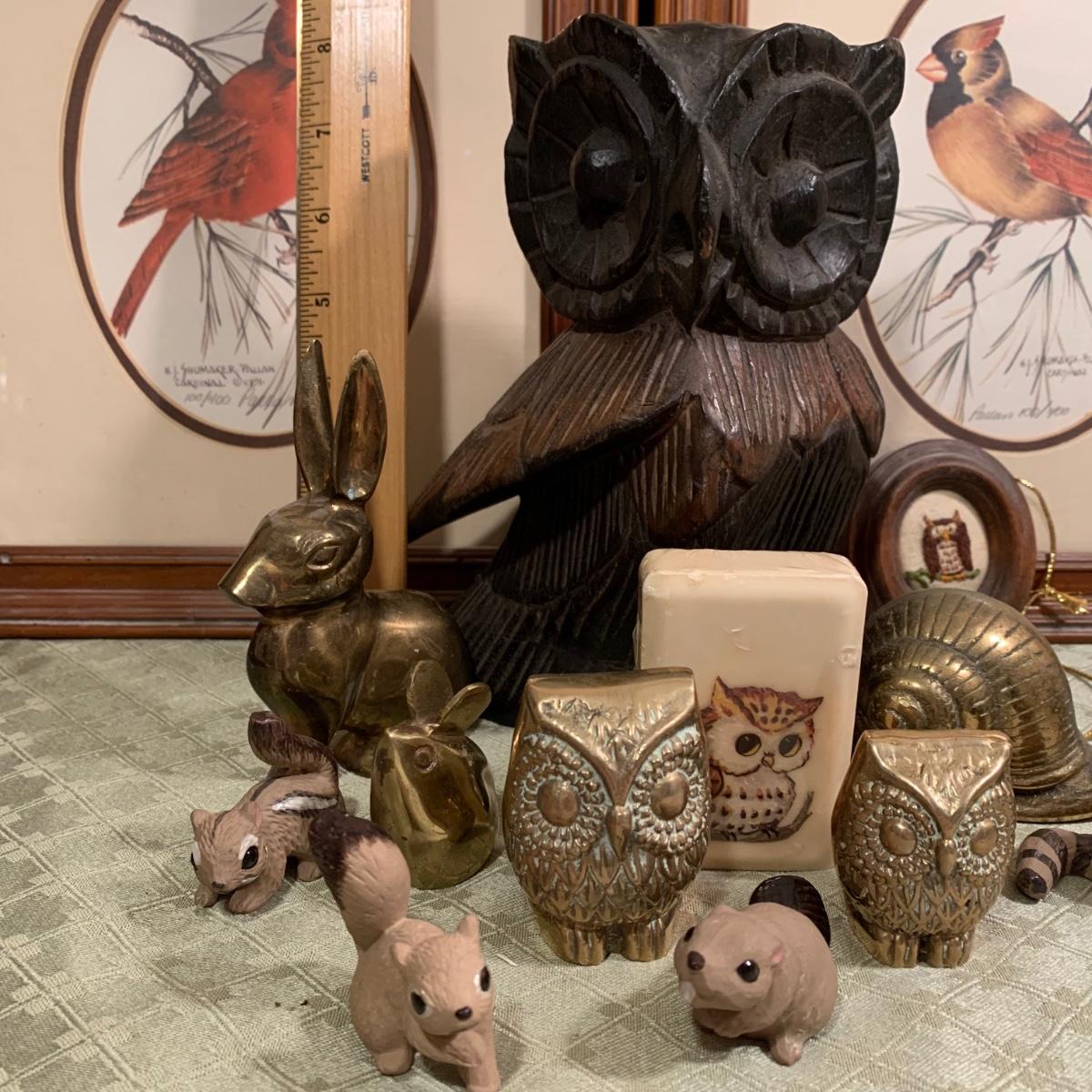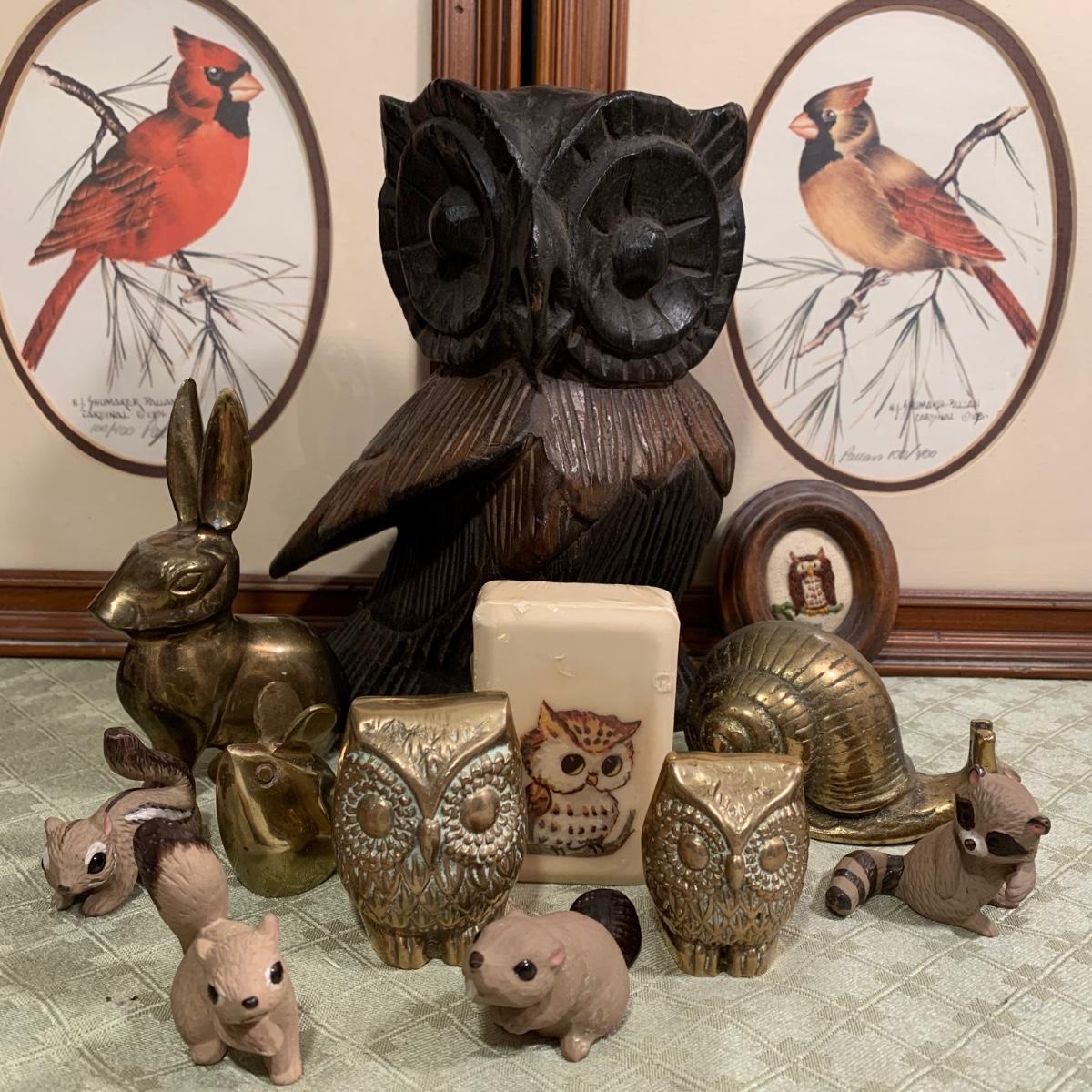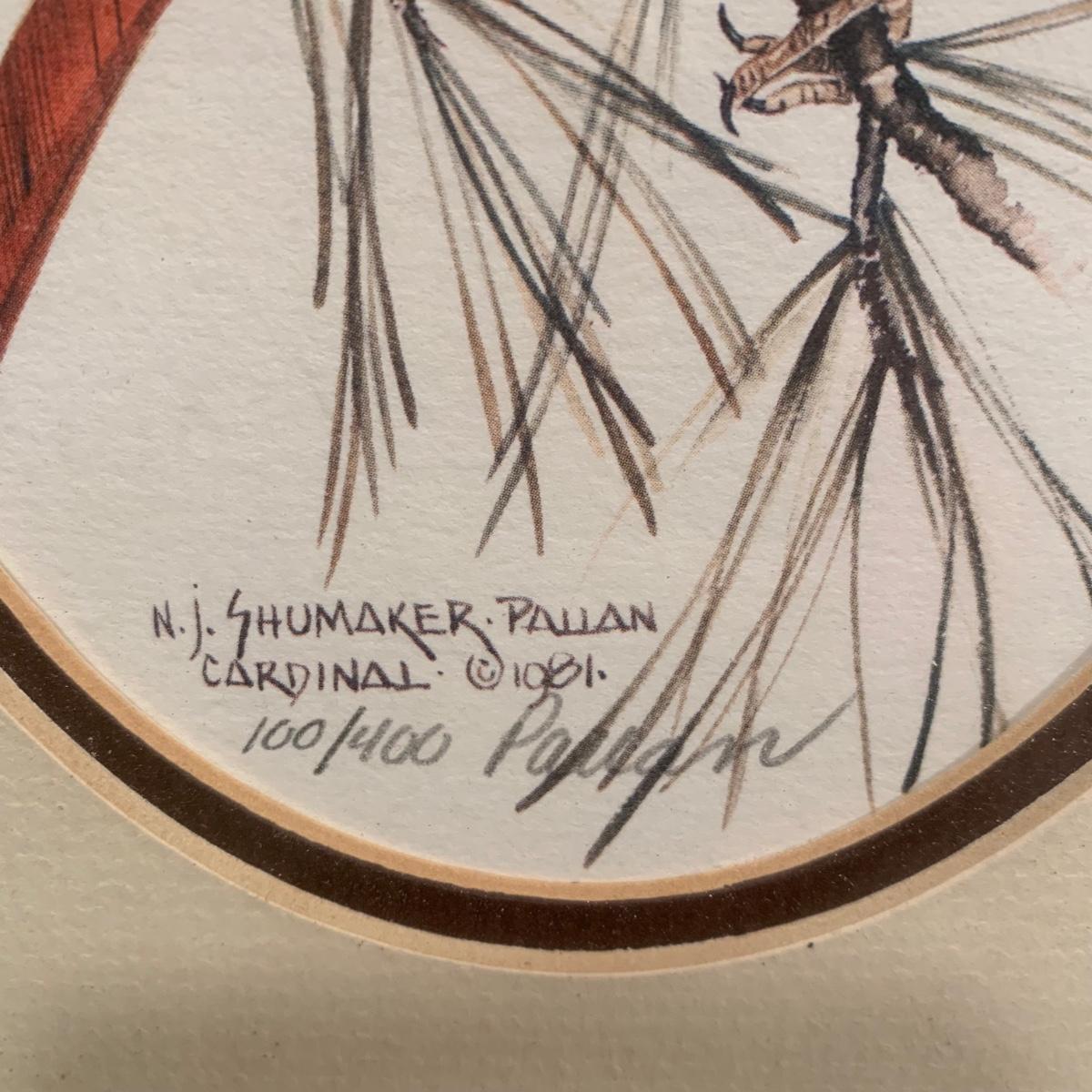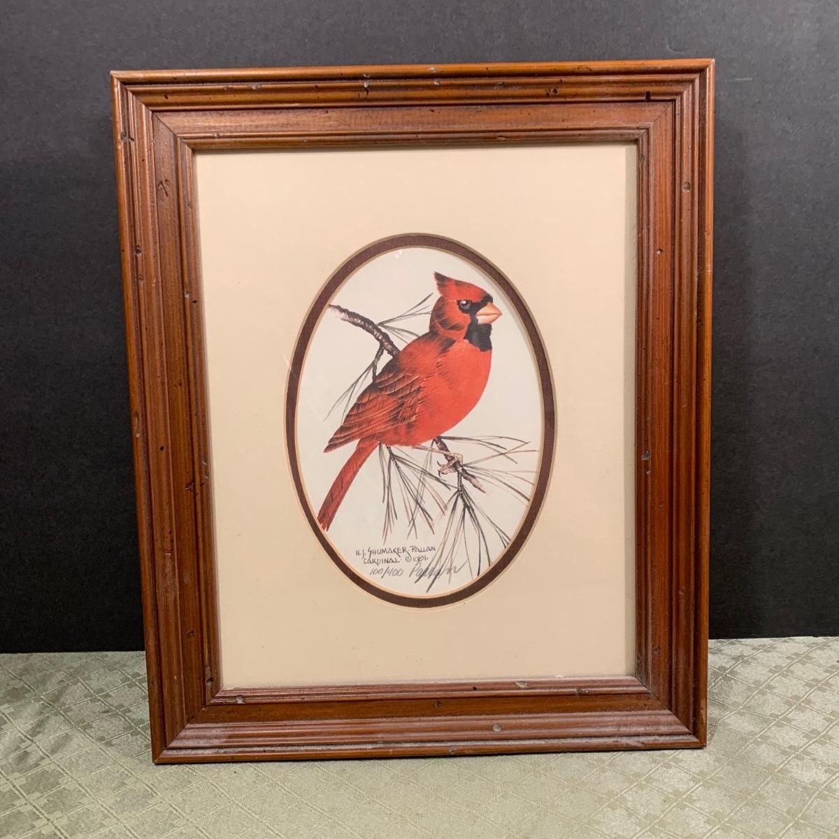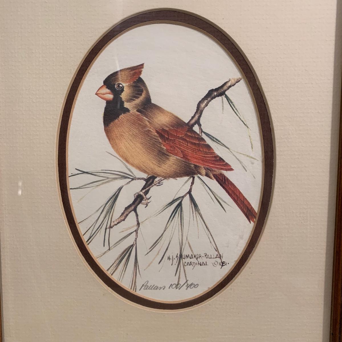 LOT 49R: Nancy Shumaker Pallan Signed and Numbered Cardinal Prints and Other Woodland Figurines In Wood Brass and Ceramic