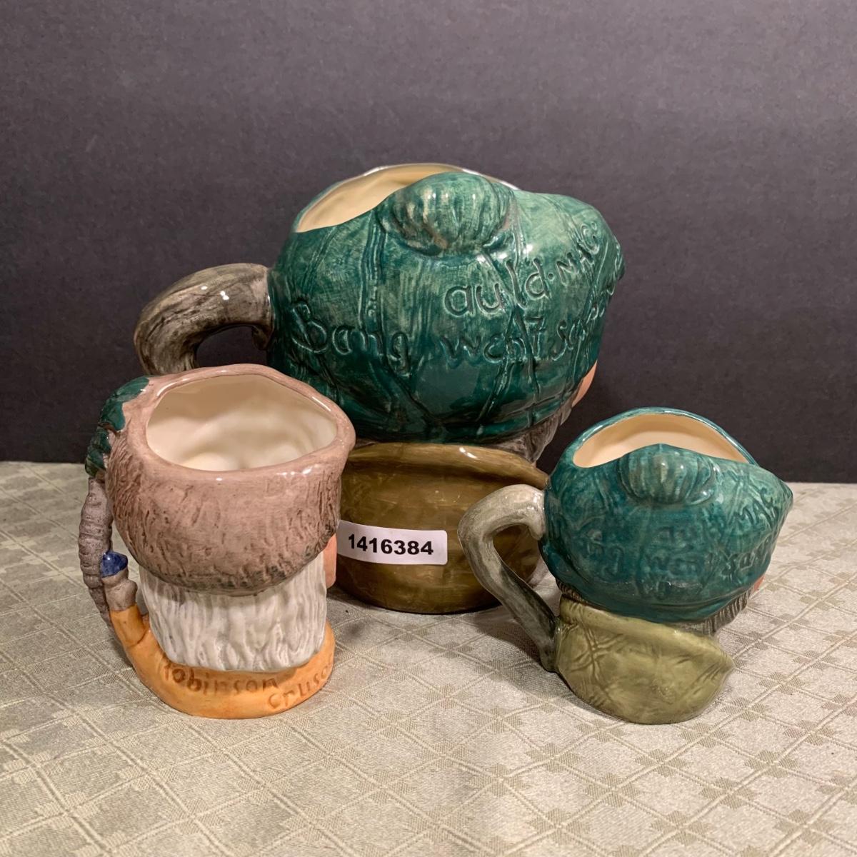 LOT 54R: Royal Doulton Toby Mugs: Auld Mae Large & Small, and Robinson Crusoe